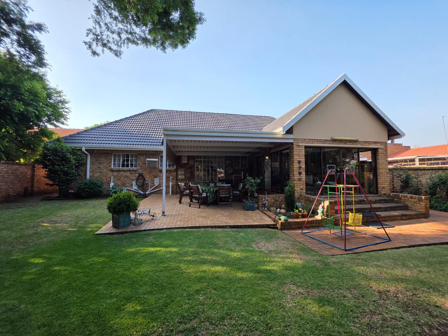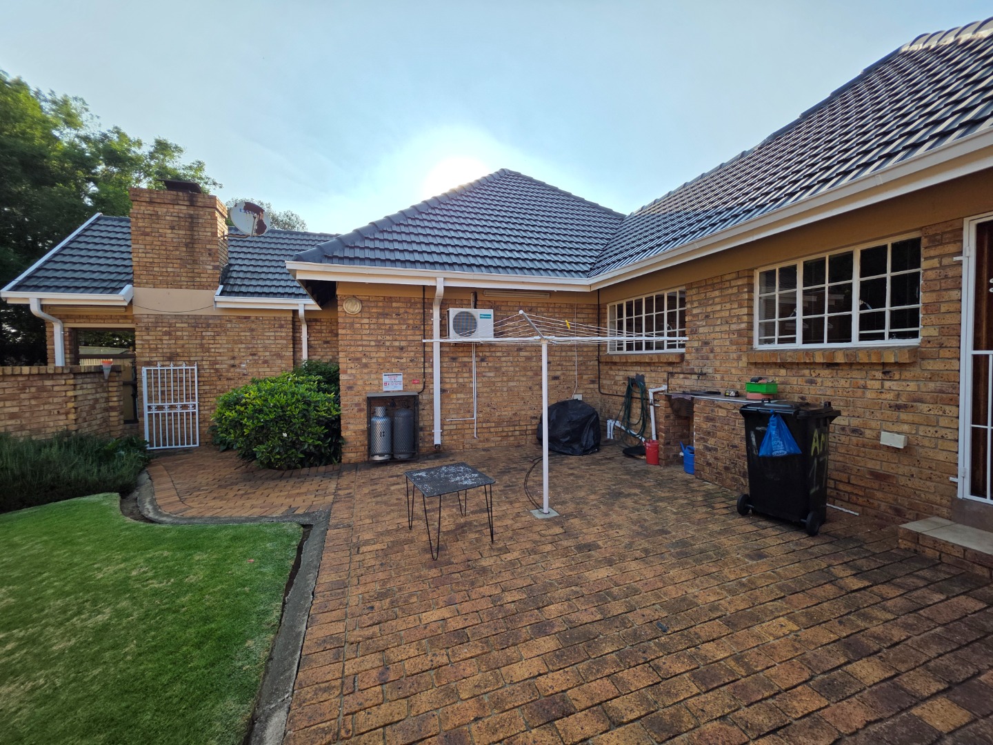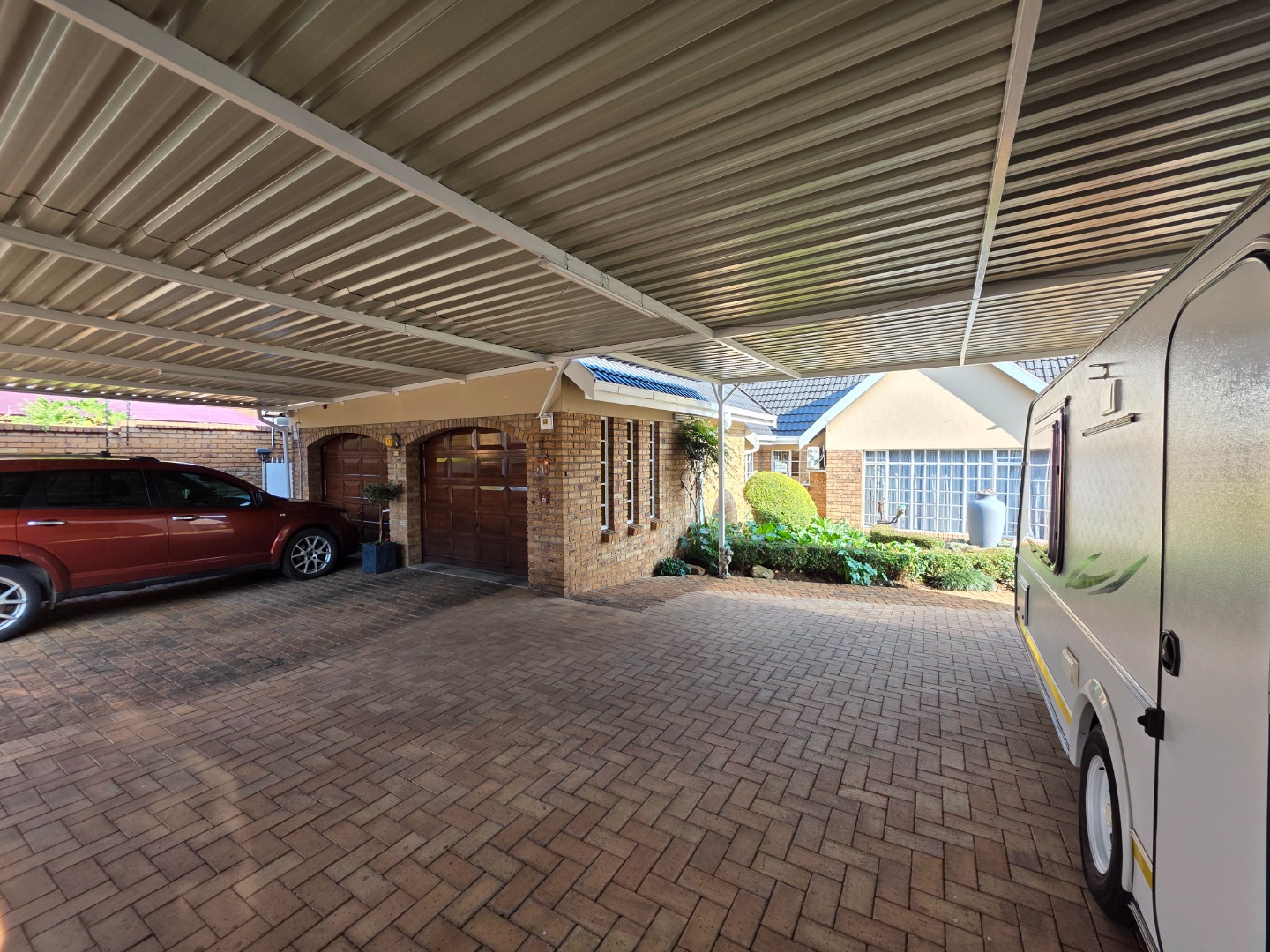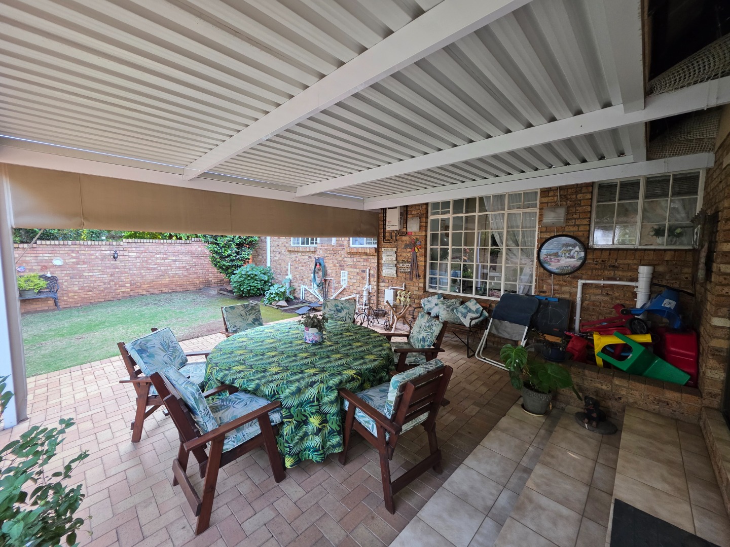 Discover this inviting family residence situated within a secure gated community in the sought-after suburban area of Sunward Park, Boksburg. Boasting a well-maintained brick exterior and a durable tiled roof, the property presents a welcoming kerb appeal, complemented by a manicured front lawn and a paved patio with an awning, perfect for enjoying the outdoors.