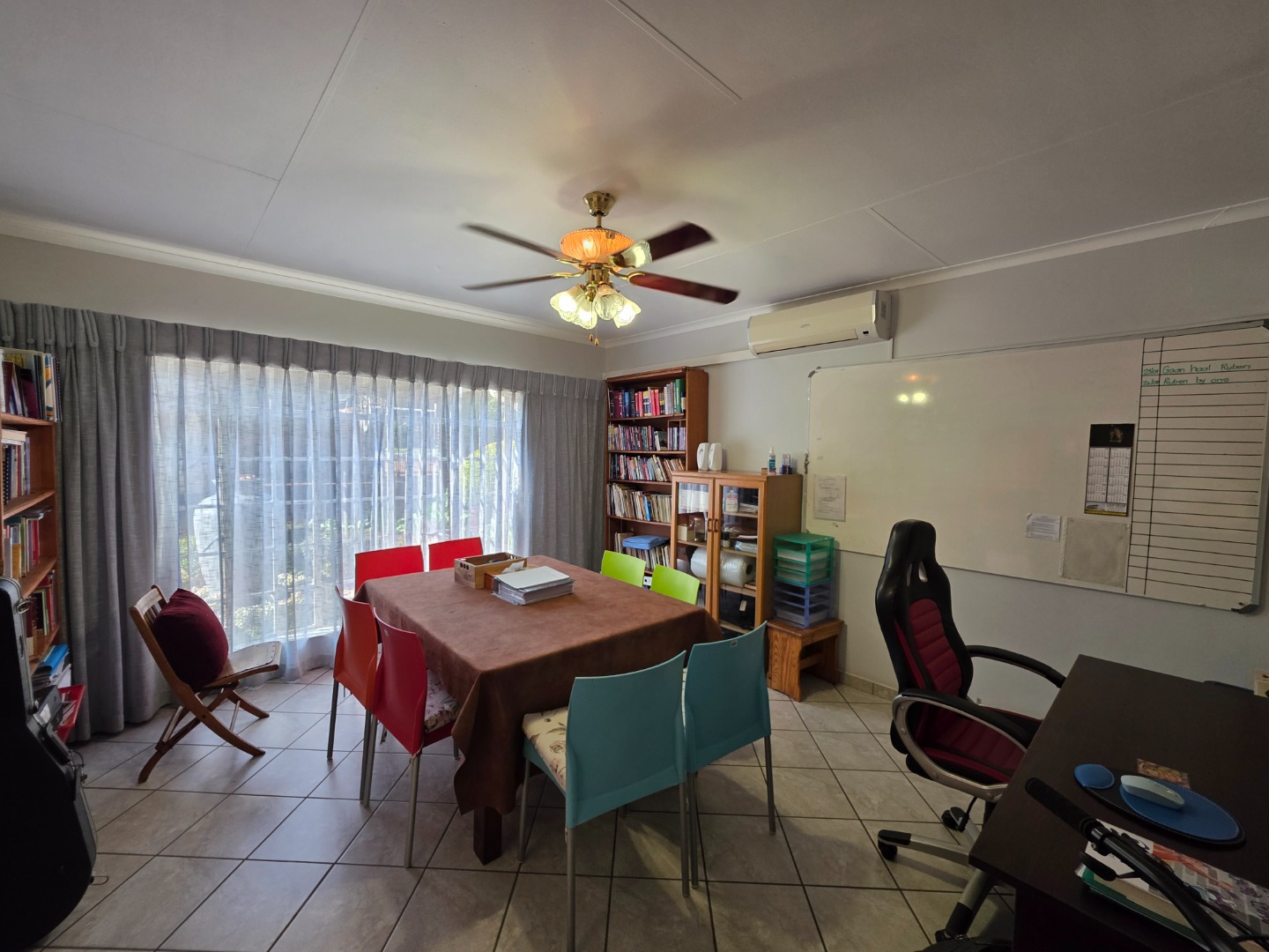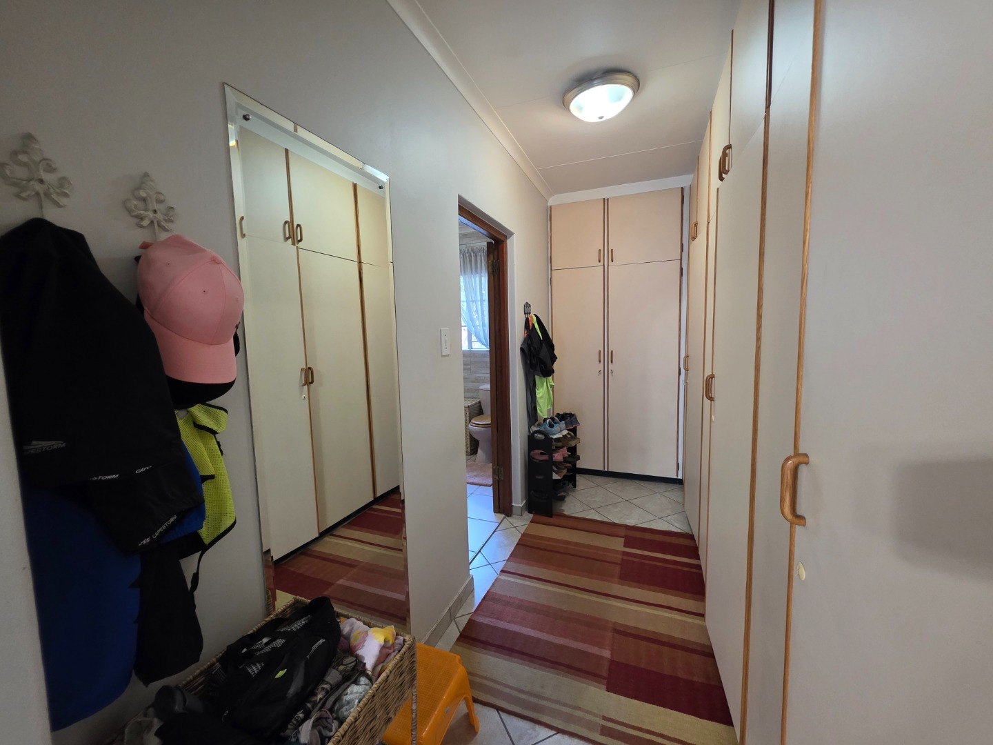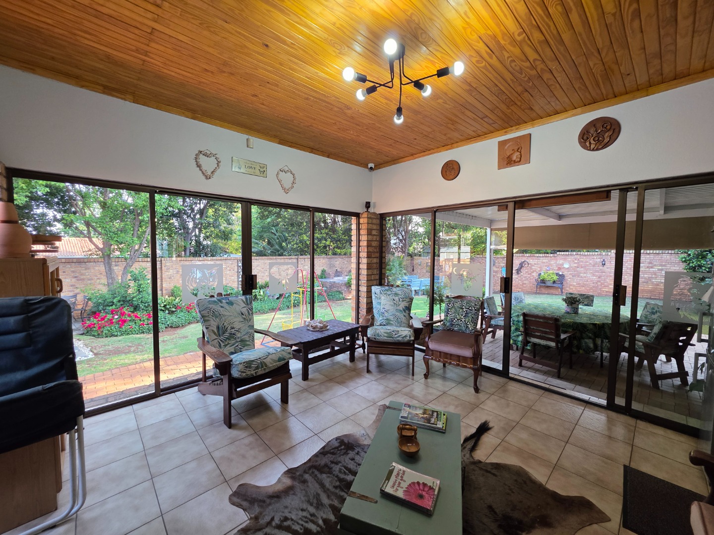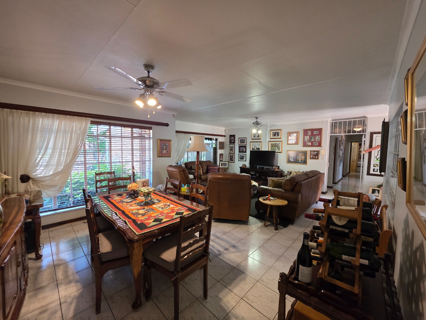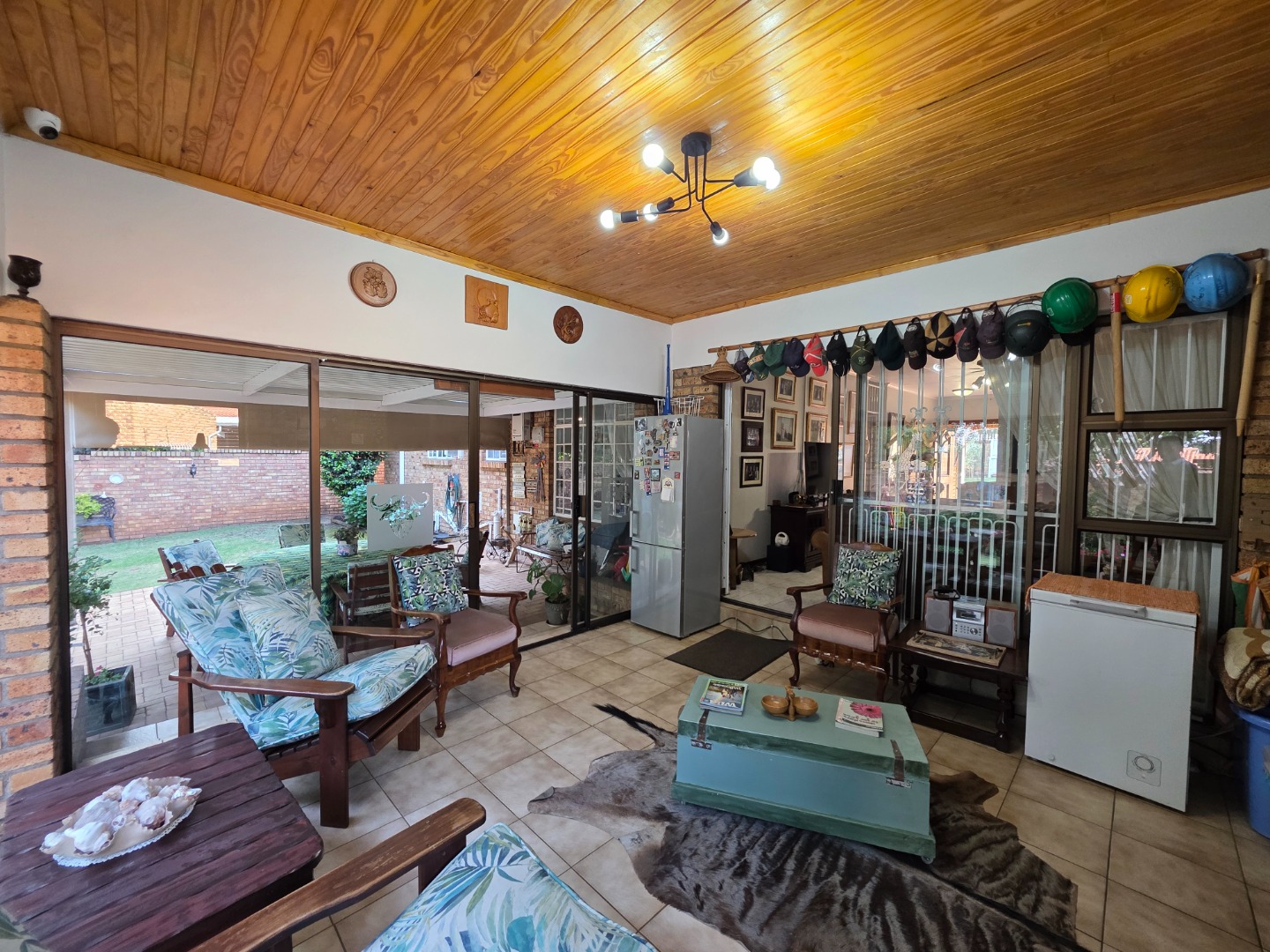 Discover this inviting family residence situated within a secure gated community in the sought-after suburban area of Sunward Park, Boksburg. Boasting a well-maintained brick exterior and a durable tiled roof, the property presents a welcoming kerb appeal, complemented by a manicured front lawn and a paved patio with an awning, perfect for enjoying the outdoors.