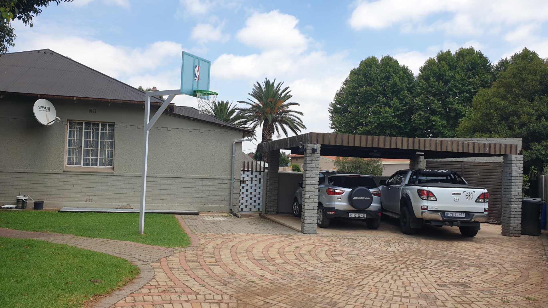 Double carport and single garage .