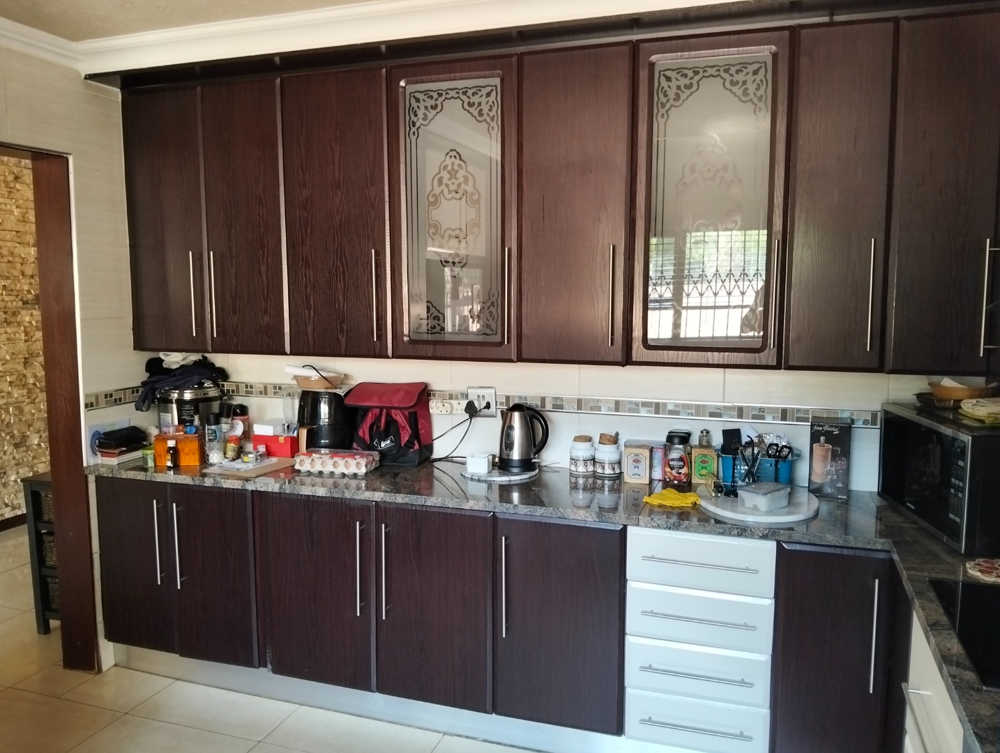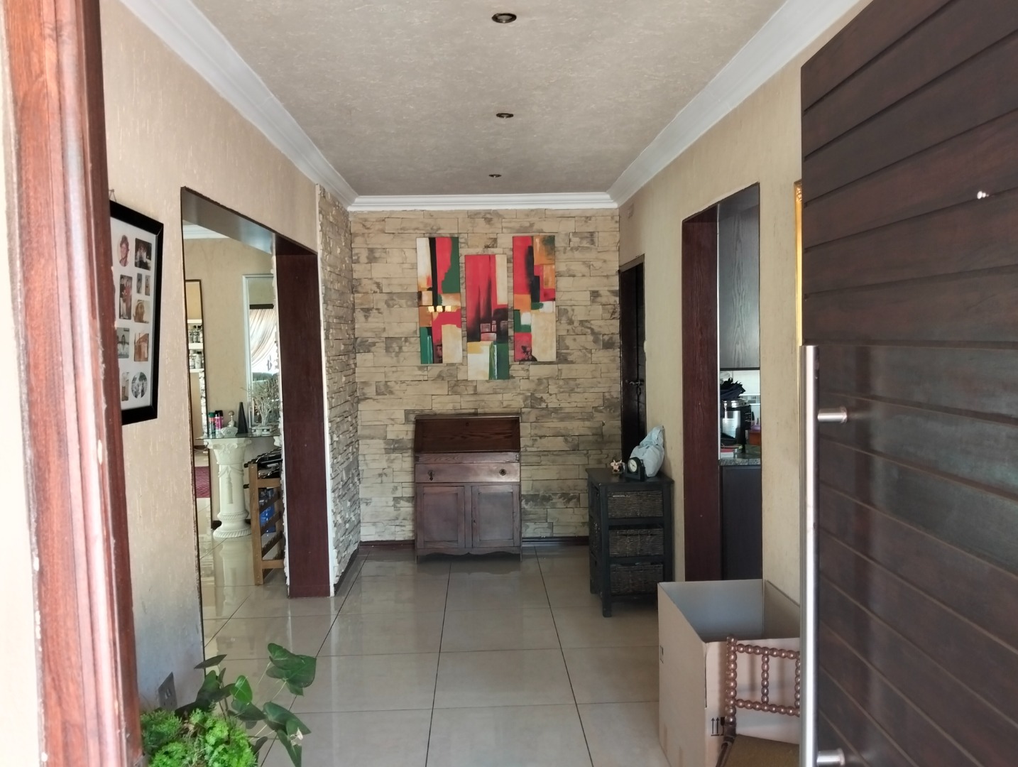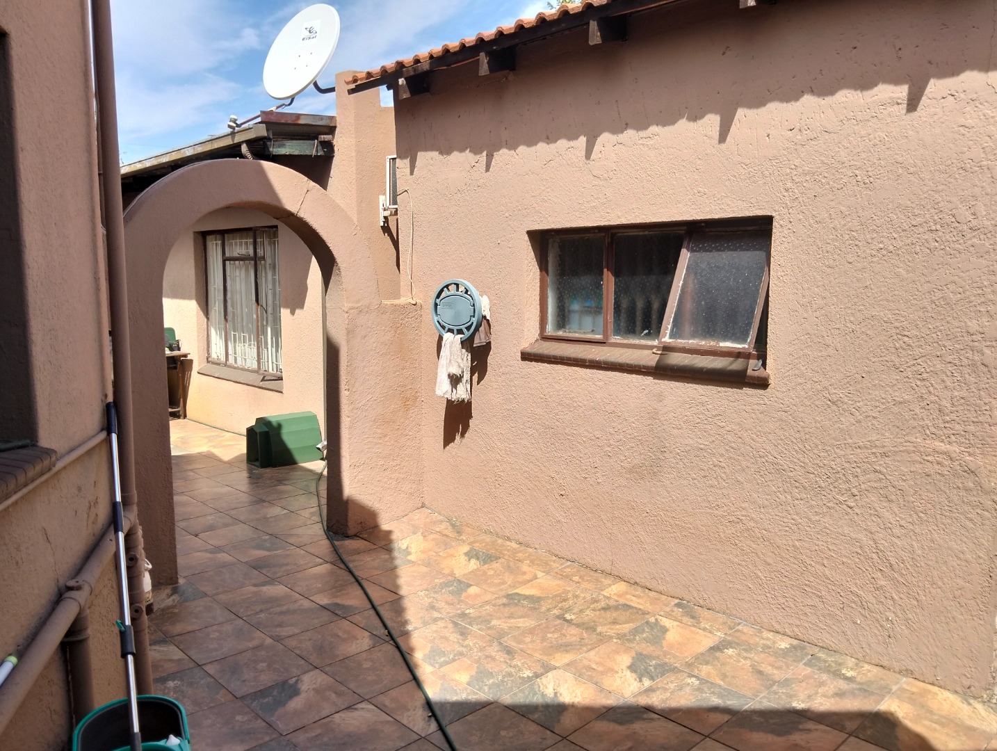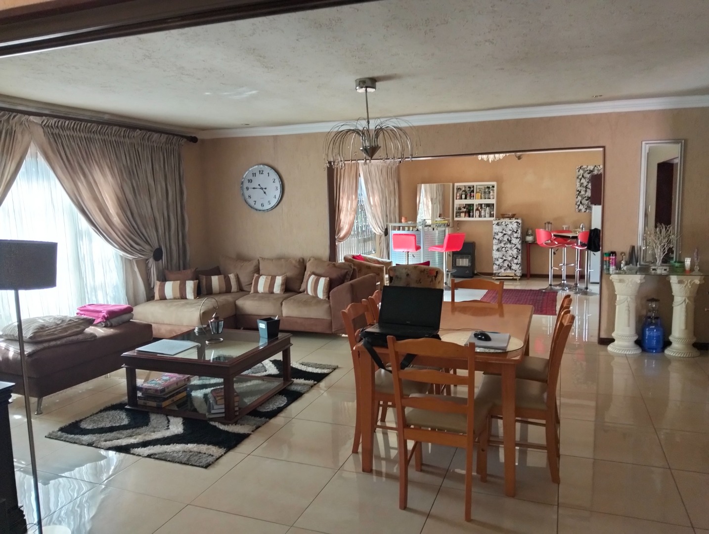 Discover this expansive 5-bedroom, 4-bathroom residence available for rent. This spacious home boasts a well-designed layout, featuring three distinct lounges, a dedicated dining room, and an additional family TV room, providing ample space for relaxation and entertainment. The property includes a functional kitchen with a pantry, catering to all culinary needs. Enjoy the convenience of tiled flooring throughout, an inviting entrance hall, and the modern comfort of air conditioning. A significant highlight is the separate flatlet, offering versatile living arrangements or additional income potential. Ideal for large families or those seeking multi-generational living, this home offers a comfortable and adaptable environment. The property is pet-friendly and wheelchair accessible, ensuring inclusivity for all residents. Step outside to a welcoming patio and a well-maintained garden, perfect for outdoor enjoyment and relaxation. The open-plan design enhances the sense of space, complemented by sliding doors that connect various living areas. Security is a priority, with the property being totally walled and equipped with electric fencing, burglar bars, and security gates for peace of mind. CCTV surveillance further enhances safety. Connectivity is ensured with fibre readiness. Parking is abundant, featuring an integrated double garage and additional paved driveway space, accommodating multiple vehicles securely. Situated in the established suburban neighbourhood of Krugersrus, Springs, this home offers a tranquil setting while remaining conveniently located within the city. Key Features: * 5 Bedrooms, 4 Bathrooms (1 en-suite with spa bath) * 3 Lounges, Dining Room, Family TV Room * Dedicated Flatlet * Integrated Double Garage & Ample Paved Parking * Air Conditioning & Patio * Comprehensive Security (Electric Fencing, CCTV, Burglar Bars, Security Gates, Walled) * Fibre Ready * Pet-Friendly & Wheelchair Accessible * Large Erf (985 sqm) and Floor Size (346 sqm)