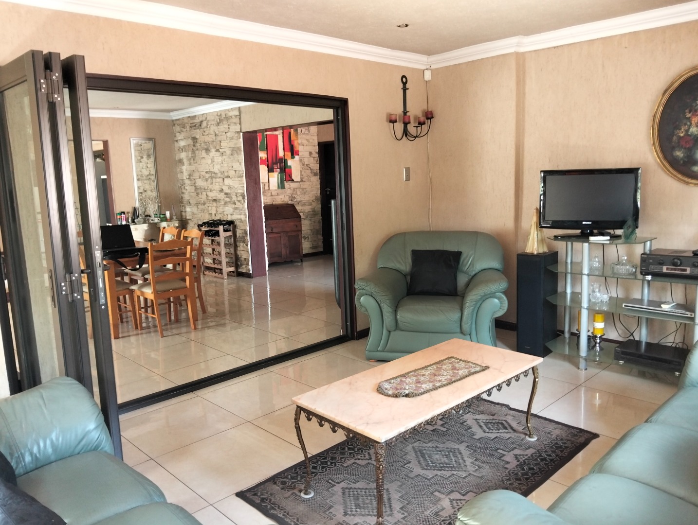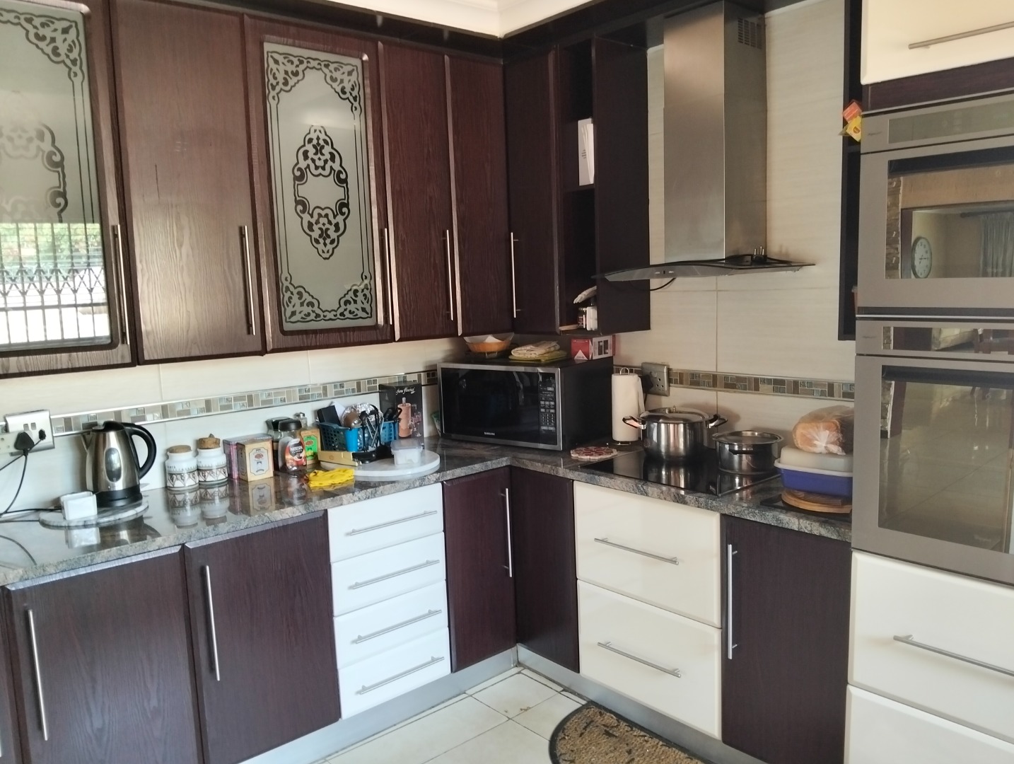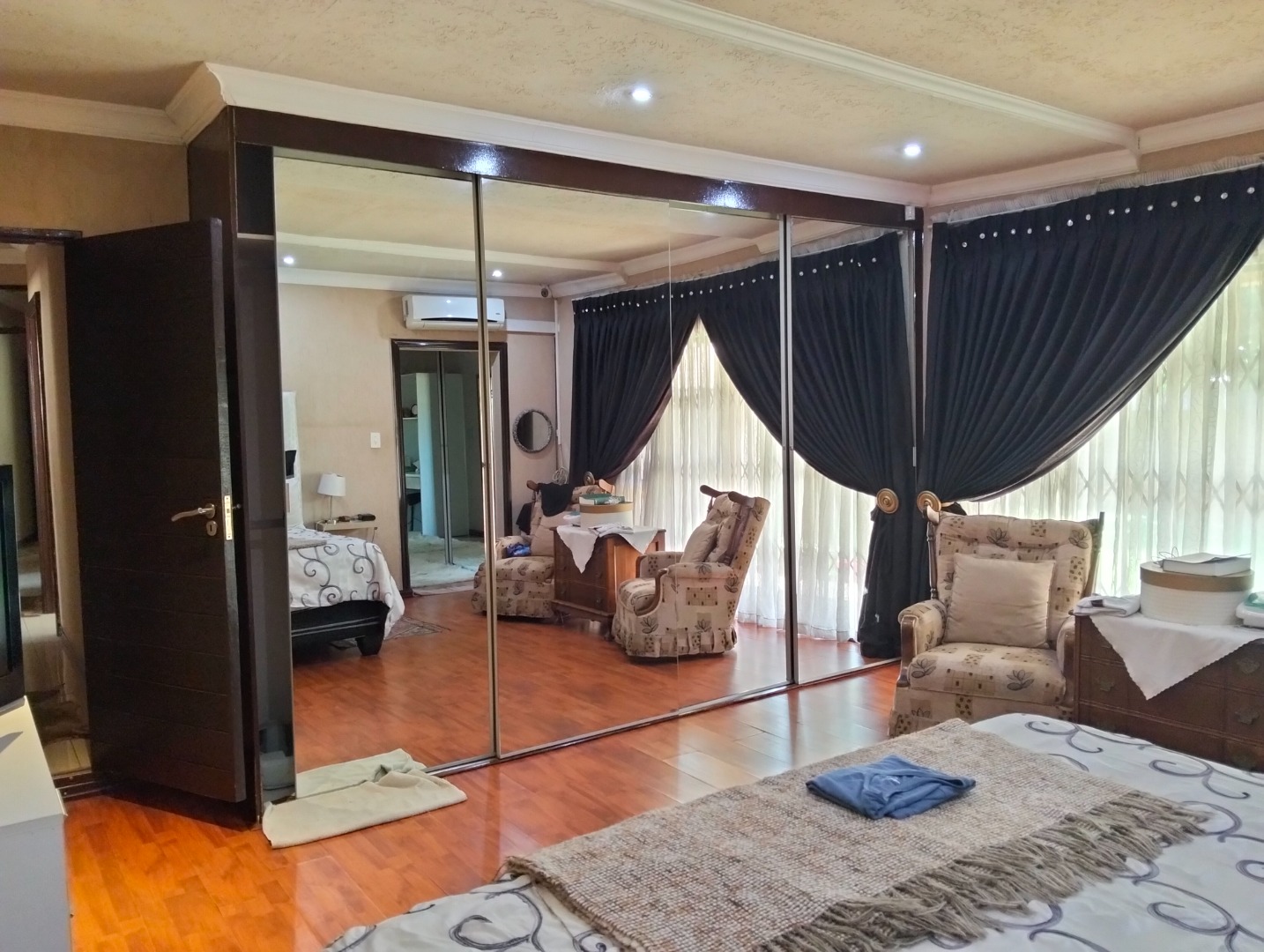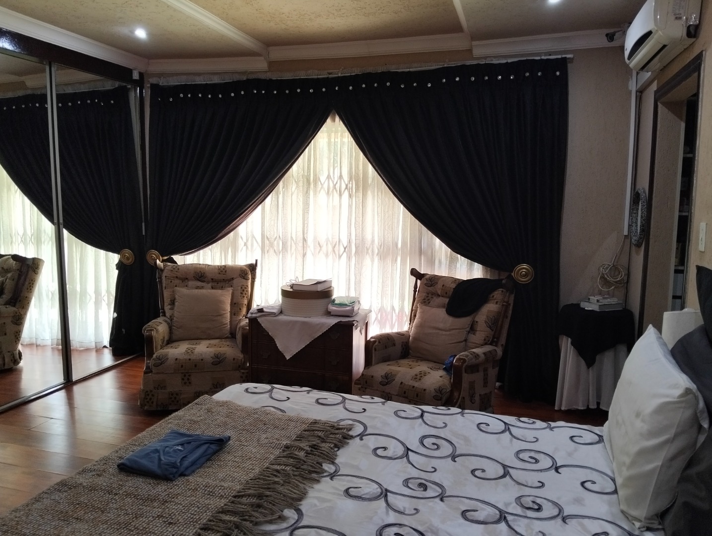 Discover this expansive 5-bedroom, 4-bathroom residence available for rent. This spacious home boasts a well-designed layout, featuring three distinct lounges, a dedicated dining room, and an additional family TV room, providing ample space for relaxation and entertainment. The property includes a functional kitchen with a pantry, catering to all culinary needs. Enjoy the convenience of tiled flooring throughout, an inviting entrance hall, and the modern comfort of air conditioning. A significant highlight is the separate flatlet, offering versatile living arrangements or additional income potential. Ideal for large families or those seeking multi-generational living, this home offers a comfortable and adaptable environment. The property is pet-friendly and wheelchair accessible, ensuring inclusivity for all residents. Step outside to a welcoming patio and a well-maintained garden, perfect for outdoor enjoyment and relaxation. The open-plan design enhances the sense of space, complemented by sliding doors that connect various living areas. Security is a priority, with the property being totally walled and equipped with electric fencing, burglar bars, and security gates for peace of mind. CCTV surveillance further enhances safety. Connectivity is ensured with fibre readiness. Parking is abundant, featuring an integrated double garage and additional paved driveway space, accommodating multiple vehicles securely. Situated in the established suburban neighbourhood of Krugersrus, Springs, this home offers a tranquil setting while remaining conveniently located within the city. Key Features: * 5 Bedrooms, 4 Bathrooms (1 en-suite with spa bath) * 3 Lounges, Dining Room, Family TV Room * Dedicated Flatlet * Integrated Double Garage & Ample Paved Parking * Air Conditioning & Patio * Comprehensive Security (Electric Fencing, CCTV, Burglar Bars, Security Gates, Walled) * Fibre Ready * Pet-Friendly & Wheelchair Accessible * Large Erf (985 sqm) and Floor Size (346 sqm)