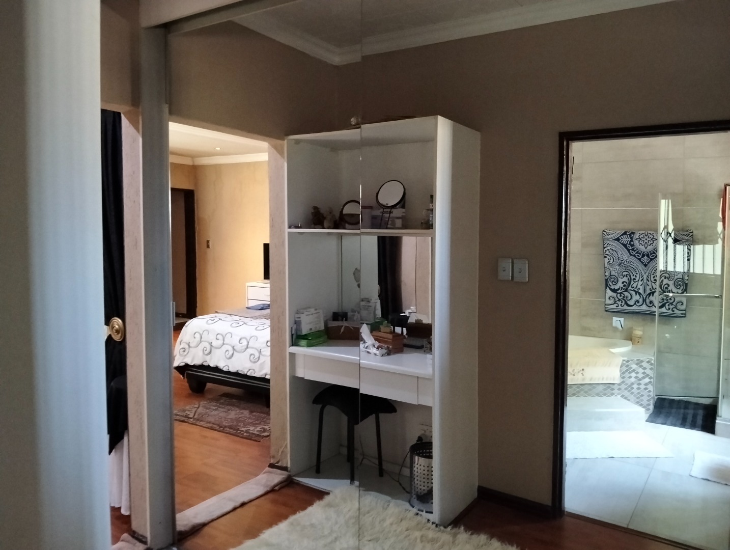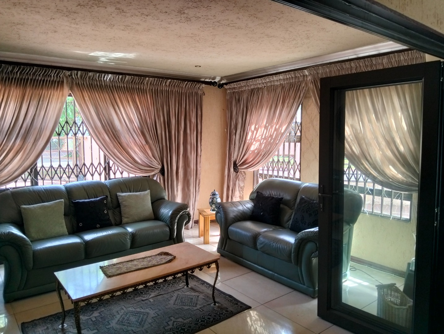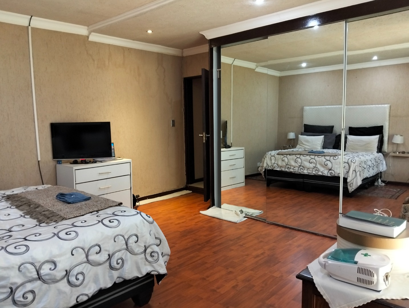 Discover this expansive 5-bedroom, 4-bathroom residence available for rent. This spacious home boasts a well-designed layout, featuring three distinct lounges, a dedicated dining room, and an additional family TV room, providing ample space for relaxation and entertainment. The property includes a functional kitchen with a pantry, catering to all culinary needs. Enjoy the convenience of tiled flooring throughout, an inviting entrance hall, and the modern comfort of air conditioning. A significant highlight is the separate flatlet, offering versatile living arrangements or additional income potential. Ideal for large families or those seeking multi-generational living, this home offers a comfortable and adaptable environment. The property is pet-friendly and wheelchair accessible, ensuring inclusivity for all residents. Step outside to a welcoming patio and a well-maintained garden, perfect for outdoor enjoyment and relaxation. The open-plan design enhances the sense of space, complemented by sliding doors that connect various living areas. Security is a priority, with the property being totally walled and equipped with electric fencing, burglar bars, and security gates for peace of mind. CCTV surveillance further enhances safety. Connectivity is ensured with fibre readiness. Parking is abundant, featuring an integrated double garage and additional paved driveway space, accommodating multiple vehicles securely. Situated in the established suburban neighbourhood of Krugersrus, Springs, this home offers a tranquil setting while remaining conveniently located within the city. Key Features: * 5 Bedrooms, 4 Bathrooms (1 en-suite with spa bath) * 3 Lounges, Dining Room, Family TV Room * Dedicated Flatlet * Integrated Double Garage & Ample Paved Parking * Air Conditioning & Patio * Comprehensive Security (Electric Fencing, CCTV, Burglar Bars, Security Gates, Walled) * Fibre Ready * Pet-Friendly & Wheelchair Accessible * Large Erf (985 sqm) and Floor Size (346 sqm)