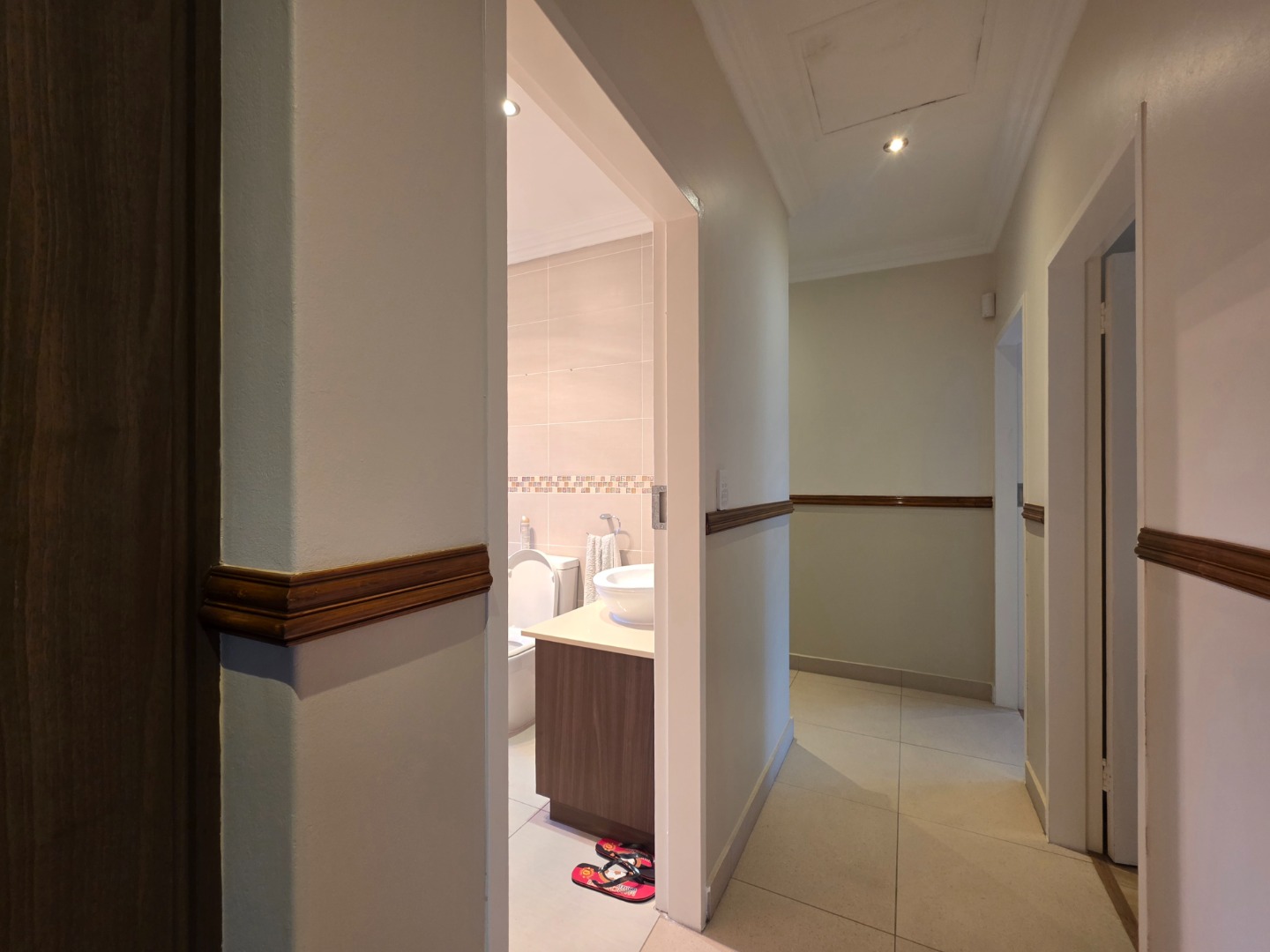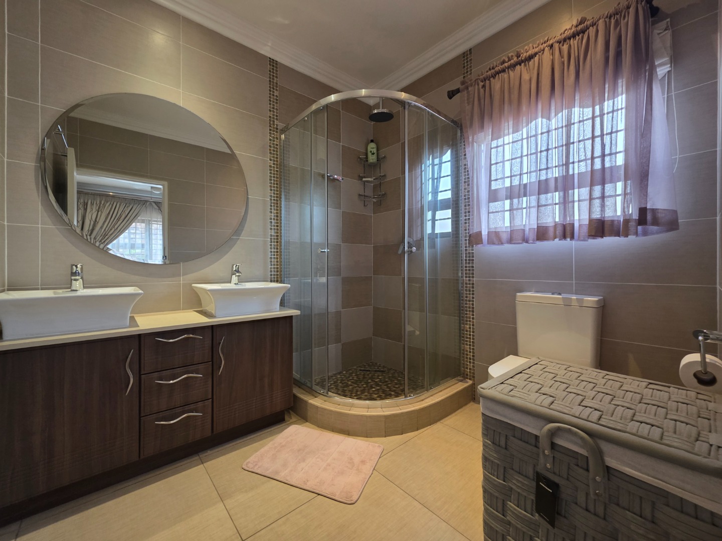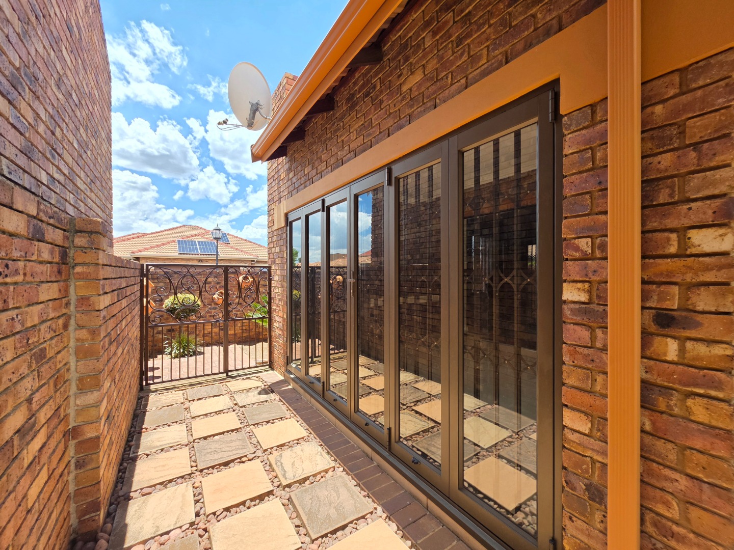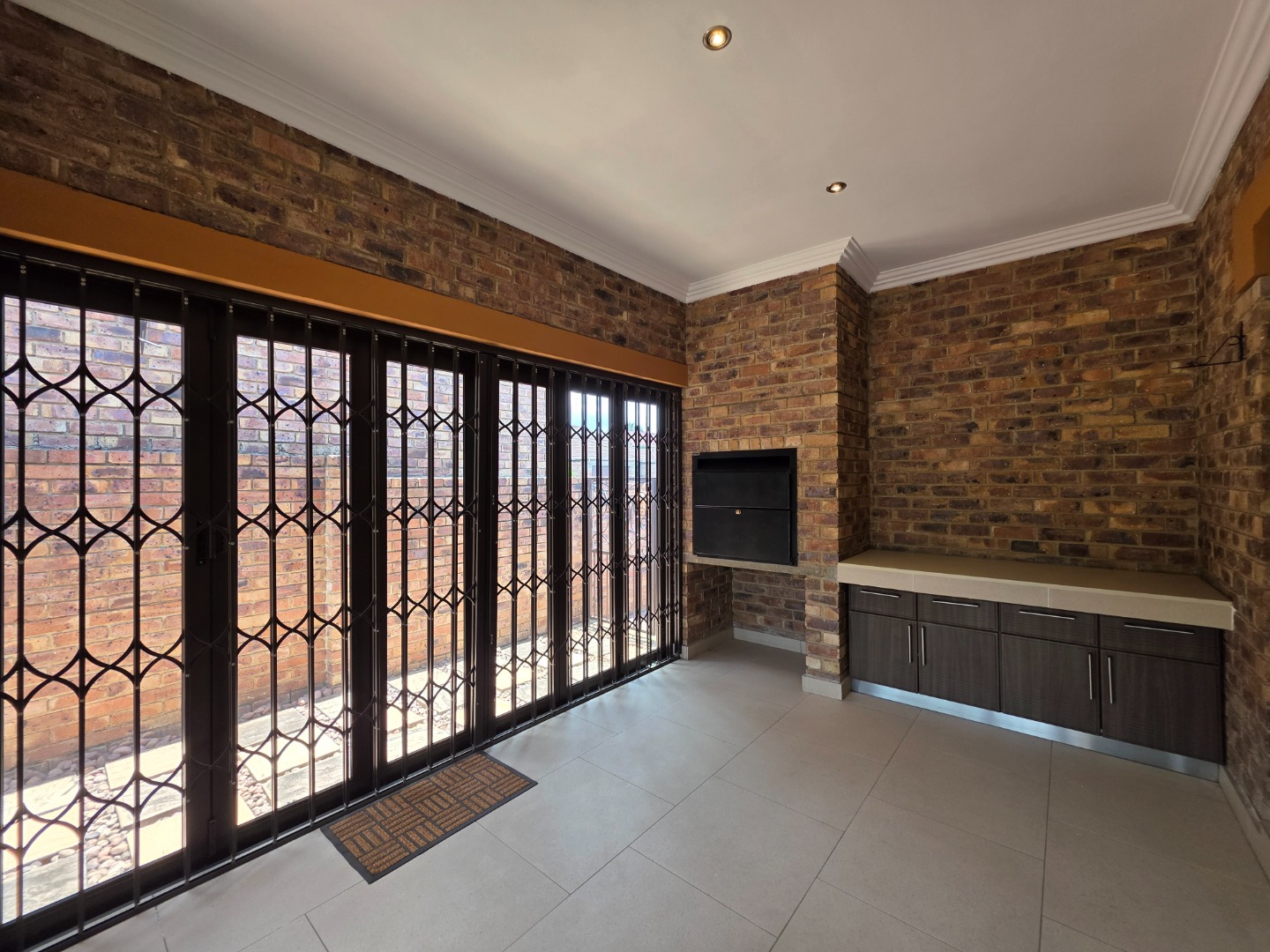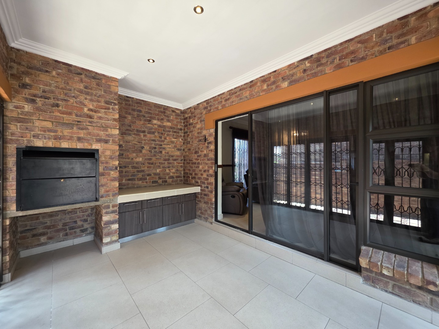 The covered braai and entertainment area, fitted with stacker doors, creates a seamless indoor-outdoor lifestyle ideal for hosting. Parking is generous with a double automated garage and an additional third carport.