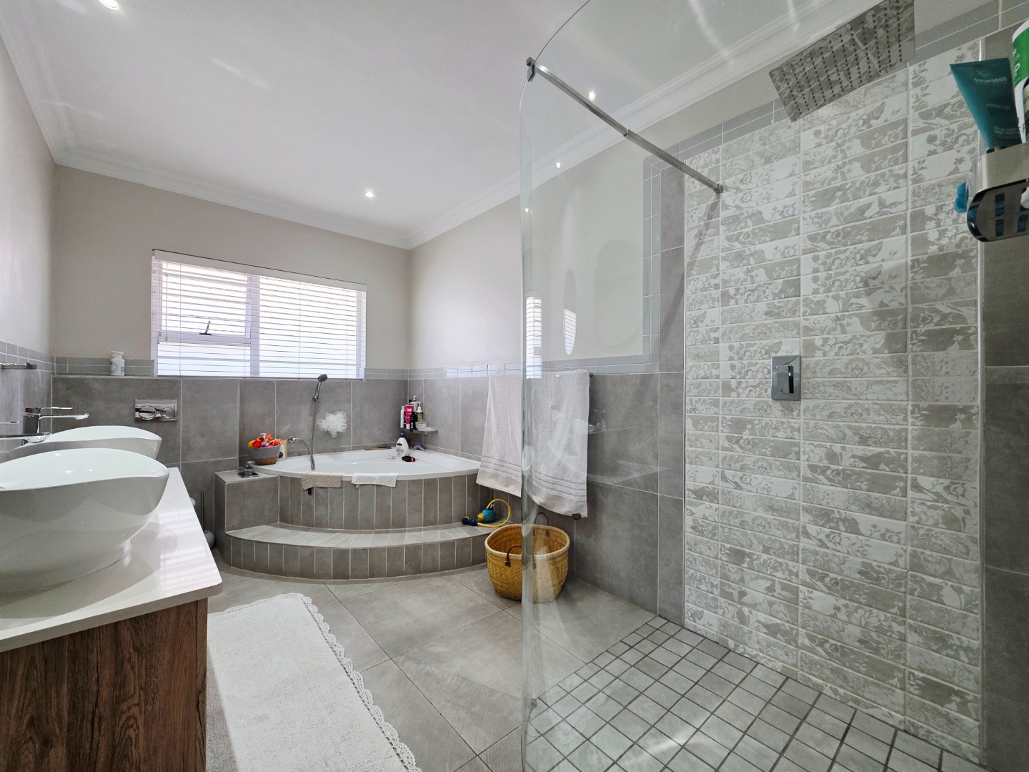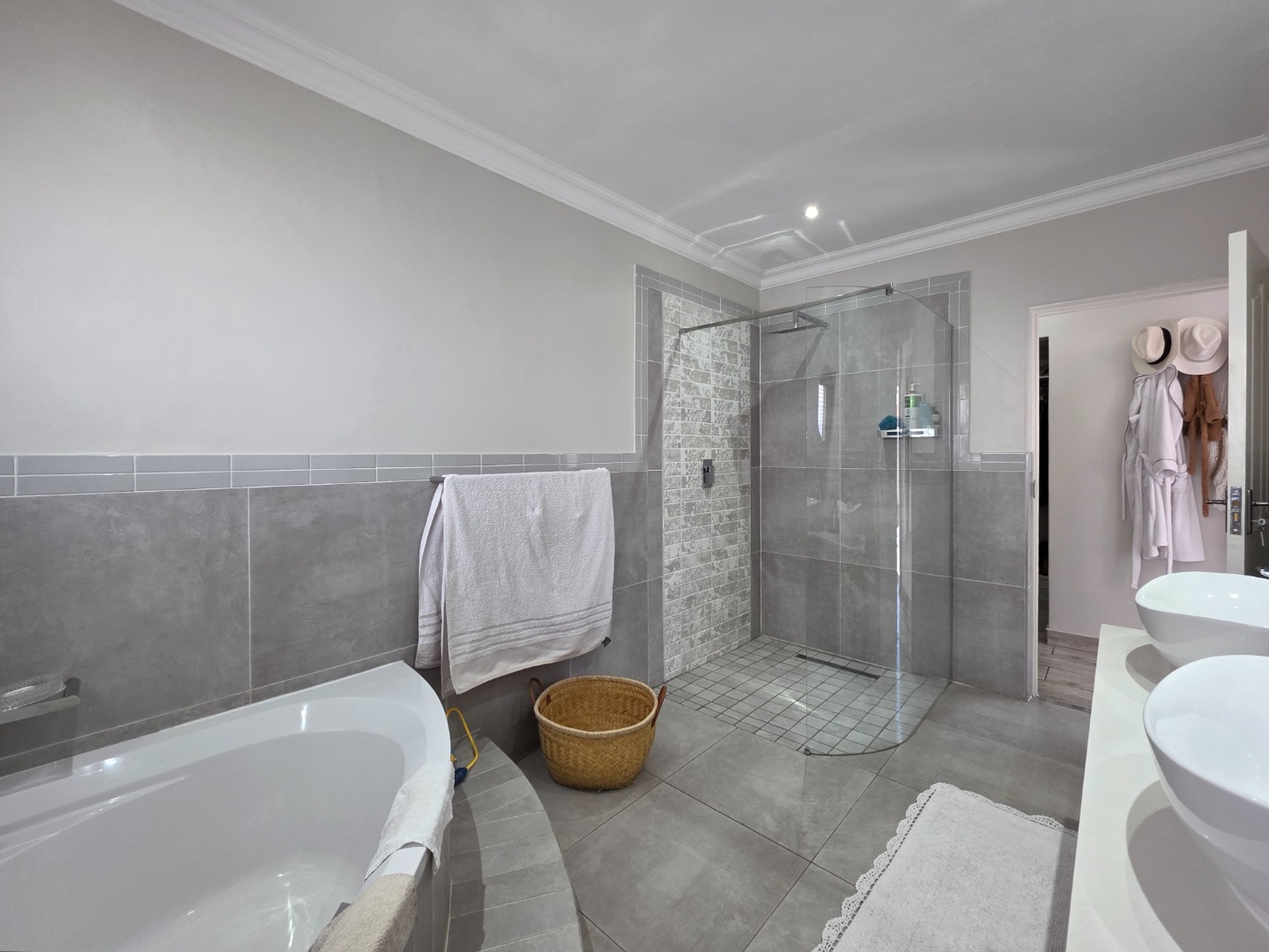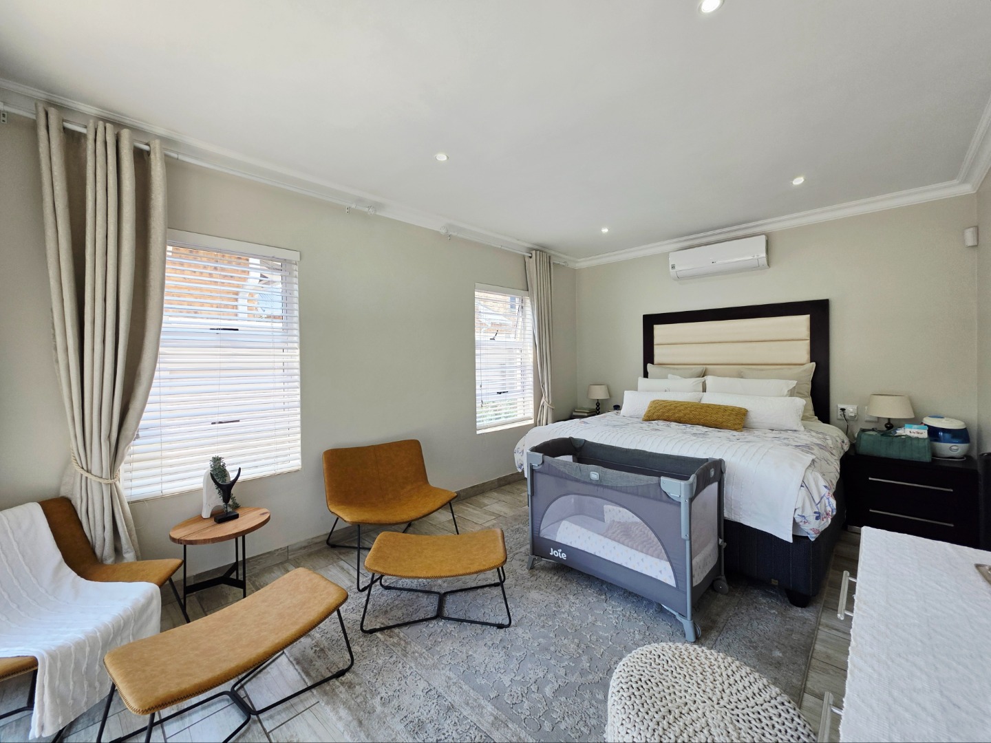Step outside to a private garden oasis featuring a refreshing swimming pool, perfect for enjoying the South African climate. An integrated braai room and paved areas enhance outdoor living, making it ideal for gatherings. The property is pet-friendly and offers practical amenities including two garages and four additional parking spaces, ensuring convenience for residents and guests alike.