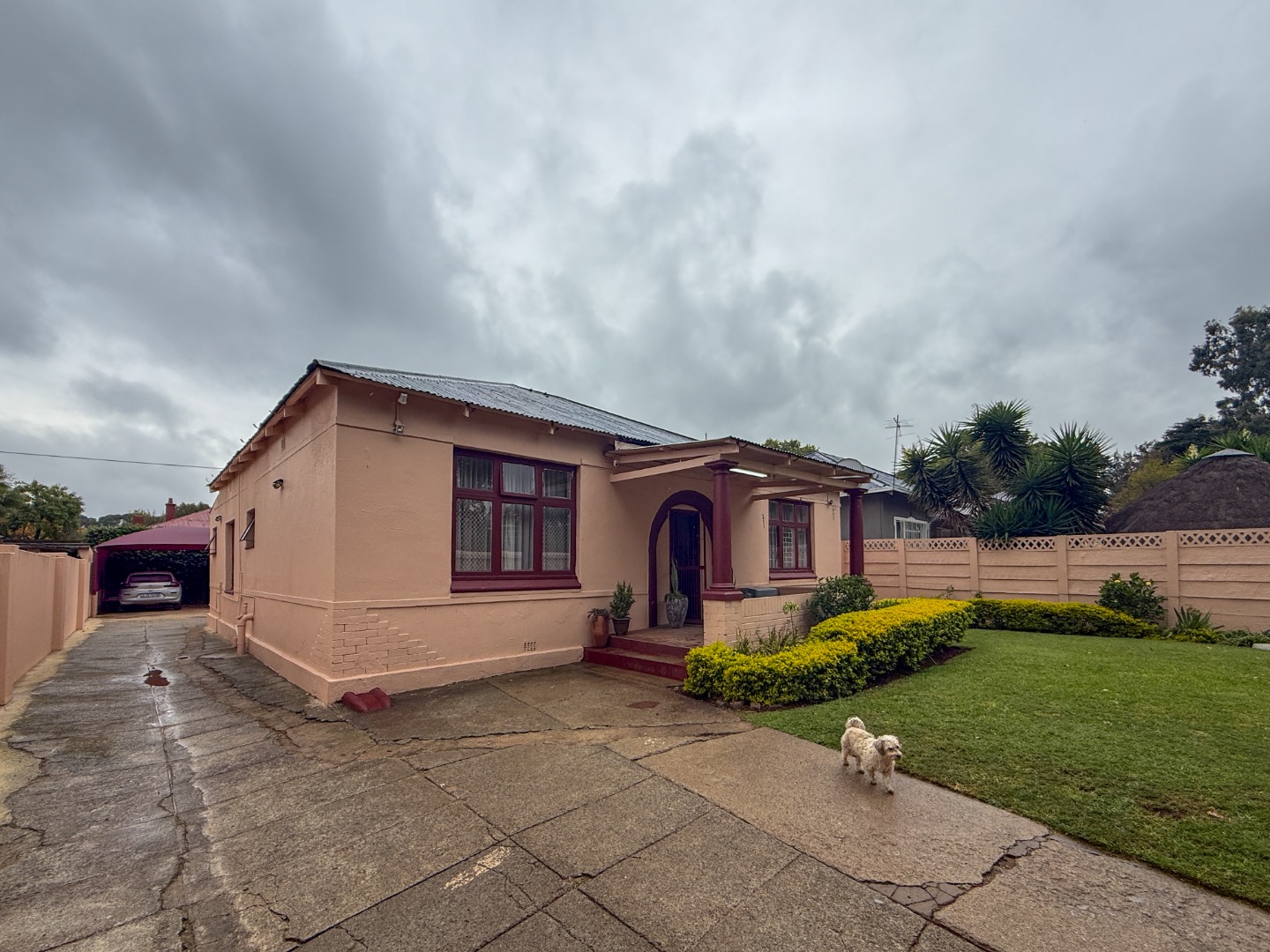 This charming single-story residence in Boksburg South presents a well-maintained exterior, featuring a peach-toned facade complemented by dark red accents and a welcoming arched front porch. The property, situated on a 473 sqm erf.
