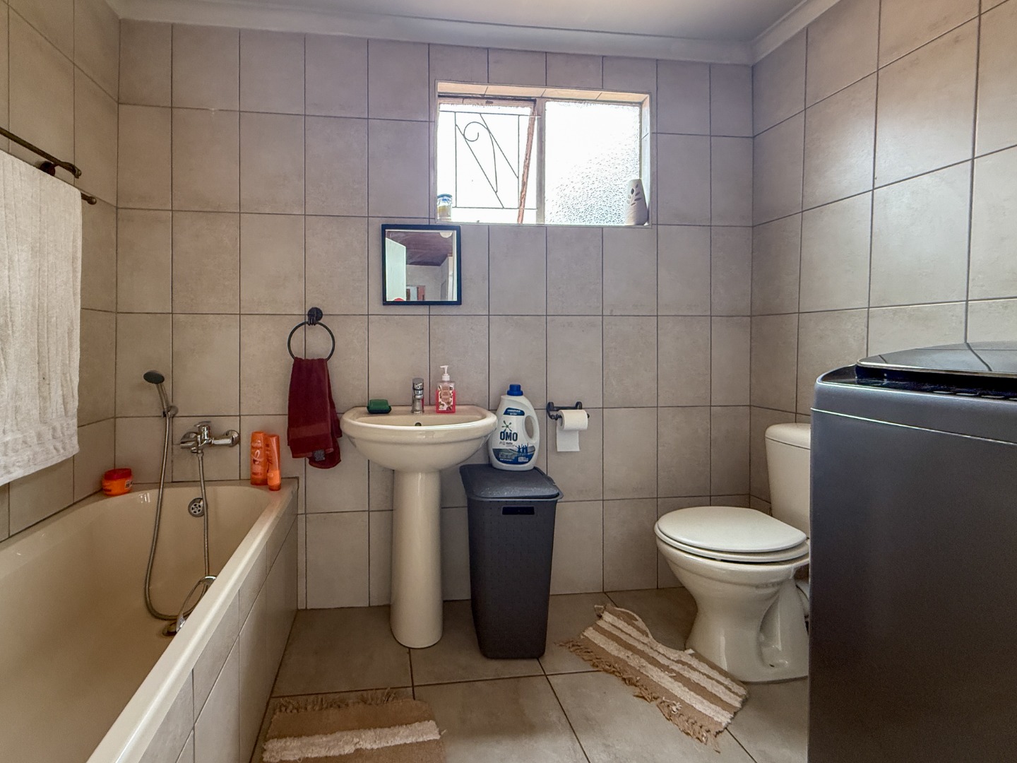 Accommodation comprises three well-proportioned bedrooms and two bathrooms, ensuring comfort and practicality for residents. The property further benefits from dedicated parking spaces and a private, fenced yard. Security is enhanced with the inclusion of burglar bars and security gates, offering peace of mind.