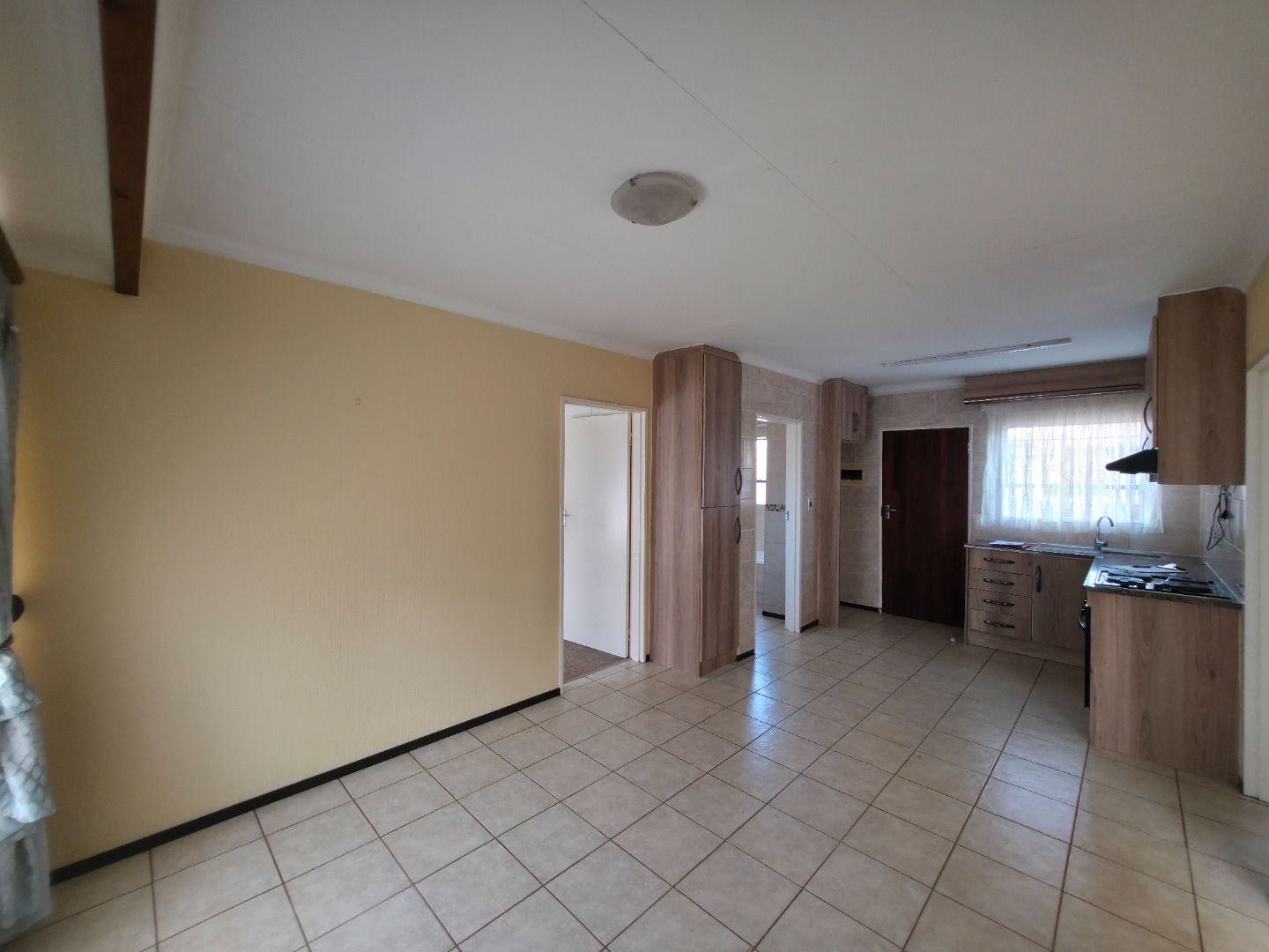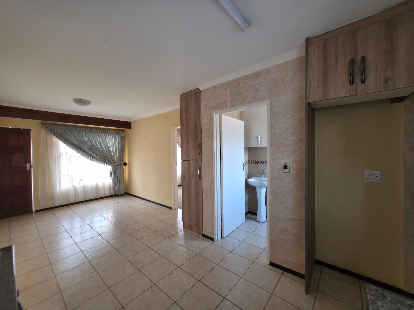 Step inside to an inviting open-plan living area, featuring durable tiled flooring and ample natural light from a large window. This versatile space seamlessly integrates a lounge and a family TV room, providing comfortable zones for relaxation and entertainment. The functional kitchen is designed for efficiency, catering to daily needs.