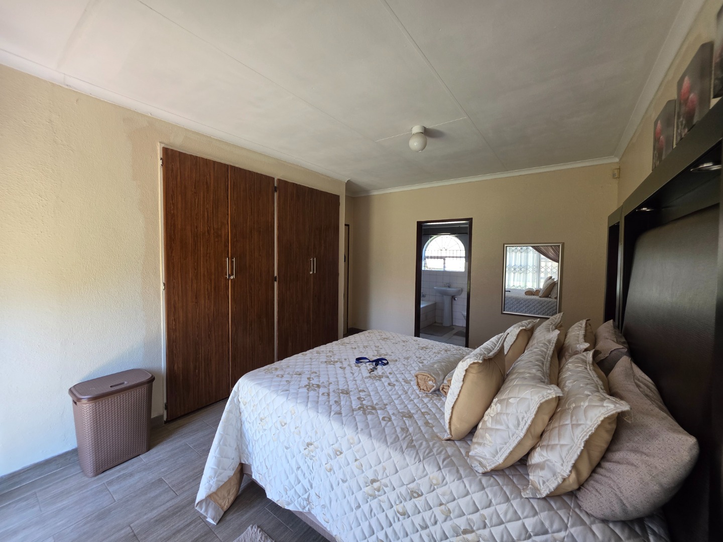 This residence boasts three well-proportioned bedrooms, each offering a comfortable sanctuary. The main bedroom includes the convenience of an en-suite bathroom, one of two bathrooms in the home. Built-in wardrobes provide essential storage, and select bedrooms feature sliding glass doors that open directly to the garden, inviting natural light and a seamless indoor-outdoor connection. While functional, the bathrooms present an opportunity for modern updates to truly personalise this space.