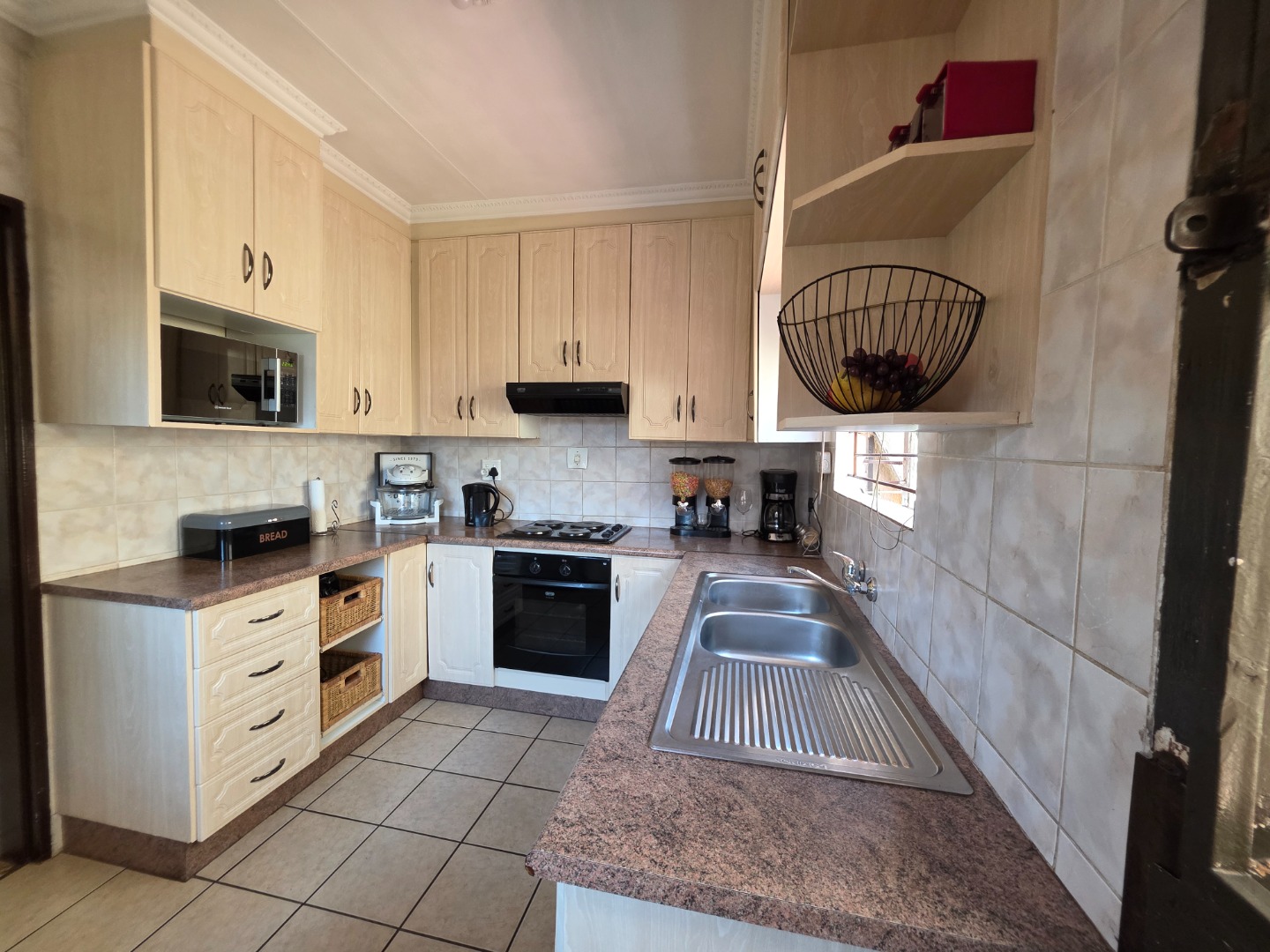 Set on a substantial 901 sqm erf, the outdoor space is a highlight, featuring a spacious garden ideal for children, pets, and outdoor activities. Parking is well-catered for with a single garage and three additional parking spaces. Modern connectivity is ensured with fibre internet availability, supporting today's digital demands.
