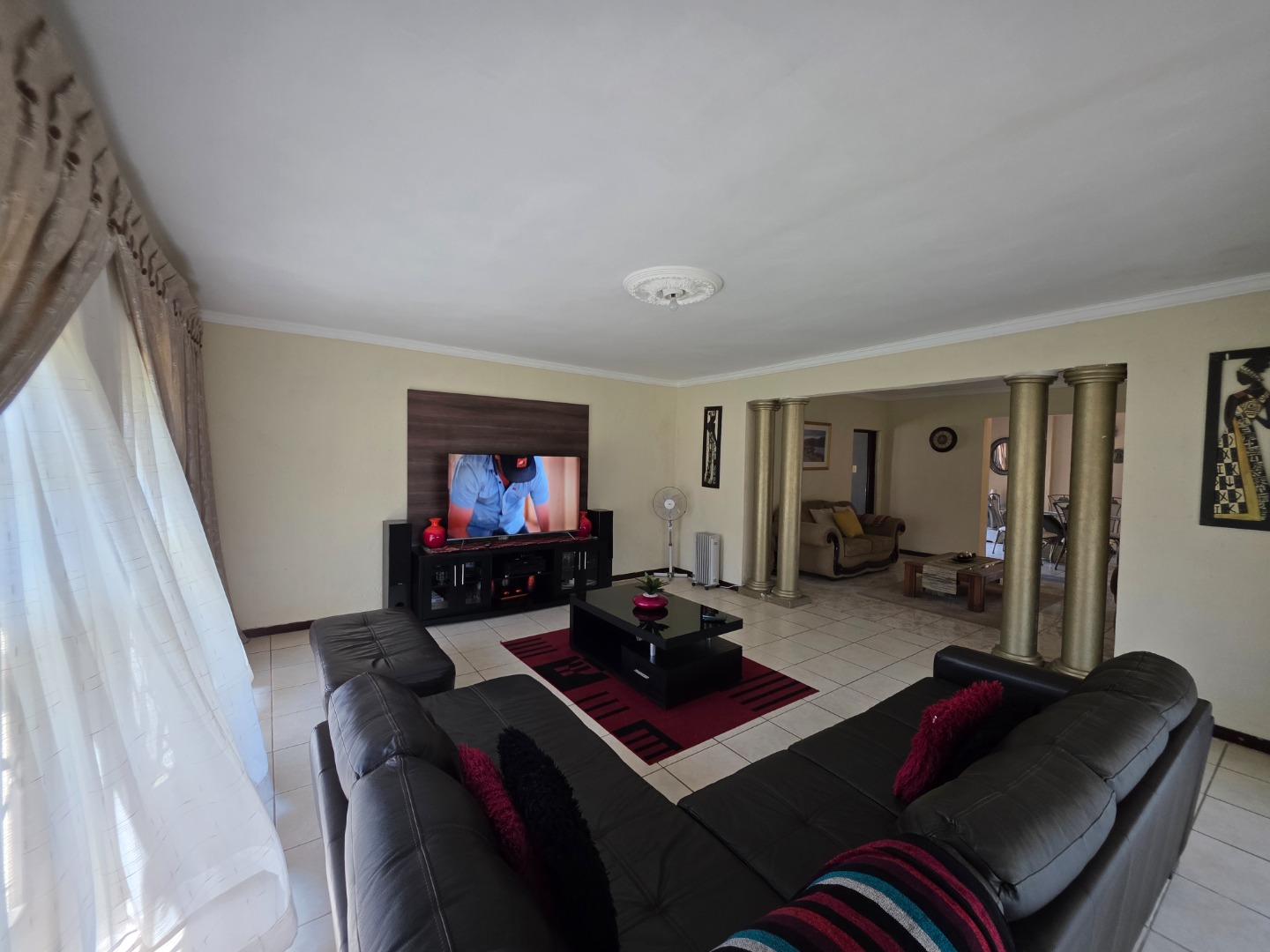 Spanning 153 sqm, the interior features a functional layout designed for family living. An inviting entrance hall leads into two comfortable lounges and a dedicated dining room, providing ample space for both everyday activities and entertaining guests. The open-plan design enhances the flow throughout the main living areas, while practical tiled flooring ensures easy maintenance. A dedicated study offers a quiet retreat for work or hobbies, catering to modern lifestyle needs.