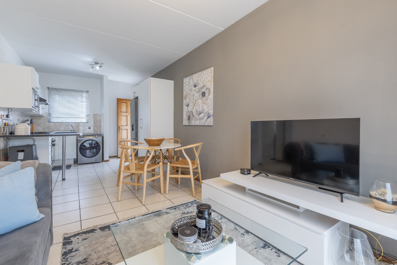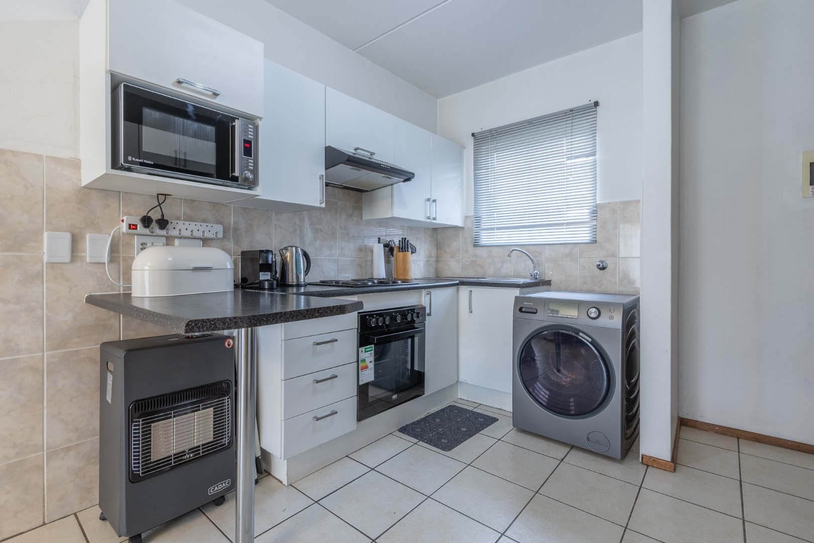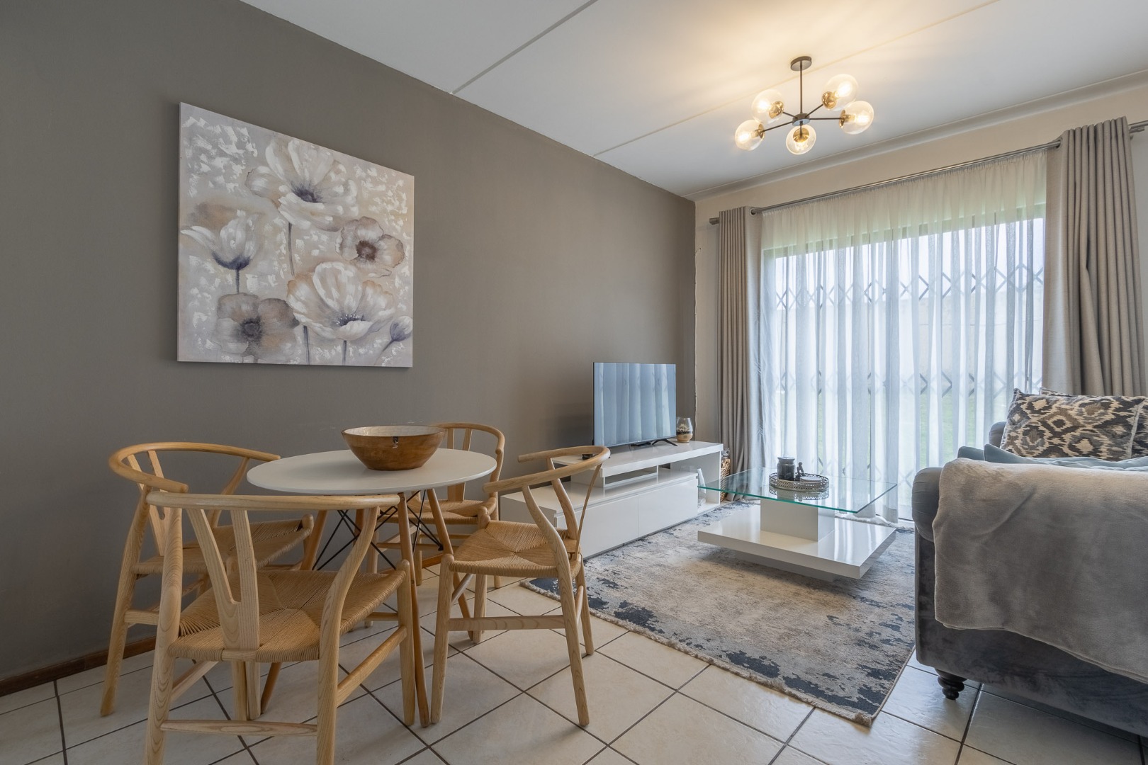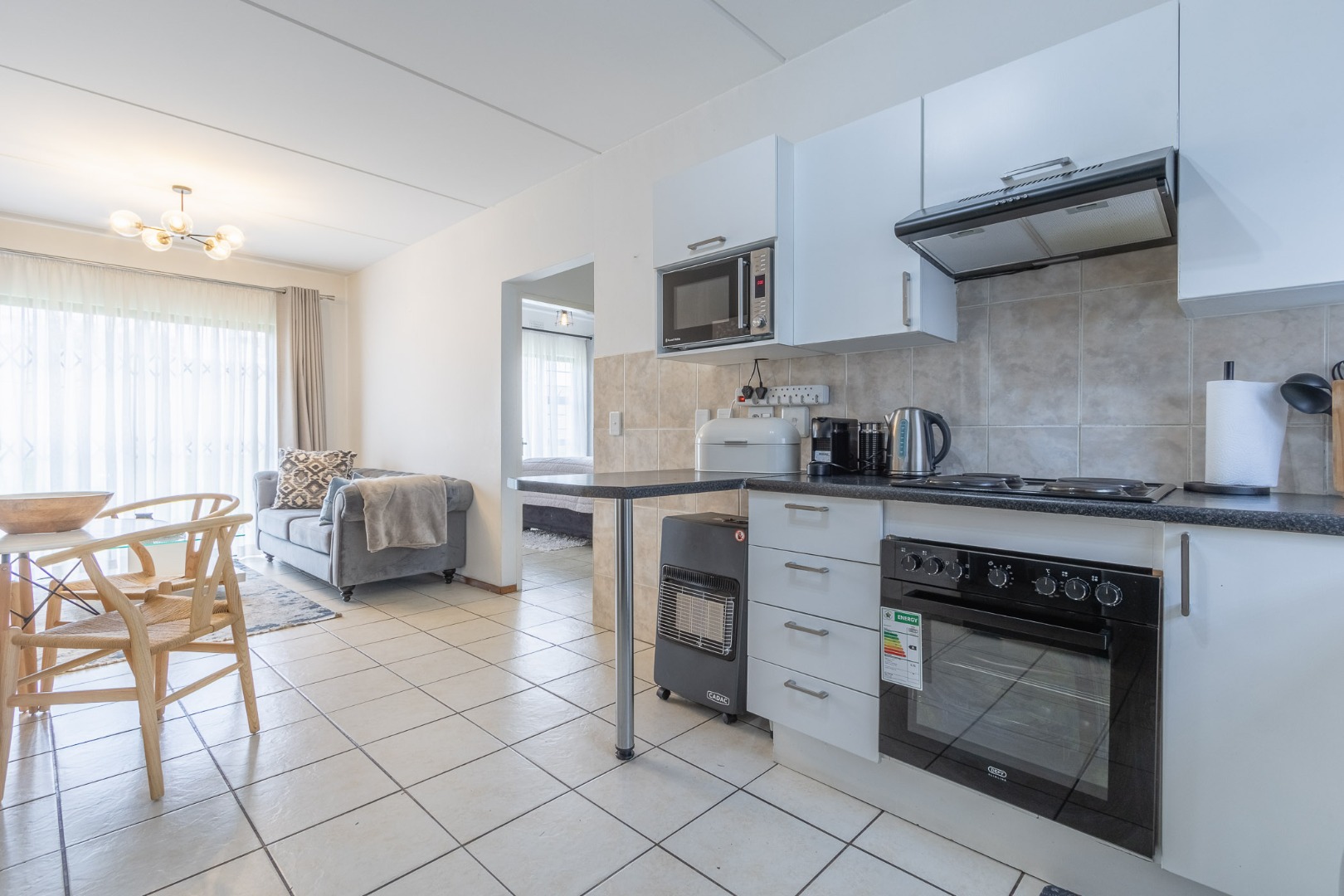 Discover modern living in this stylish 2-bedroom apartment located within a secure complex in Parkrand, Boksburg. Spanning 51 sqm, this thoughtfully designed unit offers an inviting open-plan layout, seamlessly connecting the contemporary kitchen, dining area, and lounge. The kitchen boasts sleek white cabinetry, dark countertops, an integrated oven, hob and space for a microwave and a washing machine, ensuring convenience and a streamlined aesthetic.