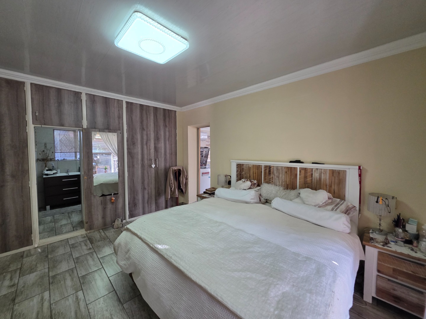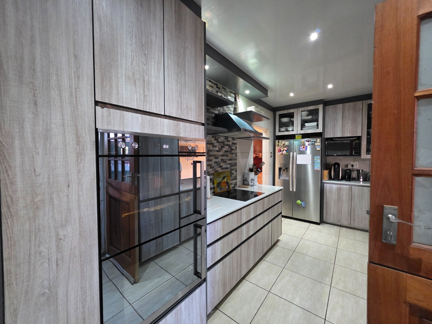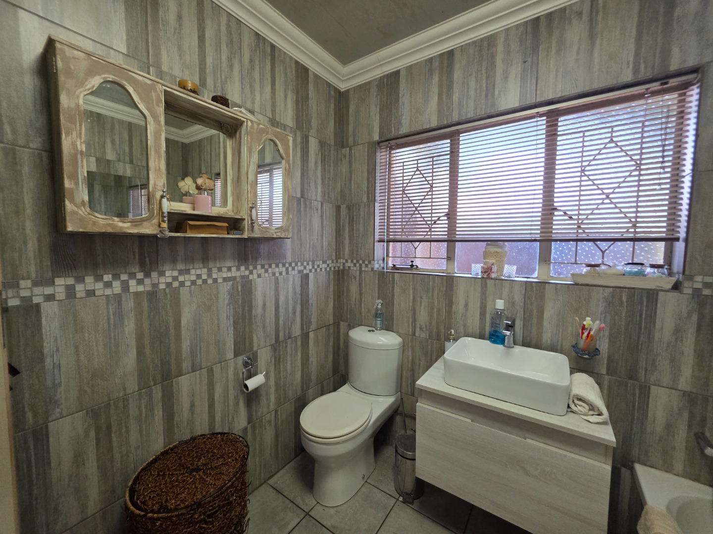 Discover an exquisite suburban sanctuary nestled in the heart of Parkrand, Boksburg, South Africa. This distinguished residence, spanning an impressive 296 square metres on a generous 991 square metre erf, presents an unparalleled opportunity for refined living. The property immediately captivates with its well-maintained exterior, featuring a classic terracotta tile roof and elegant beige walls, framed by mature trees that offer both shade and a sense of serene privacy. The inviting private swimming pool, complemented by a paved patio, sets the stage for sophisticated outdoor entertaining and tranquil relaxation. Step inside to a world of spacious elegance, where two expansive lounges and a dedicated dining room provide ample space for both grand entertaining and intimate family gatherings. The interior boasts a harmonious blend of modern and classic elements, with durable tiled flooring flowing seamlessly throughout. Unique wooden slatted ceilings, adorned with recessed lighting, add a distinctive architectural flair, while the open-plan design fosters a sense of fluidity and connection between living areas. A well-appointed kitchen stands ready to inspire culinary creativity, ensuring every meal is a delight. The residence offers four generously proportioned bedrooms, each designed as a private retreat. The master suite, a true haven, features direct access to a luxurious en-suite bathroom, complete with contemporary grey tiling, a sleek vanity, and a walk-in shower with a curved glass enclosure. Built-in wardrobes with mirrored doors provide abundant storage, while modern wood-look tiled flooring and crown molding elevate the aesthetic. A dedicated study offers a quiet space for work or contemplation, enhancing the home's versatility. Beyond the interiors, the property truly shines with its exceptional outdoor amenities. The private swimming pool is the centrepiece of a meticulously landscaped garden, offering a refreshing escape. A charming lapa and a built-in braai area promise unforgettable al fresco dining experiences. With three garages and an additional six parking spaces, accommodating vehicles is effortless. The inclusion of a flatlet provides flexible living arrangements, ideal for guests, extended family, or potential rental income. Security is paramount, with an alarm system, CCTV surveillance, and robust burglar bars ensuring peace of mind. Modern conveniences include fibre connectivity, catering to all your digital needs. Practical additions such as water tanks and a wendy house for storage further enhance the property's functionality and self-sufficiency. This home is a testament to luxurious living, thoughtfully designed for comfort, style, and security. Parkrand offers a desirable suburban lifestyle within Boksburg, known for its established community and convenient access to local amenities. This prime location combines residential tranquility with urban accessibility, making it an ideal setting for discerning homeowners. Key Features: * 4 Bedrooms, 3 Bathrooms (1 En-suite) * 2 Lounges, 1 Dining Room, 1 Kitchen * Private Swimming Pool & Paved Patio * Lapa & Built-in Braai Area * 3 Garages & 6 Parking Spaces * Dedicated Study & Laundry Room * Alarm System, CCTV, and Burglar Bars * Fibre Connectivity & Water Tanks * Spacious 991 sqm Erf with 296 sqm Floor Size * Includes a Versatile Flatlet