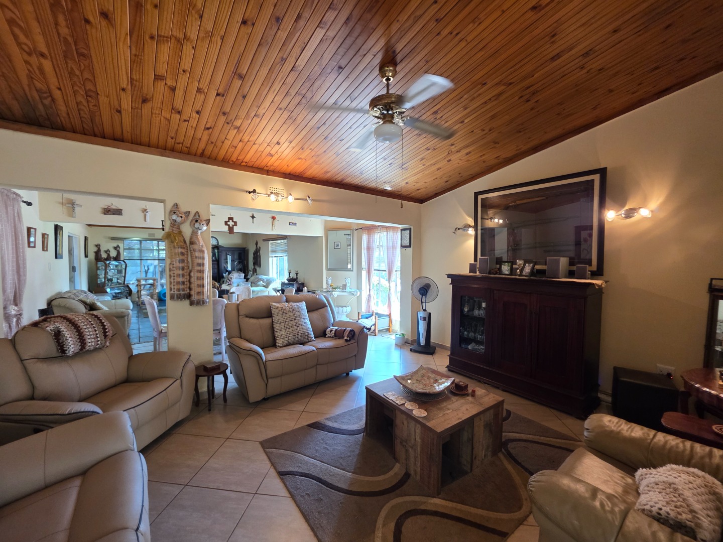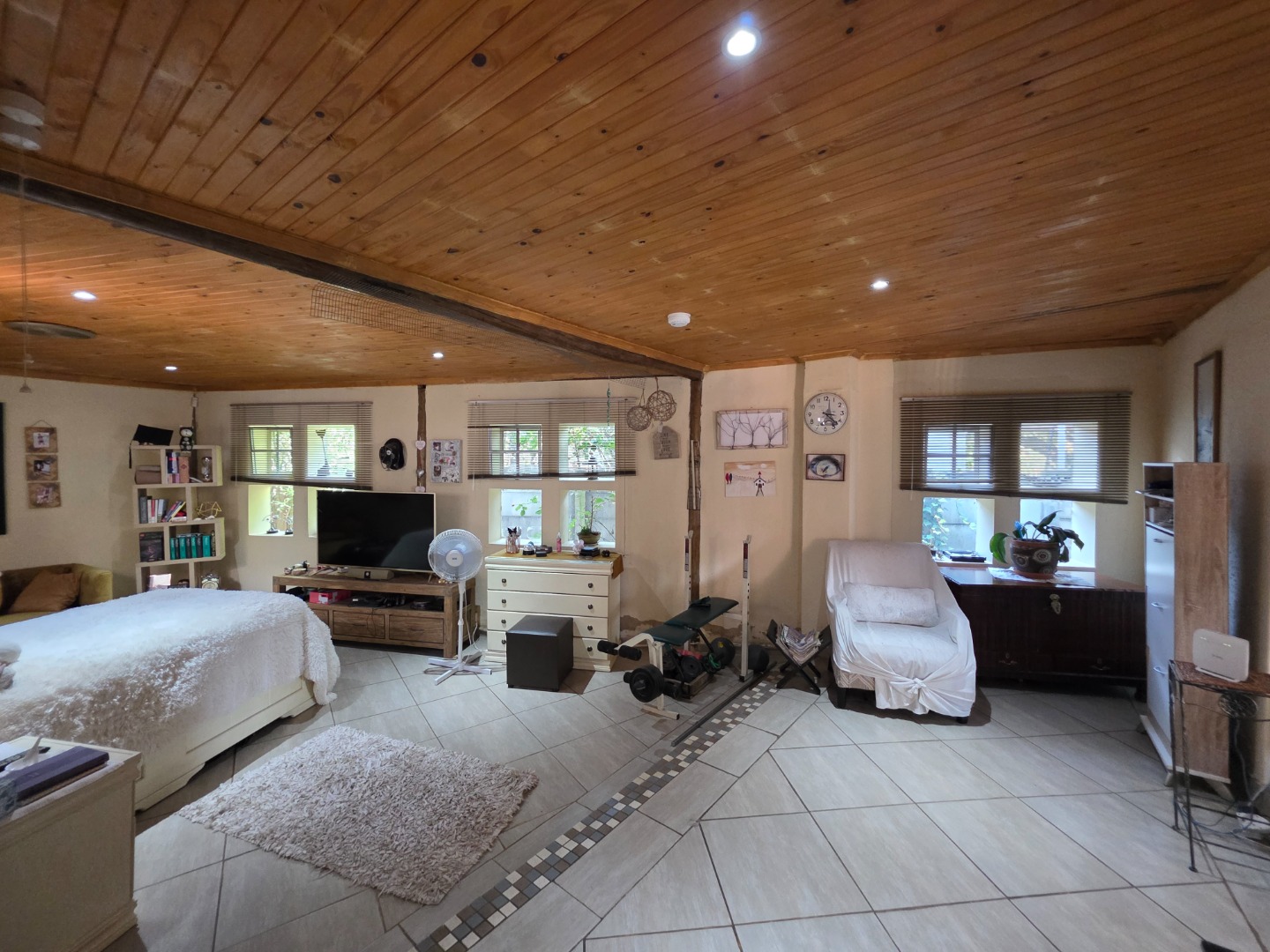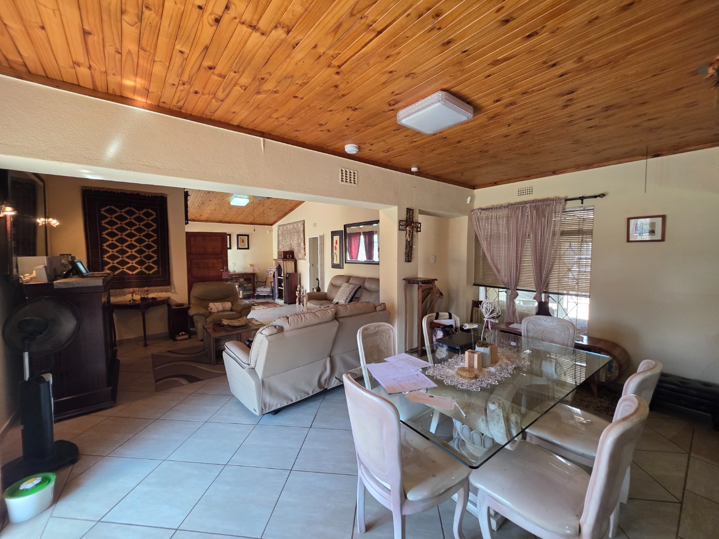 Discover an exquisite suburban sanctuary nestled in the heart of Parkrand, Boksburg, South Africa. This distinguished residence, spanning an impressive 296 square metres on a generous 991 square metre erf, presents an unparalleled opportunity for refined living. The property immediately captivates with its well-maintained exterior, featuring a classic terracotta tile roof and elegant beige walls, framed by mature trees that offer both shade and a sense of serene privacy. The inviting private swimming pool, complemented by a paved patio, sets the stage for sophisticated outdoor entertaining and tranquil relaxation. Step inside to a world of spacious elegance, where two expansive lounges and a dedicated dining room provide ample space for both grand entertaining and intimate family gatherings. The interior boasts a harmonious blend of modern and classic elements, with durable tiled flooring flowing seamlessly throughout. Unique wooden slatted ceilings, adorned with recessed lighting, add a distinctive architectural flair, while the open-plan design fosters a sense of fluidity and connection between living areas. A well-appointed kitchen stands ready to inspire culinary creativity, ensuring every meal is a delight. The residence offers four generously proportioned bedrooms, each designed as a private retreat. The master suite, a true haven, features direct access to a luxurious en-suite bathroom, complete with contemporary grey tiling, a sleek vanity, and a walk-in shower with a curved glass enclosure. Built-in wardrobes with mirrored doors provide abundant storage, while modern wood-look tiled flooring and crown molding elevate the aesthetic. A dedicated study offers a quiet space for work or contemplation, enhancing the home's versatility. Beyond the interiors, the property truly shines with its exceptional outdoor amenities. The private swimming pool is the centrepiece of a meticulously landscaped garden, offering a refreshing escape. A charming lapa and a built-in braai area promise unforgettable al fresco dining experiences. With three garages and an additional six parking spaces, accommodating vehicles is effortless. The inclusion of a flatlet provides flexible living arrangements, ideal for guests, extended family, or potential rental income. Security is paramount, with an alarm system, CCTV surveillance, and robust burglar bars ensuring peace of mind. Modern conveniences include fibre connectivity, catering to all your digital needs. Practical additions such as water tanks and a wendy house for storage further enhance the property's functionality and self-sufficiency. This home is a testament to luxurious living, thoughtfully designed for comfort, style, and security. Parkrand offers a desirable suburban lifestyle within Boksburg, known for its established community and convenient access to local amenities. This prime location combines residential tranquility with urban accessibility, making it an ideal setting for discerning homeowners. Key Features: * 4 Bedrooms, 3 Bathrooms (1 En-suite) * 2 Lounges, 1 Dining Room, 1 Kitchen * Private Swimming Pool & Paved Patio * Lapa & Built-in Braai Area * 3 Garages & 6 Parking Spaces * Dedicated Study & Laundry Room * Alarm System, CCTV, and Burglar Bars * Fibre Connectivity & Water Tanks * Spacious 991 sqm Erf with 296 sqm Floor Size * Includes a Versatile Flatlet
