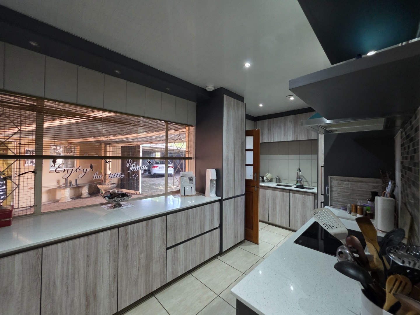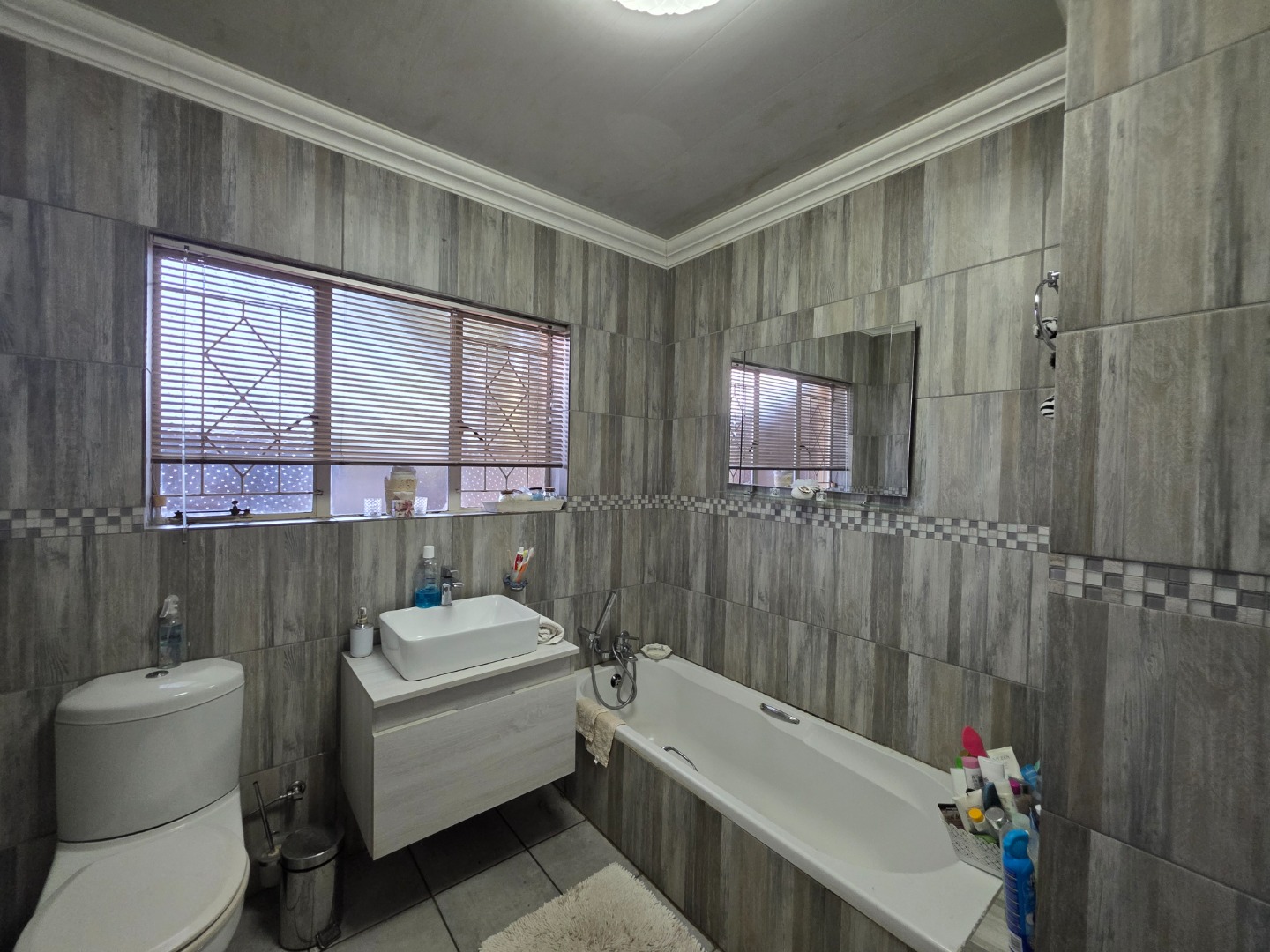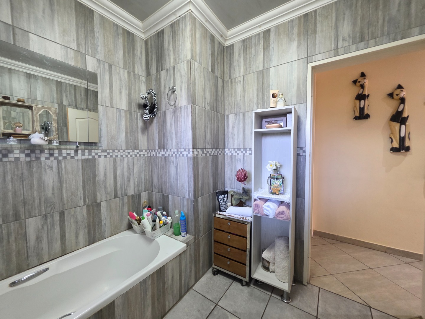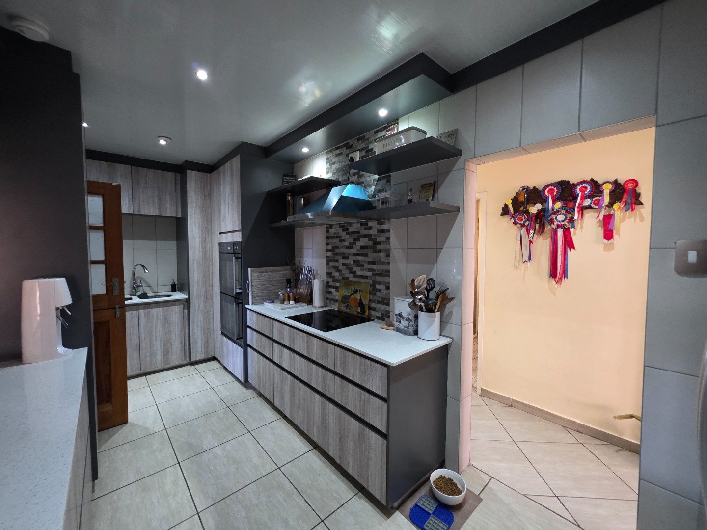 Discover an exquisite suburban sanctuary nestled in the heart of Parkrand, Boksburg, South Africa. This distinguished residence, spanning an impressive 296 square metres on a generous 991 square metre erf, presents an unparalleled opportunity for refined living. The property immediately captivates with its well-maintained exterior, featuring a classic terracotta tile roof and elegant beige walls, framed by mature trees that offer both shade and a sense of serene privacy. The inviting private swimming pool, complemented by a paved patio, sets the stage for sophisticated outdoor entertaining and tranquil relaxation. Step inside to a world of spacious elegance, where two expansive lounges and a dedicated dining room provide ample space for both grand entertaining and intimate family gatherings. The interior boasts a harmonious blend of modern and classic elements, with durable tiled flooring flowing seamlessly throughout. Unique wooden slatted ceilings, adorned with recessed lighting, add a distinctive architectural flair, while the open-plan design fosters a sense of fluidity and connection between living areas. A well-appointed kitchen stands ready to inspire culinary creativity, ensuring every meal is a delight. The residence offers four generously proportioned bedrooms, each designed as a private retreat. The master suite, a true haven, features direct access to a luxurious en-suite bathroom, complete with contemporary grey tiling, a sleek vanity, and a walk-in shower with a curved glass enclosure. Built-in wardrobes with mirrored doors provide abundant storage, while modern wood-look tiled flooring and crown molding elevate the aesthetic. A dedicated study offers a quiet space for work or contemplation, enhancing the home's versatility. Beyond the interiors, the property truly shines with its exceptional outdoor amenities. The private swimming pool is the centrepiece of a meticulously landscaped garden, offering a refreshing escape. A charming lapa and a built-in braai area promise unforgettable al fresco dining experiences. With three garages and an additional six parking spaces, accommodating vehicles is effortless. The inclusion of a flatlet provides flexible living arrangements, ideal for guests, extended family, or potential rental income. Security is paramount, with an alarm system, CCTV surveillance, and robust burglar bars ensuring peace of mind. Modern conveniences include fibre connectivity, catering to all your digital needs. Practical additions such as water tanks and a wendy house for storage further enhance the property's functionality and self-sufficiency. This home is a testament to luxurious living, thoughtfully designed for comfort, style, and security. Parkrand offers a desirable suburban lifestyle within Boksburg, known for its established community and convenient access to local amenities. This prime location combines residential tranquility with urban accessibility, making it an ideal setting for discerning homeowners. Key Features: * 4 Bedrooms, 3 Bathrooms (1 En-suite) * 2 Lounges, 1 Dining Room, 1 Kitchen * Private Swimming Pool & Paved Patio * Lapa & Built-in Braai Area * 3 Garages & 6 Parking Spaces * Dedicated Study & Laundry Room * Alarm System, CCTV, and Burglar Bars * Fibre Connectivity & Water Tanks * Spacious 991 sqm Erf with 296 sqm Floor Size * Includes a Versatile Flatlet