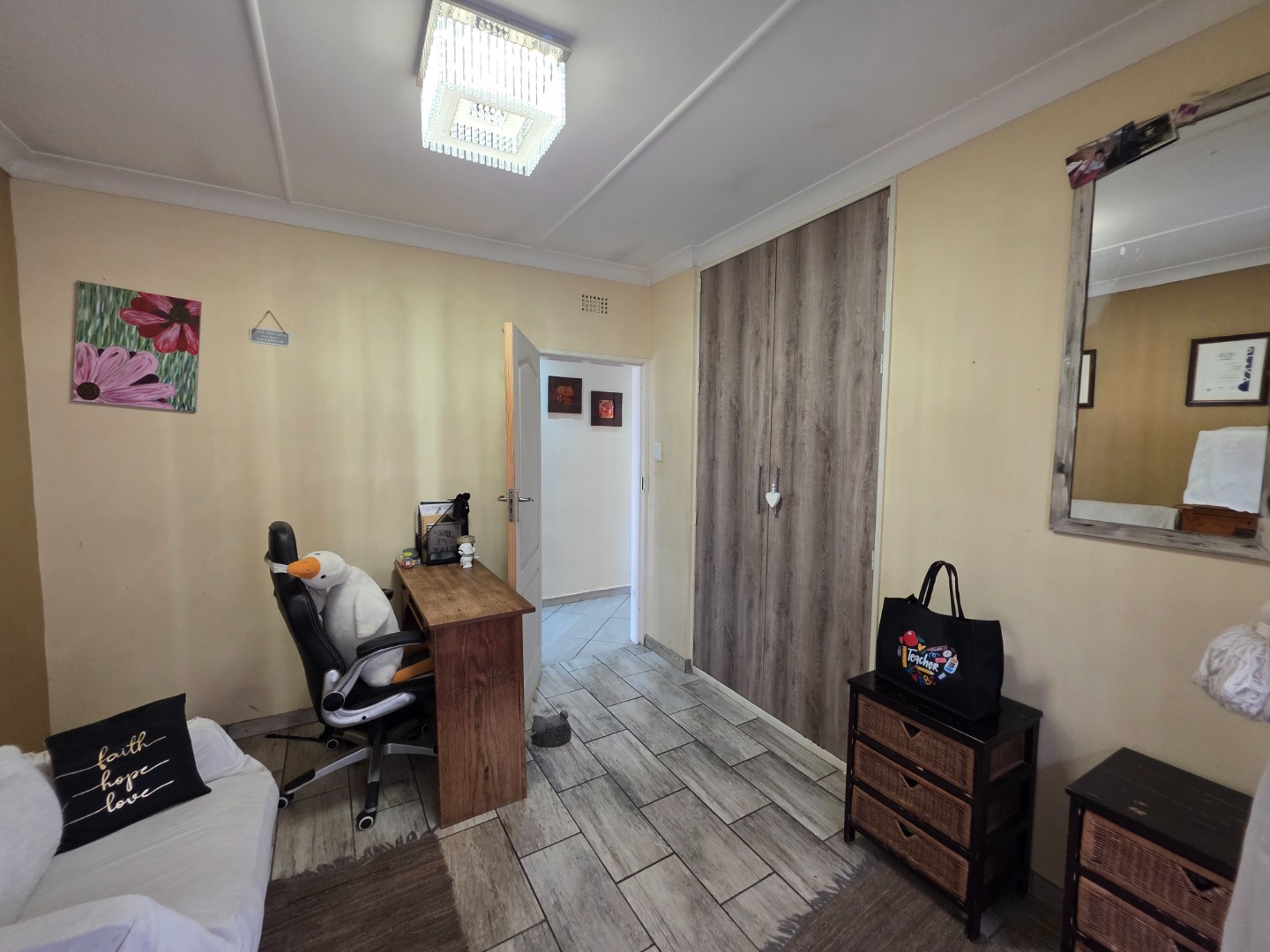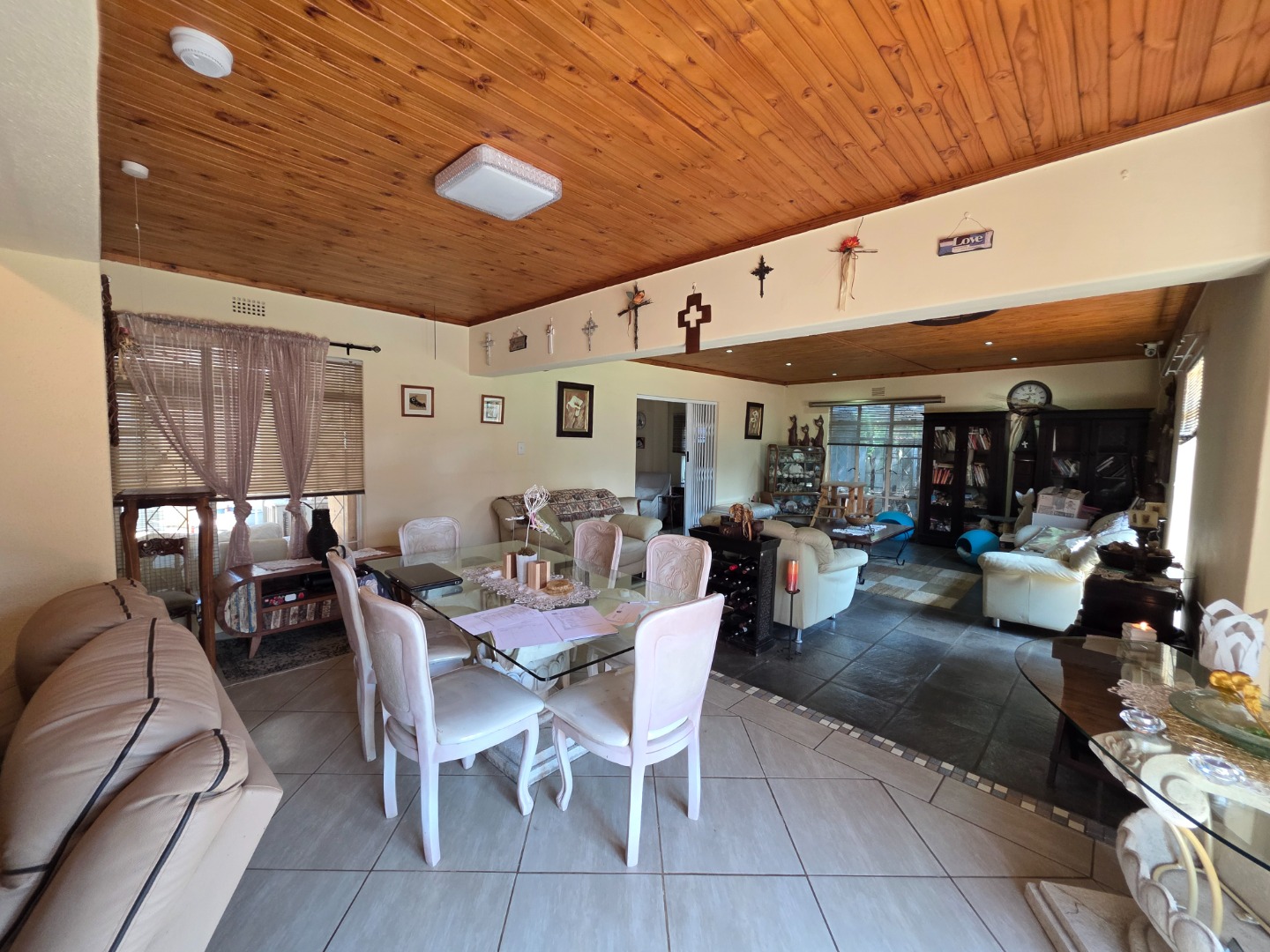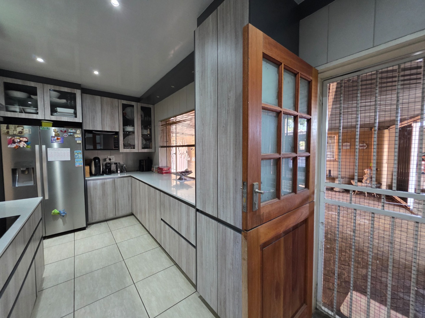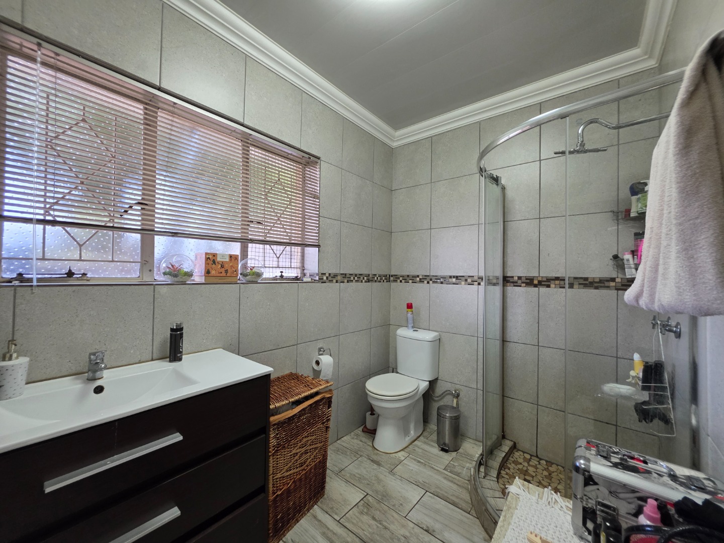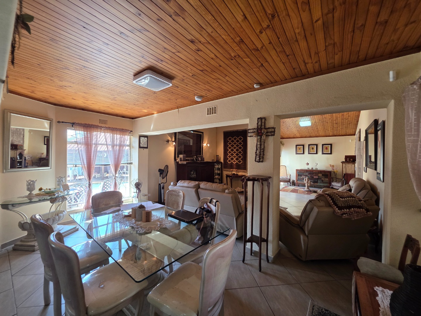 Discover an exquisite suburban sanctuary nestled in the heart of Parkrand, Boksburg, South Africa. This distinguished residence, spanning an impressive 296 square metres on a generous 991 square metre erf, presents an unparalleled opportunity for refined living. The property immediately captivates with its well-maintained exterior, featuring a classic terracotta tile roof and elegant beige walls, framed by mature trees that offer both shade and a sense of serene privacy. The inviting private swimming pool, complemented by a paved patio, sets the stage for sophisticated outdoor entertaining and tranquil relaxation. Step inside to a world of spacious elegance, where two expansive lounges and a dedicated dining room provide ample space for both grand entertaining and intimate family gatherings. The interior boasts a harmonious blend of modern and classic elements, with durable tiled flooring flowing seamlessly throughout. Unique wooden slatted ceilings, adorned with recessed lighting, add a distinctive architectural flair, while the open-plan design fosters a sense of fluidity and connection between living areas. A well-appointed kitchen stands ready to inspire culinary creativity, ensuring every meal is a delight. The residence offers four generously proportioned bedrooms, each designed as a private retreat. The master suite, a true haven, features direct access to a luxurious en-suite bathroom, complete with contemporary grey tiling, a sleek vanity, and a walk-in shower with a curved glass enclosure. Built-in wardrobes with mirrored doors provide abundant storage, while modern wood-look tiled flooring and crown molding elevate the aesthetic. A dedicated study offers a quiet space for work or contemplation, enhancing the home's versatility. Beyond the interiors, the property truly shines with its exceptional outdoor amenities. The private swimming pool is the centrepiece of a meticulously landscaped garden, offering a refreshing escape. A charming lapa and a built-in braai area promise unforgettable al fresco dining experiences. With three garages and an additional six parking spaces, accommodating vehicles is effortless. The inclusion of a flatlet provides flexible living arrangements, ideal for guests, extended family, or potential rental income. Security is paramount, with an alarm system, CCTV surveillance, and robust burglar bars ensuring peace of mind. Modern conveniences include fibre connectivity, catering to all your digital needs. Practical additions such as water tanks and a wendy house for storage further enhance the property's functionality and self-sufficiency. This home is a testament to luxurious living, thoughtfully designed for comfort, style, and security. Parkrand offers a desirable suburban lifestyle within Boksburg, known for its established community and convenient access to local amenities. This prime location combines residential tranquility with urban accessibility, making it an ideal setting for discerning homeowners. Key Features: * 4 Bedrooms, 3 Bathrooms (1 En-suite) * 2 Lounges, 1 Dining Room, 1 Kitchen * Private Swimming Pool & Paved Patio * Lapa & Built-in Braai Area * 3 Garages & 6 Parking Spaces * Dedicated Study & Laundry Room * Alarm System, CCTV, and Burglar Bars * Fibre Connectivity & Water Tanks * Spacious 991 sqm Erf with 296 sqm Floor Size * Includes a Versatile Flatlet