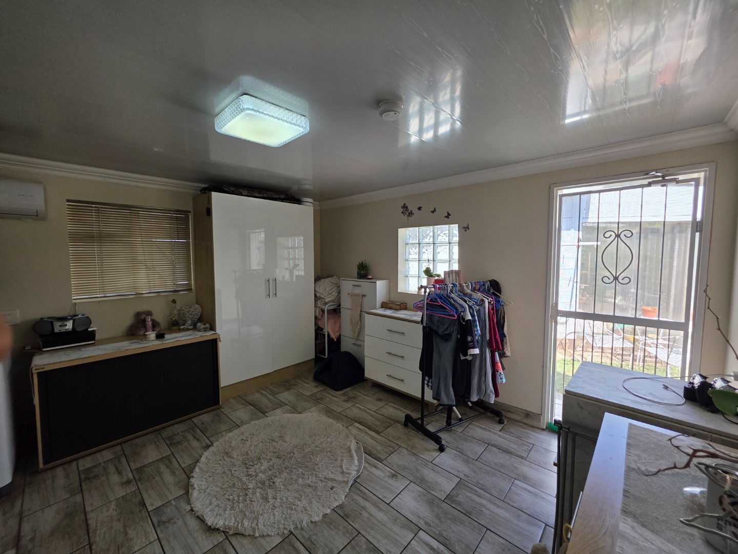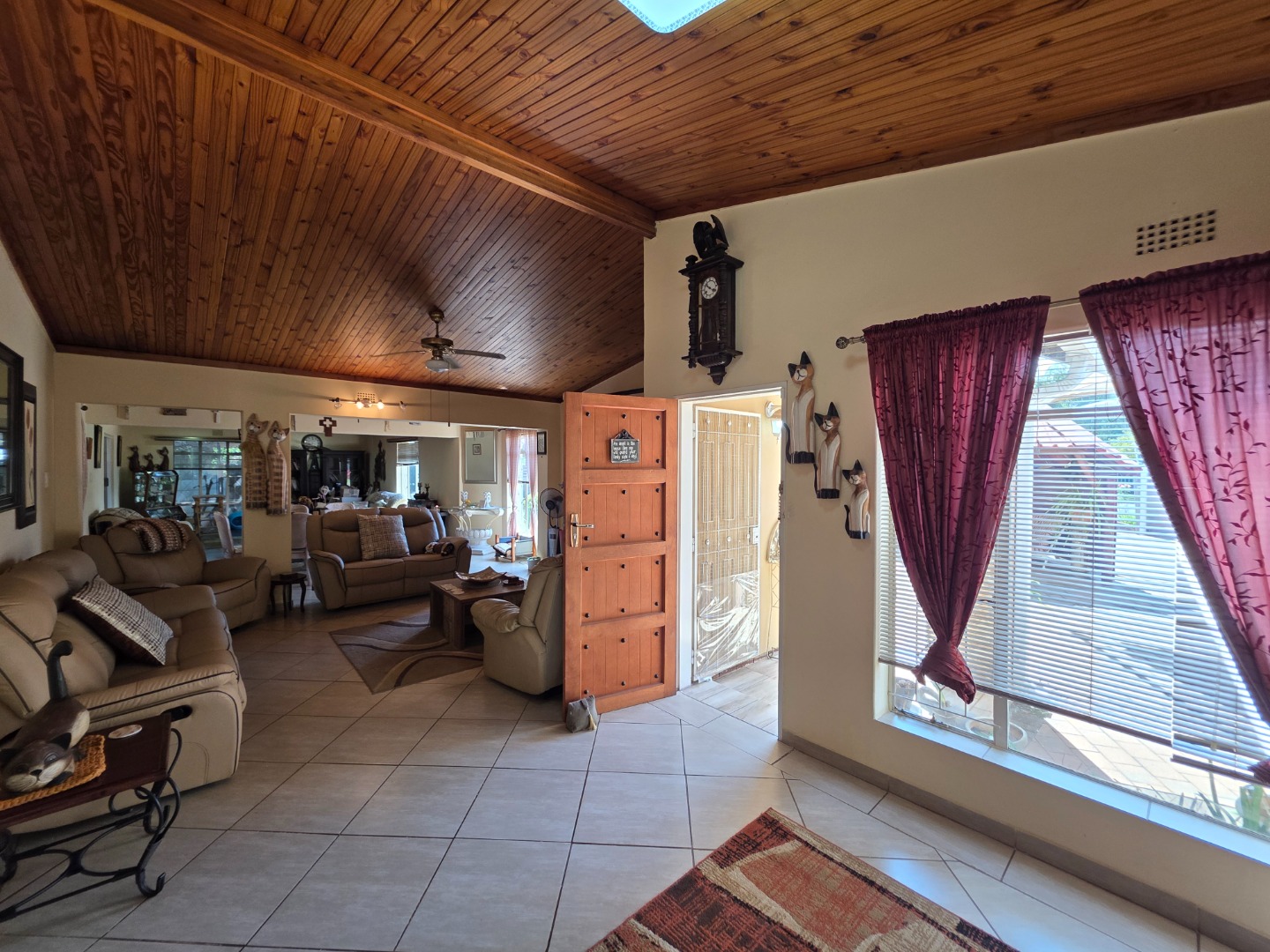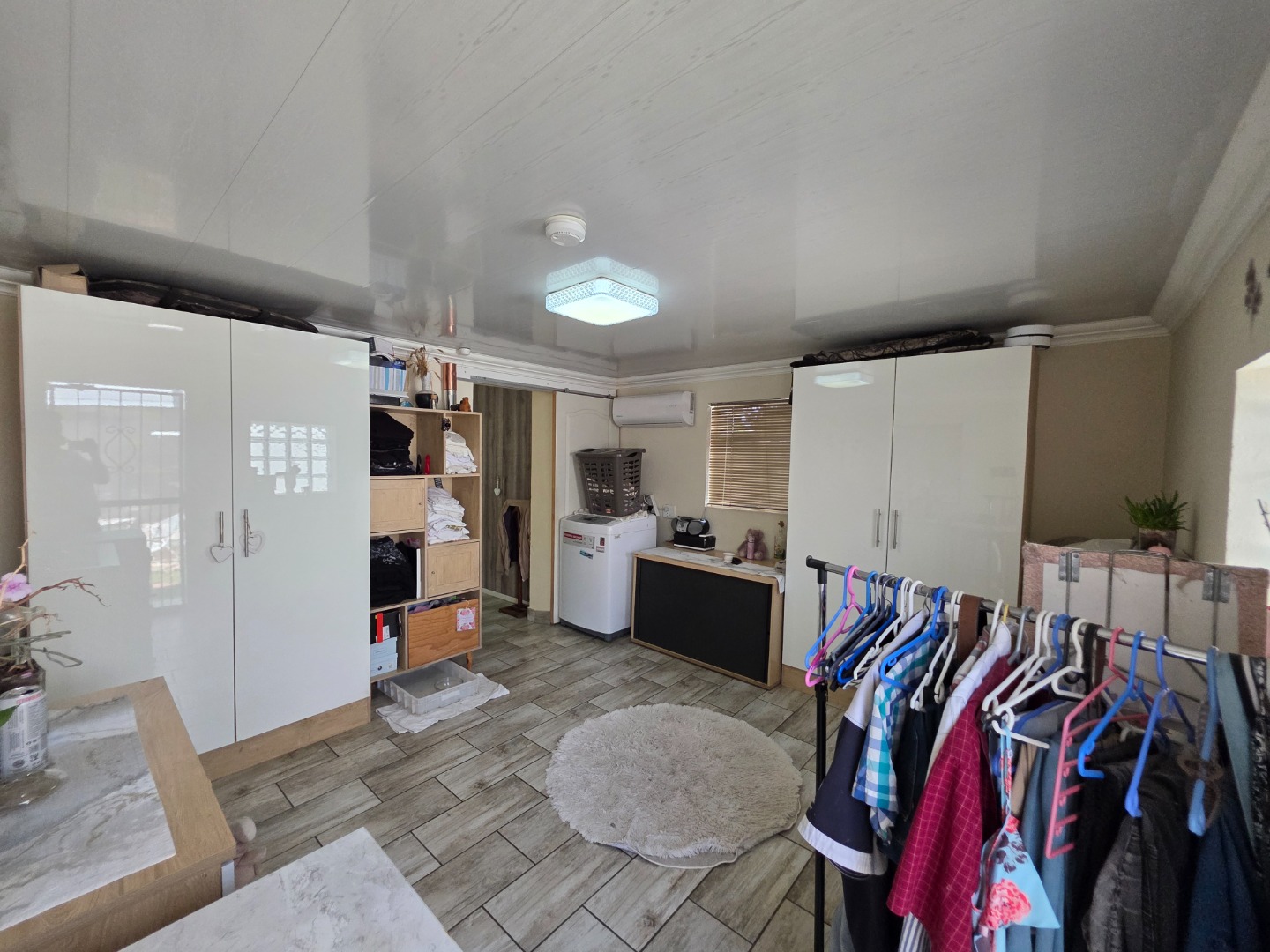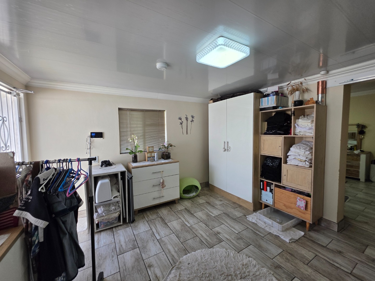 Discover an exquisite suburban sanctuary nestled in the heart of Parkrand, Boksburg, South Africa. This distinguished residence, spanning an impressive 296 square metres on a generous 991 square metre erf, presents an unparalleled opportunity for refined living. The property immediately captivates with its well-maintained exterior, featuring a classic terracotta tile roof and elegant beige walls, framed by mature trees that offer both shade and a sense of serene privacy. The inviting private swimming pool, complemented by a paved patio, sets the stage for sophisticated outdoor entertaining and tranquil relaxation. Step inside to a world of spacious elegance, where two expansive lounges and a dedicated dining room provide ample space for both grand entertaining and intimate family gatherings. The interior boasts a harmonious blend of modern and classic elements, with durable tiled flooring flowing seamlessly throughout. Unique wooden slatted ceilings, adorned with recessed lighting, add a distinctive architectural flair, while the open-plan design fosters a sense of fluidity and connection between living areas. A well-appointed kitchen stands ready to inspire culinary creativity, ensuring every meal is a delight. The residence offers four generously proportioned bedrooms, each designed as a private retreat. The master suite, a true haven, features direct access to a luxurious en-suite bathroom, complete with contemporary grey tiling, a sleek vanity, and a walk-in shower with a curved glass enclosure. Built-in wardrobes with mirrored doors provide abundant storage, while modern wood-look tiled flooring and crown molding elevate the aesthetic. A dedicated study offers a quiet space for work or contemplation, enhancing the home's versatility. Beyond the interiors, the property truly shines with its exceptional outdoor amenities. The private swimming pool is the centrepiece of a meticulously landscaped garden, offering a refreshing escape. A charming lapa and a built-in braai area promise unforgettable al fresco dining experiences. With three garages and an additional six parking spaces, accommodating vehicles is effortless. The inclusion of a flatlet provides flexible living arrangements, ideal for guests, extended family, or potential rental income. Security is paramount, with an alarm system, CCTV surveillance, and robust burglar bars ensuring peace of mind. Modern conveniences include fibre connectivity, catering to all your digital needs. Practical additions such as water tanks and a wendy house for storage further enhance the property's functionality and self-sufficiency. This home is a testament to luxurious living, thoughtfully designed for comfort, style, and security. Parkrand offers a desirable suburban lifestyle within Boksburg, known for its established community and convenient access to local amenities. This prime location combines residential tranquility with urban accessibility, making it an ideal setting for discerning homeowners. Key Features: * 4 Bedrooms, 3 Bathrooms (1 En-suite) * 2 Lounges, 1 Dining Room, 1 Kitchen * Private Swimming Pool & Paved Patio * Lapa & Built-in Braai Area * 3 Garages & 6 Parking Spaces * Dedicated Study & Laundry Room * Alarm System, CCTV, and Burglar Bars * Fibre Connectivity & Water Tanks * Spacious 991 sqm Erf with 296 sqm Floor Size * Includes a Versatile Flatlet