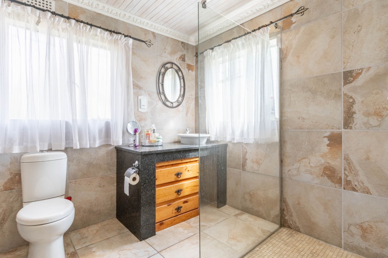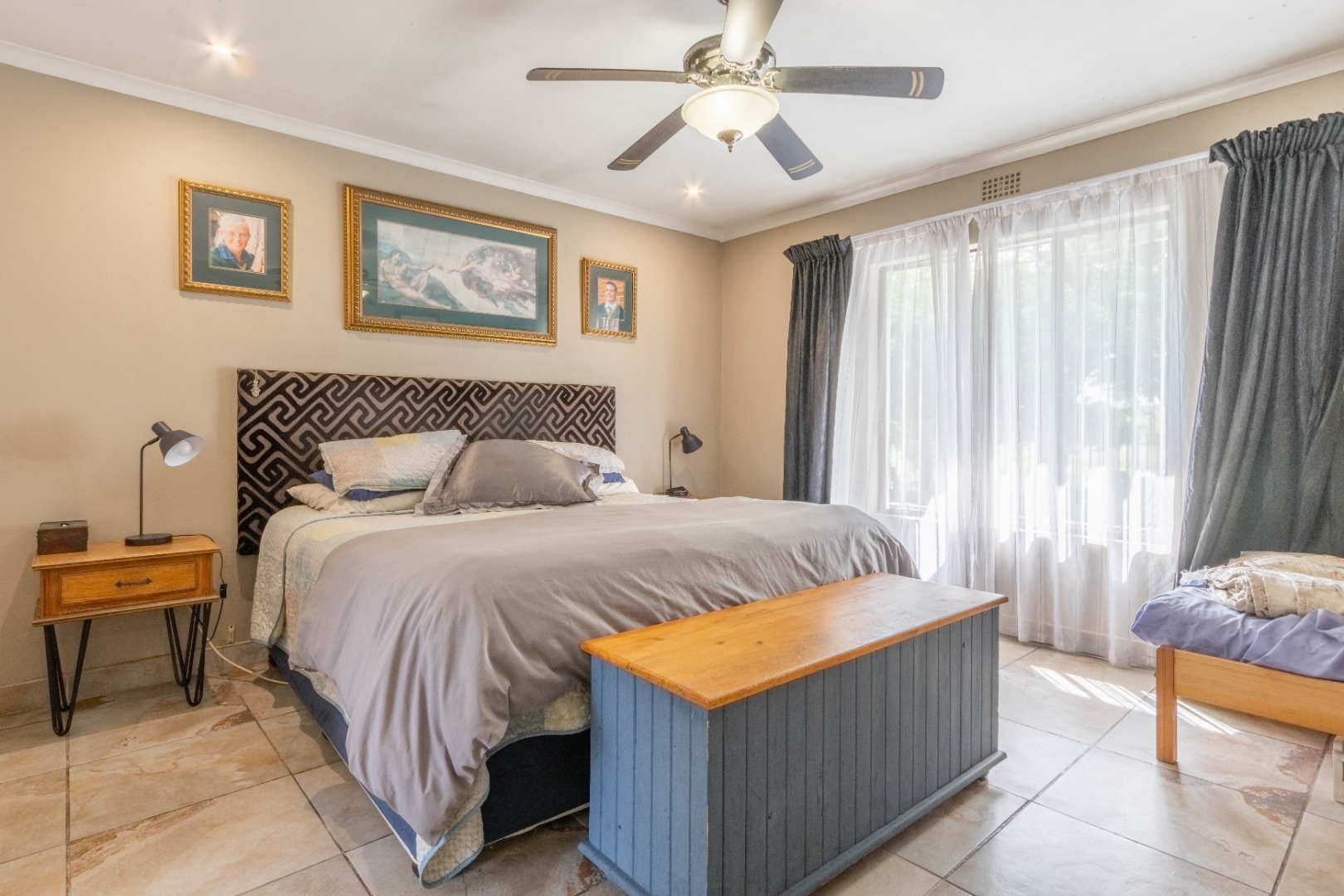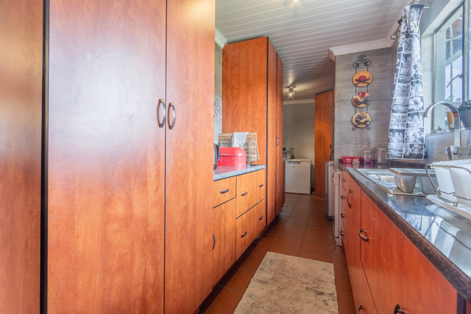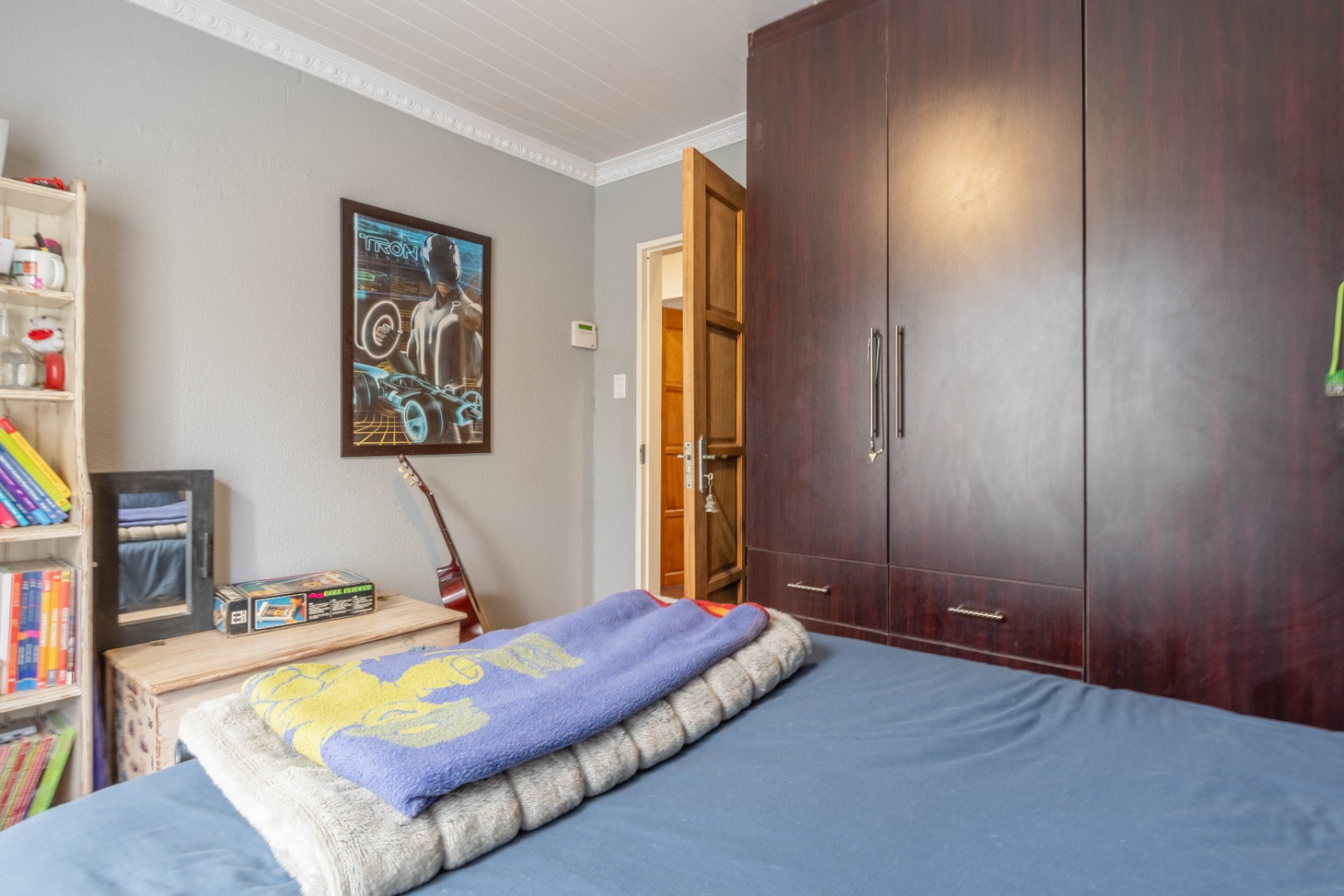 Outside, the expansive erf features a refreshing swimming pool and a well-maintained garden, perfect for outdoor enjoyment and pets. A paved driveway leads to a double garage and additional parking for two vehicles, ensuring ample space for residents and guests. The property presents a welcoming facade, offering a solid foundation for a family seeking space and comfort.