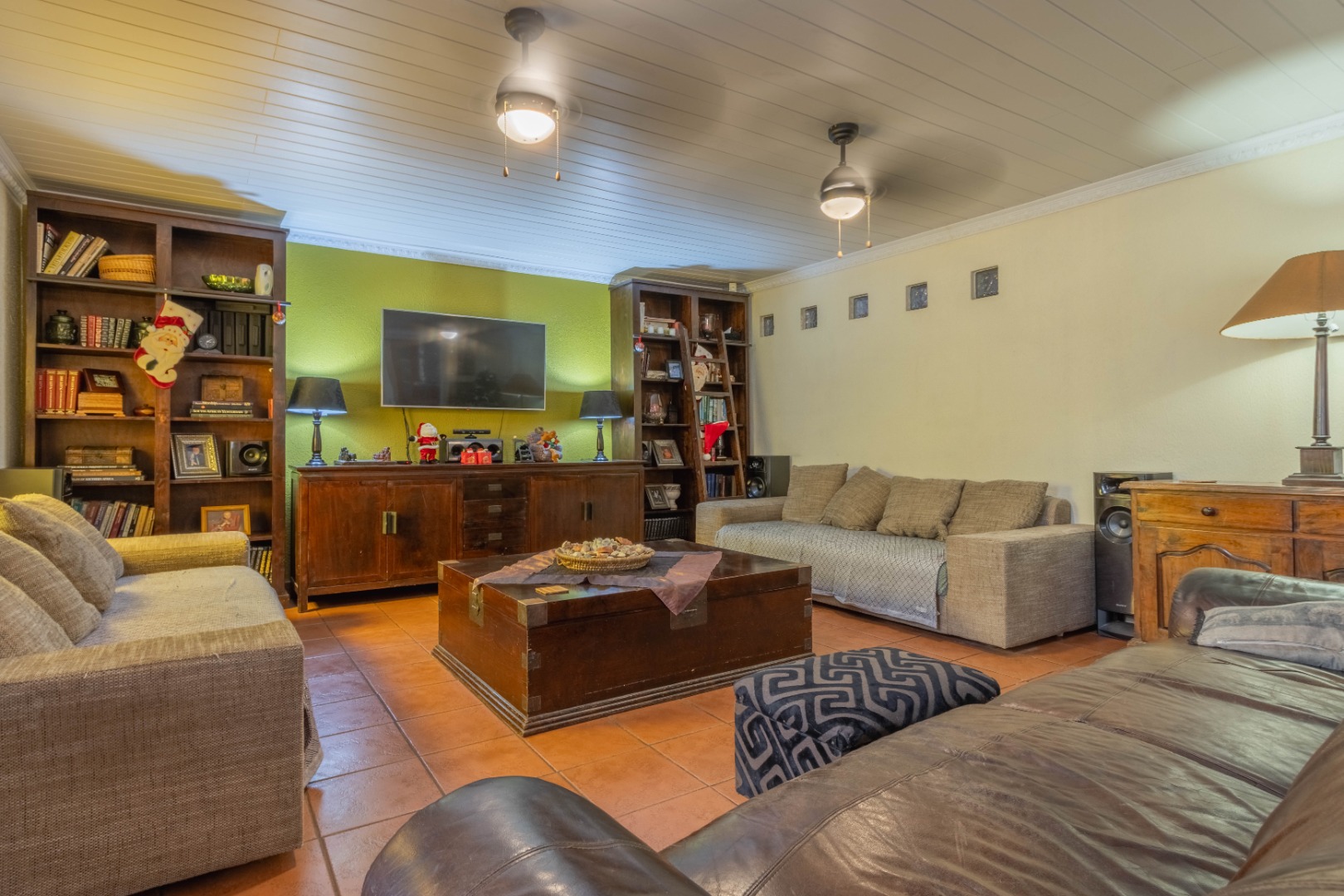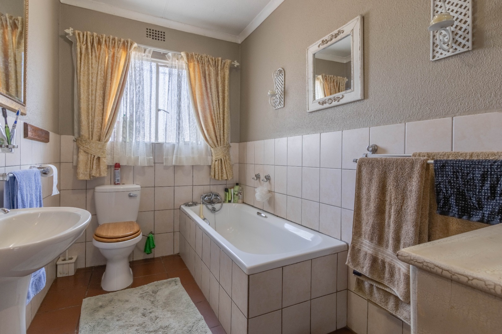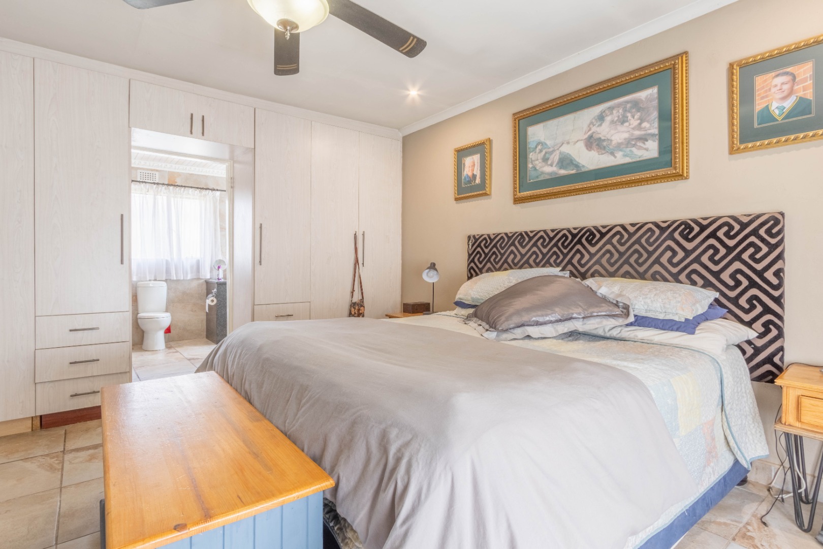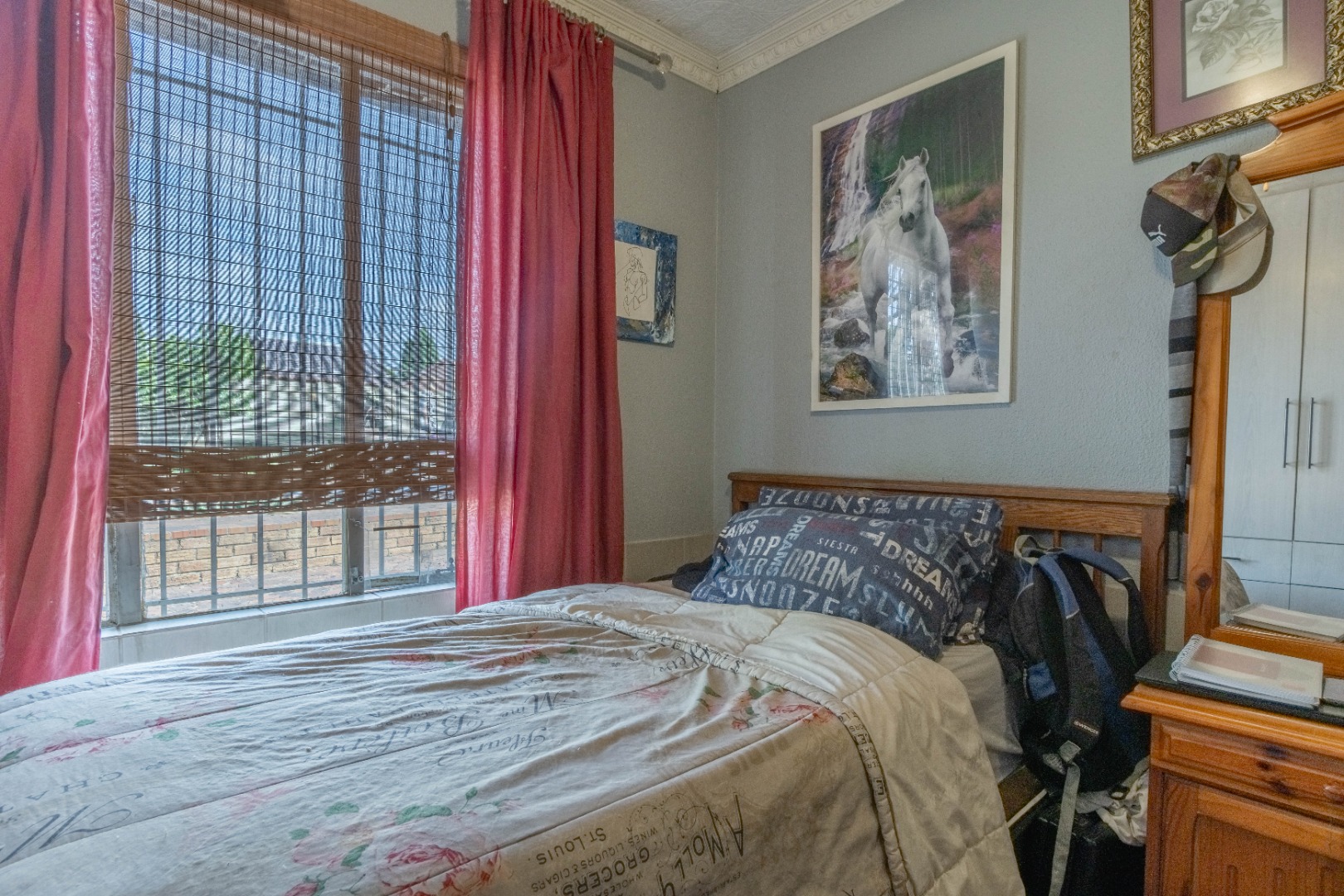 Outside, the expansive erf features a refreshing swimming pool and a well-maintained garden, perfect for outdoor enjoyment and pets. A paved driveway leads to a double garage and additional parking for two vehicles, ensuring ample space for residents and guests. The property presents a welcoming facade, offering a solid foundation for a family seeking space and comfort.