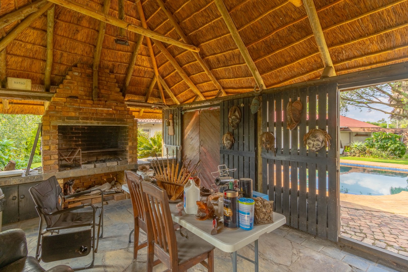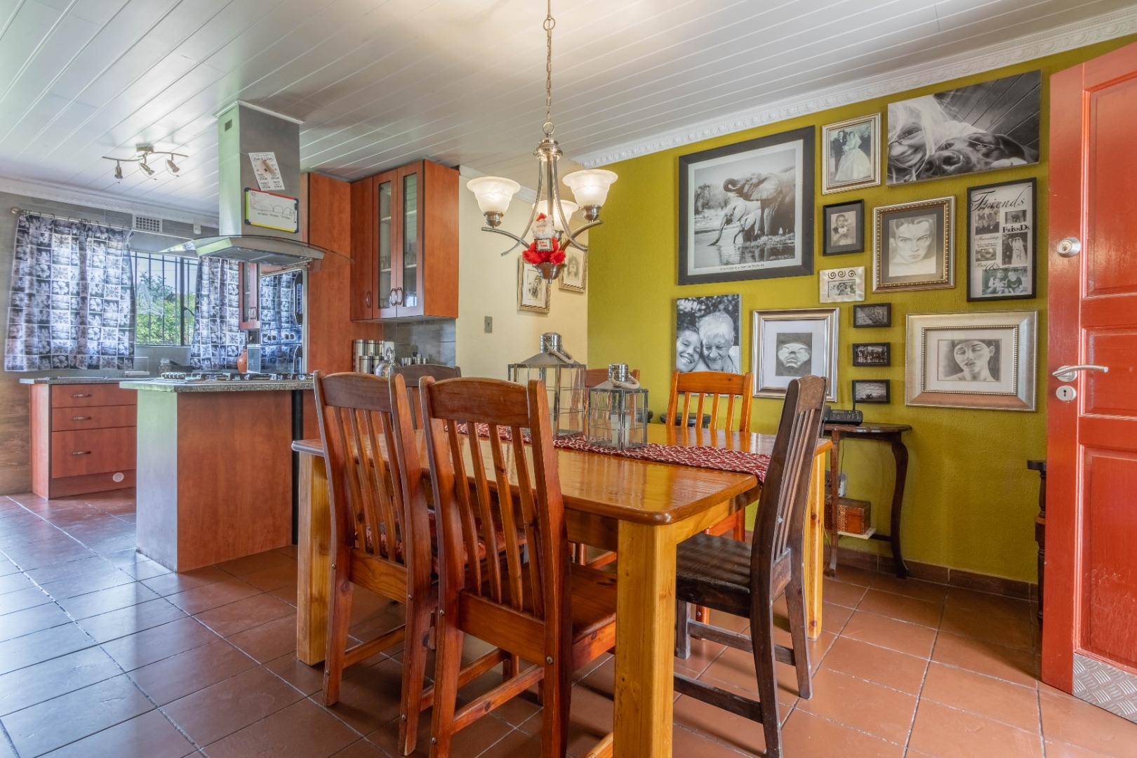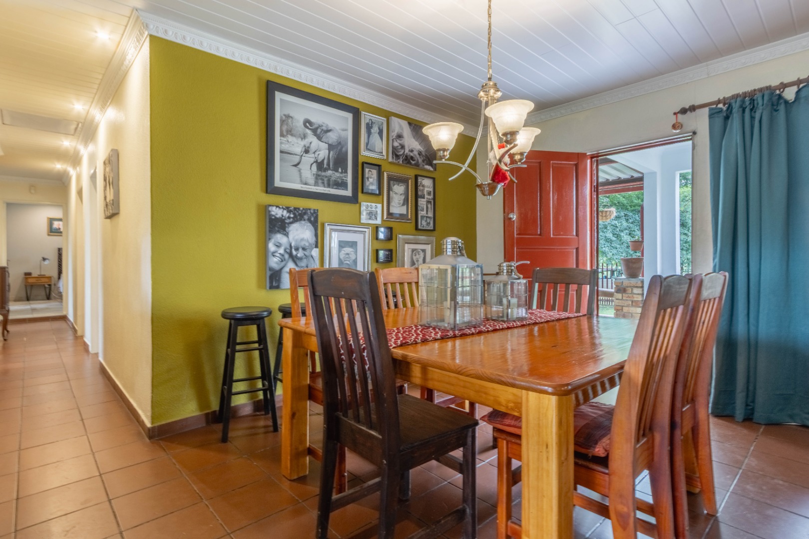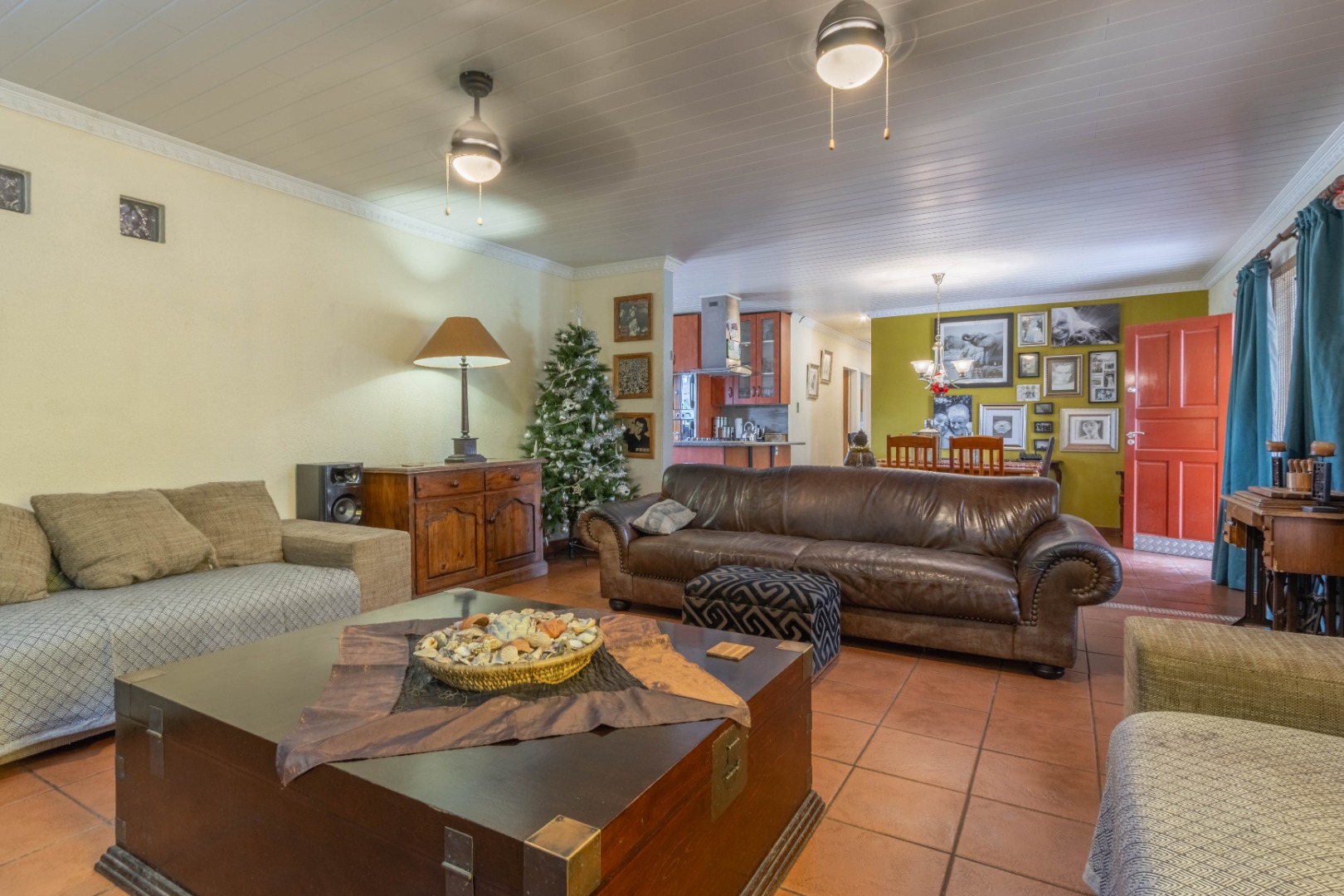 Outside, the expansive erf features a refreshing swimming pool and a well-maintained garden, perfect for outdoor enjoyment and pets. A paved driveway leads to a double garage and additional parking for two vehicles, ensuring ample space for residents and guests. The property presents a welcoming facade, offering a solid foundation for a family seeking space and comfort.