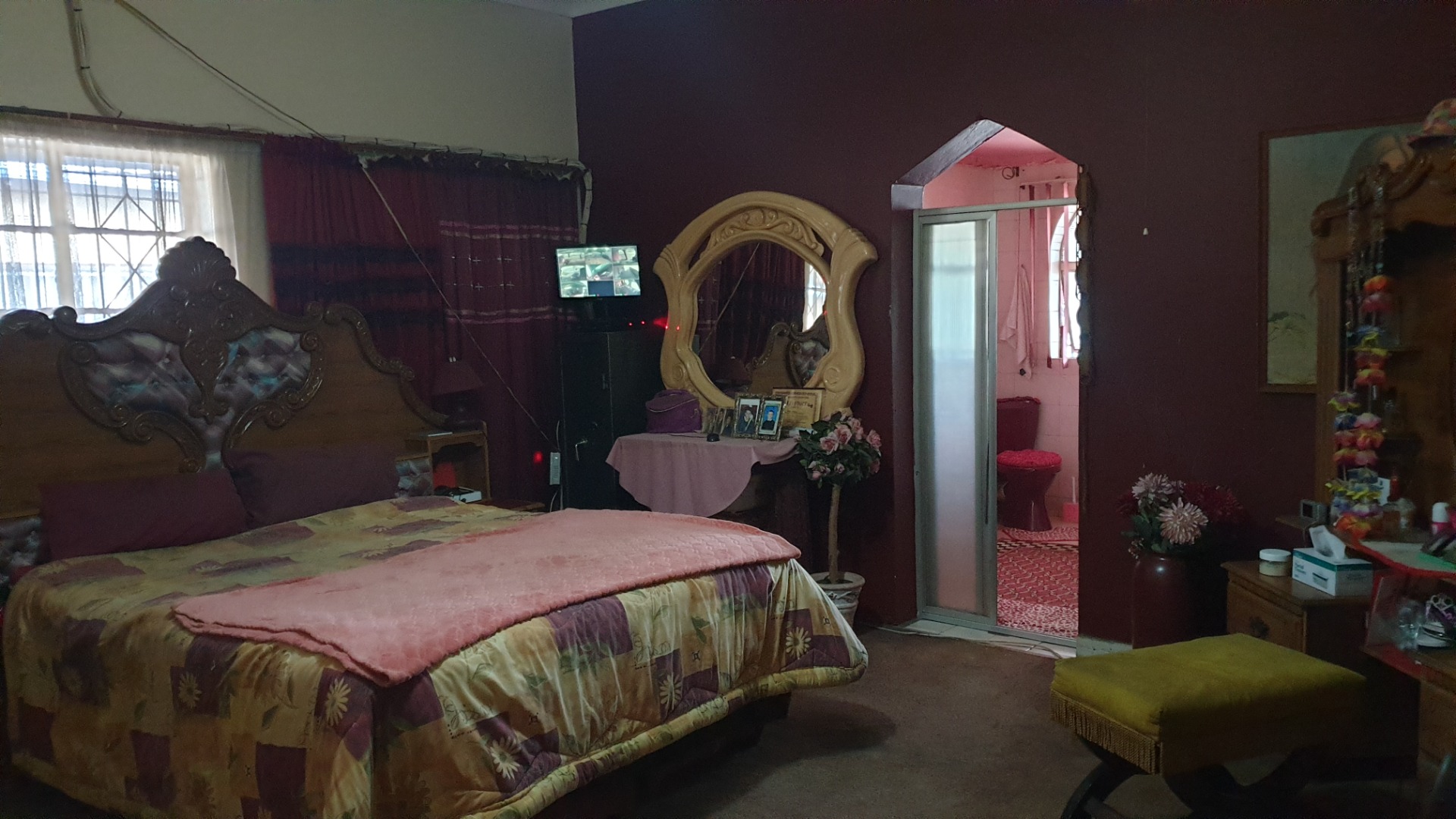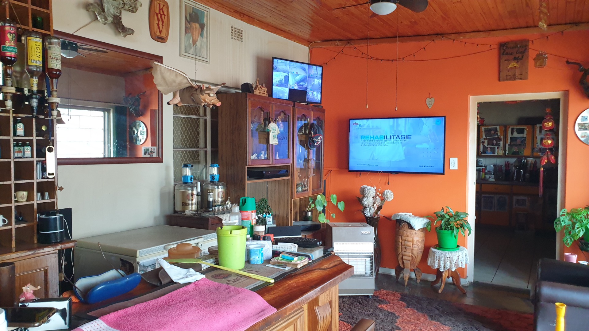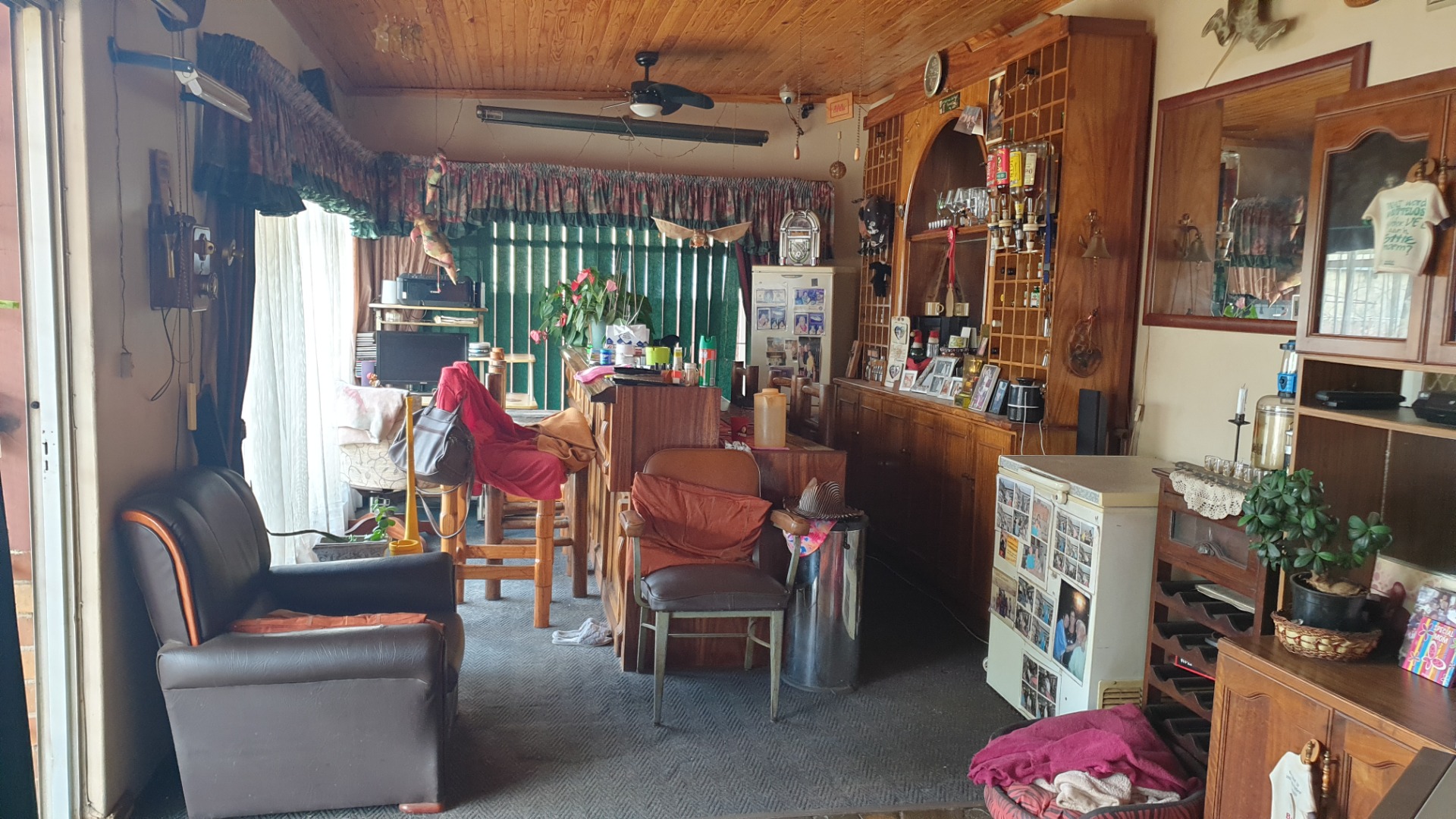 Large bar area , with large wooden bar to stay plus tv room .