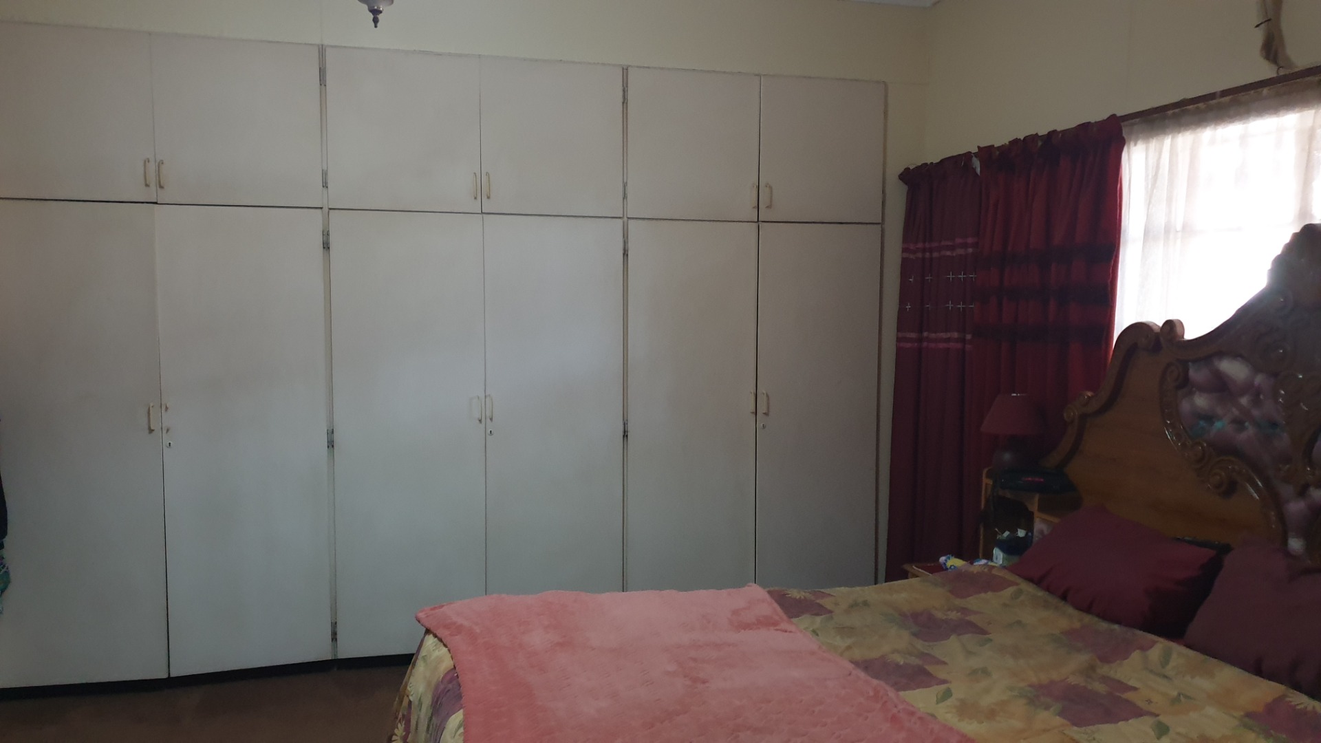 Three bedrooms with build in cupboards , one with en-suite bathrooms .