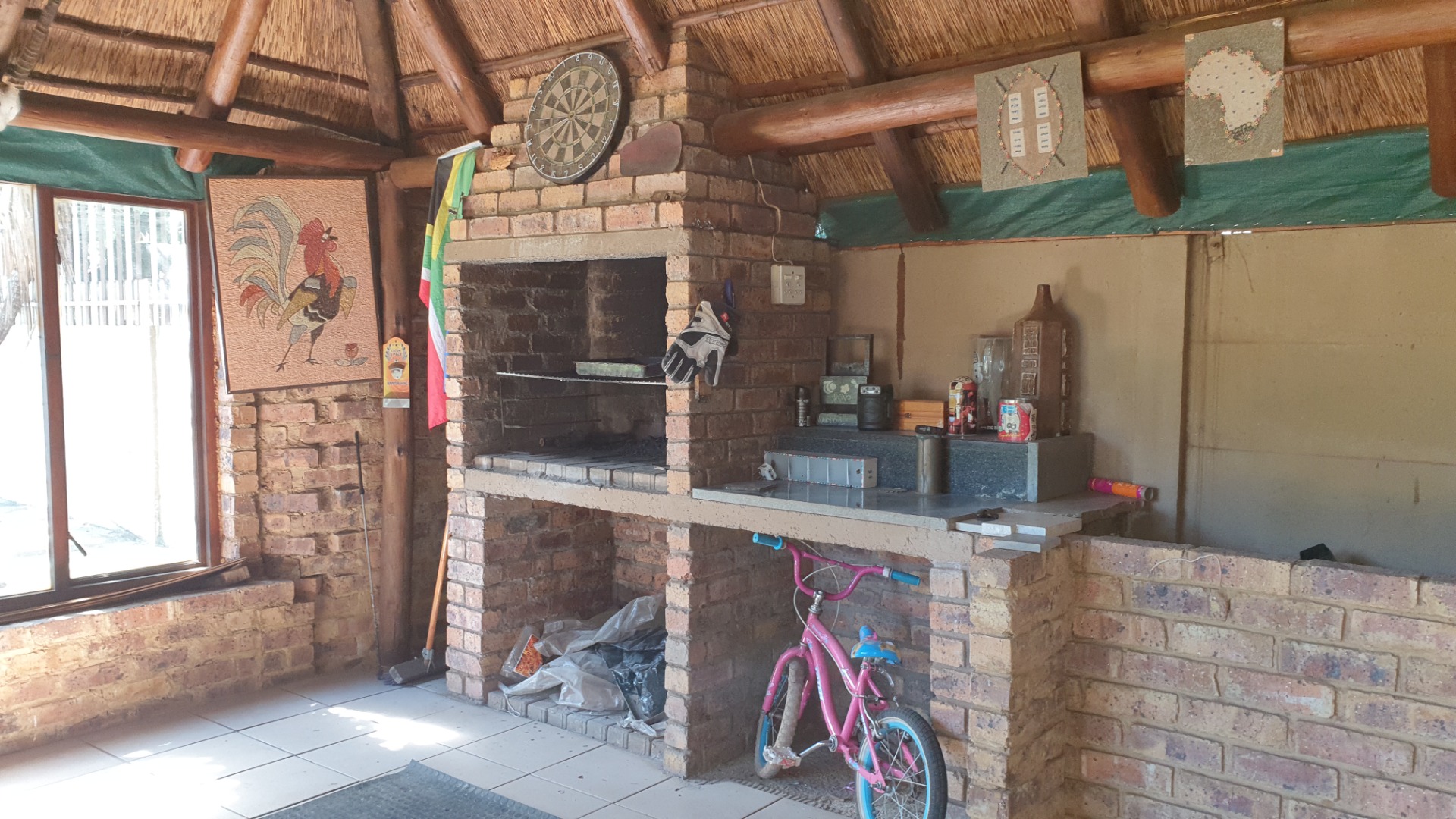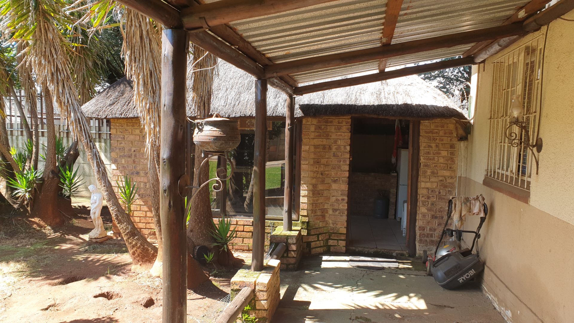 Thatch lapa with build in braai .
