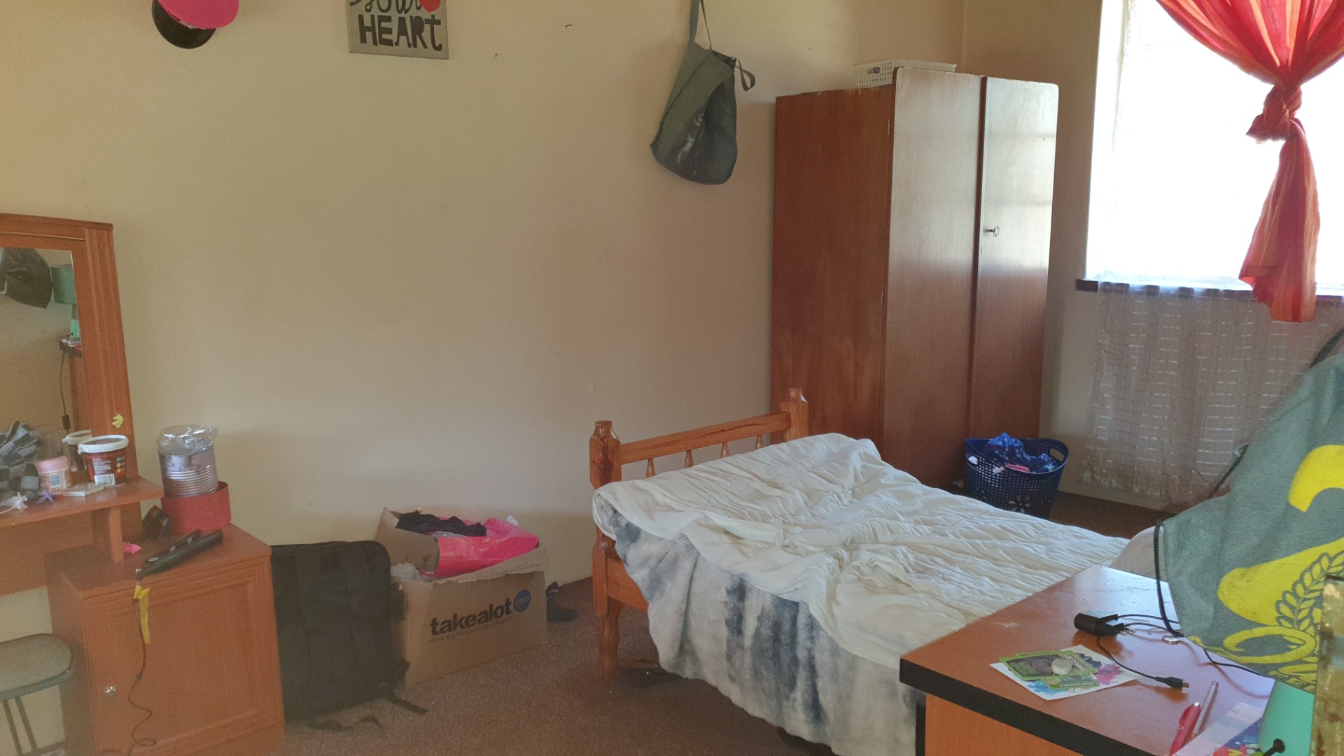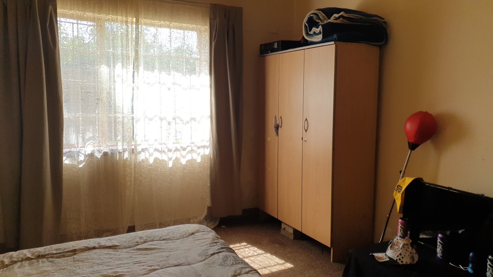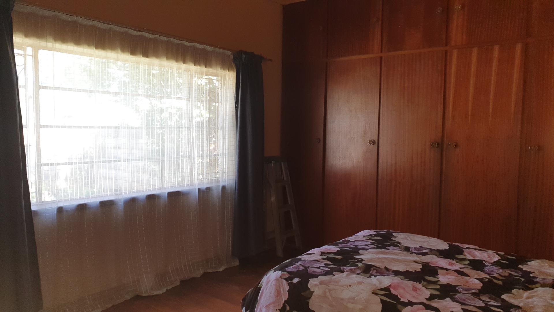 Three bedrooms , main with build in cupboards .