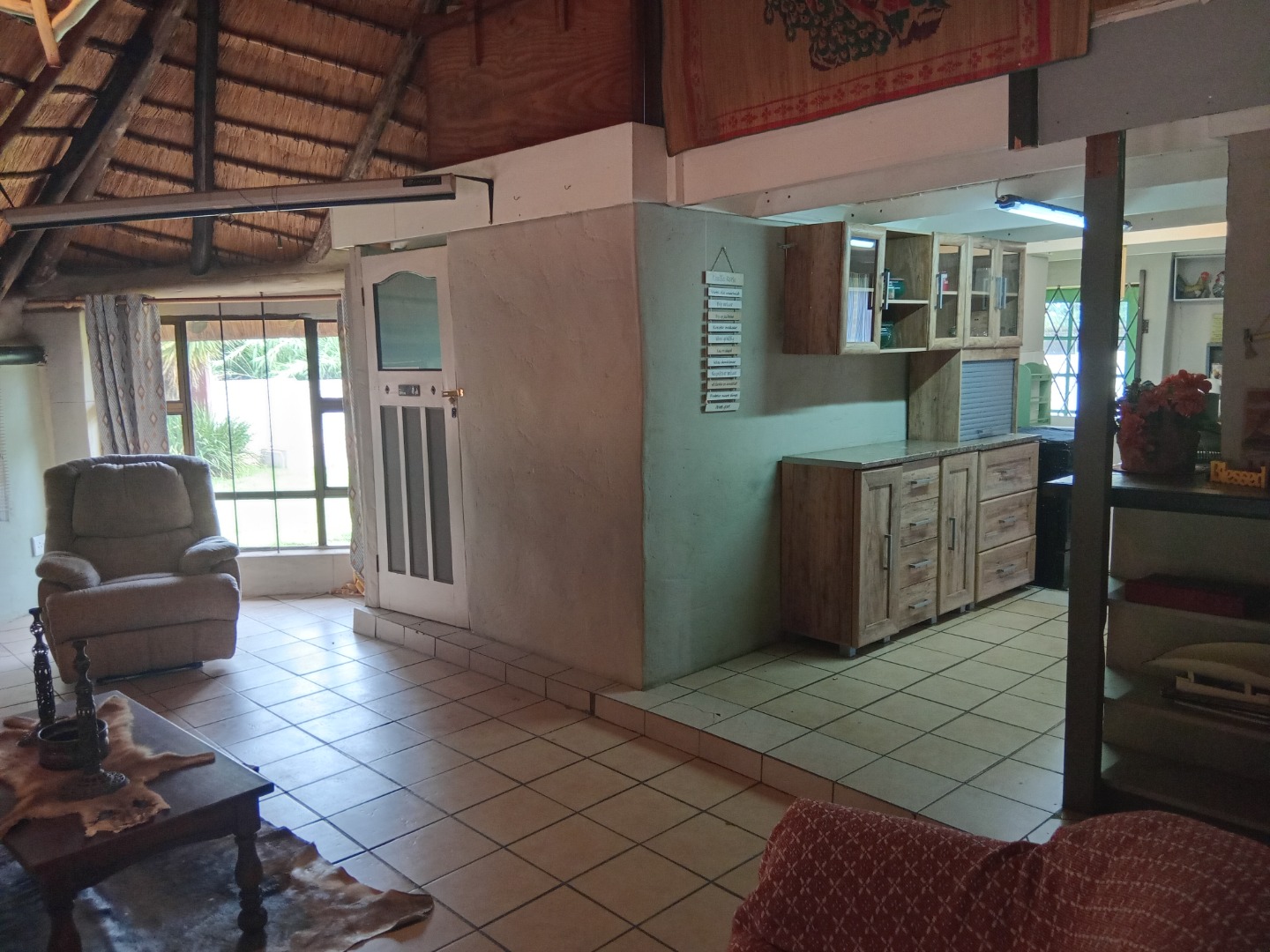 3 bedrooms, 2 bathrooms, open plan lounge, dining room and kitchen, scullery, solar power and gas geyser, laundry room and under cover patio