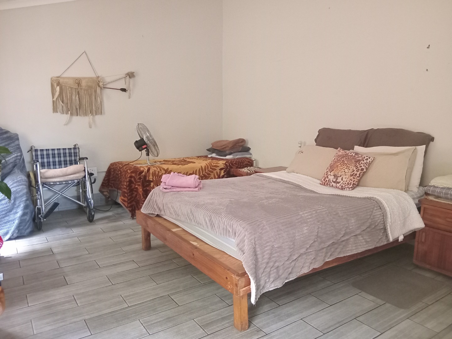 2 bedrooms with bathroom, separate toilet and open plan lounge, dining room and kitchen and solar power, patio.