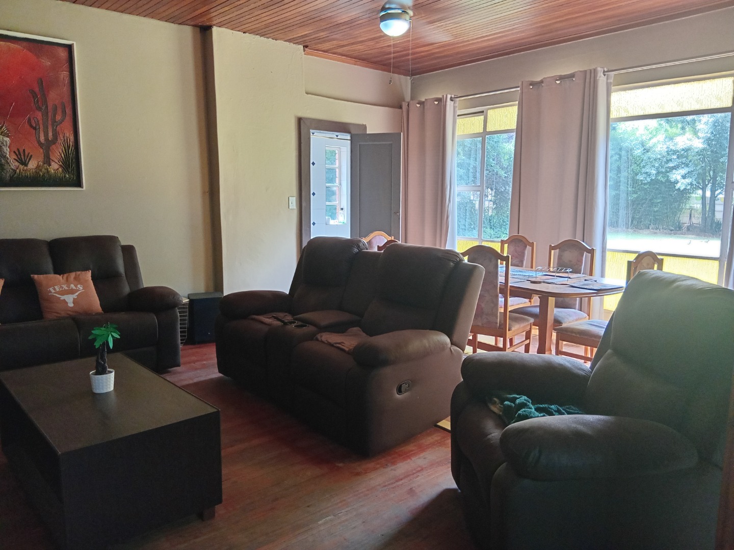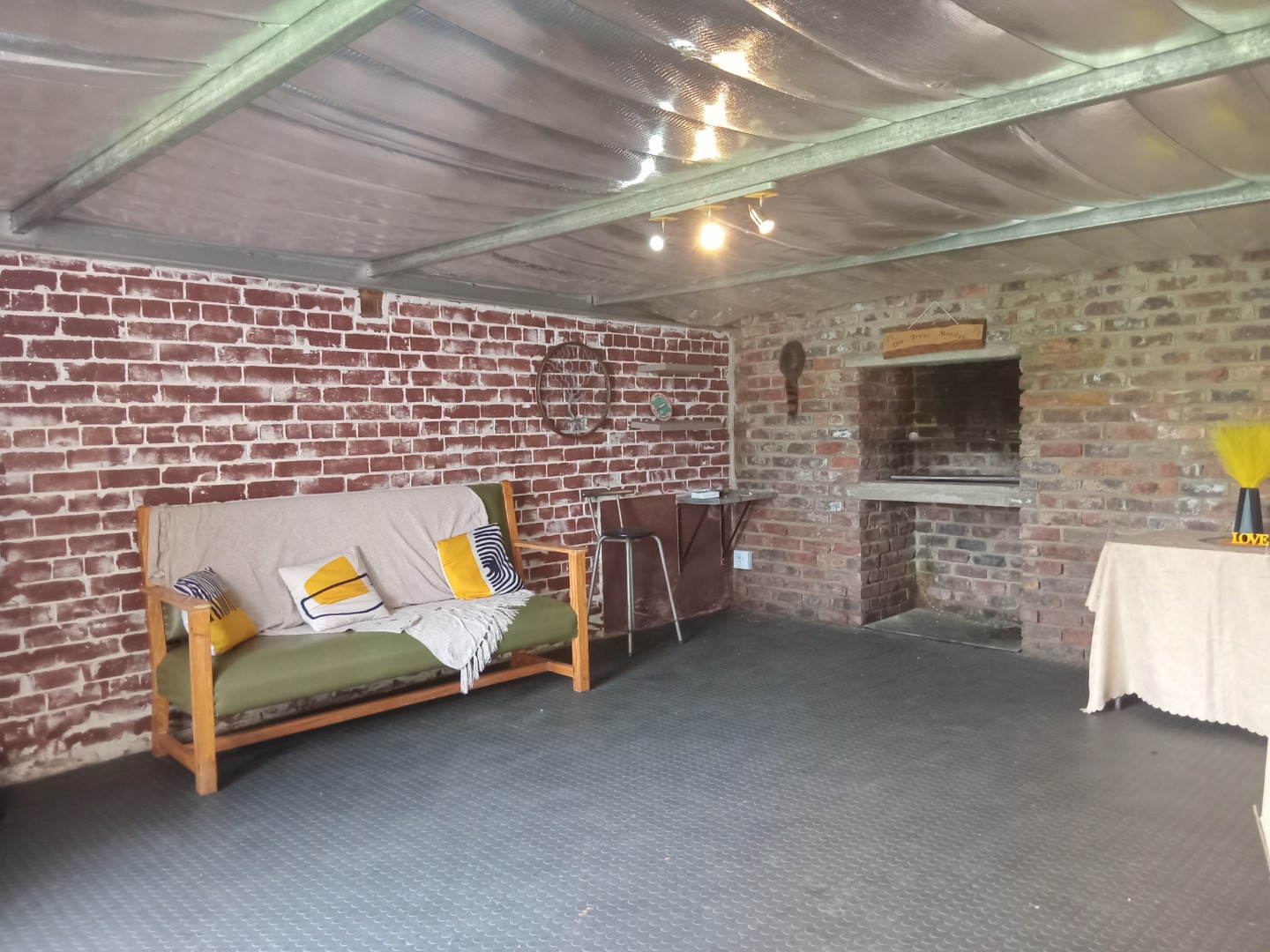 1-3 bedroom (depending on your needs or creativity), bathroom, kitchen, lounge, dining room and braai facility, gas geyser.