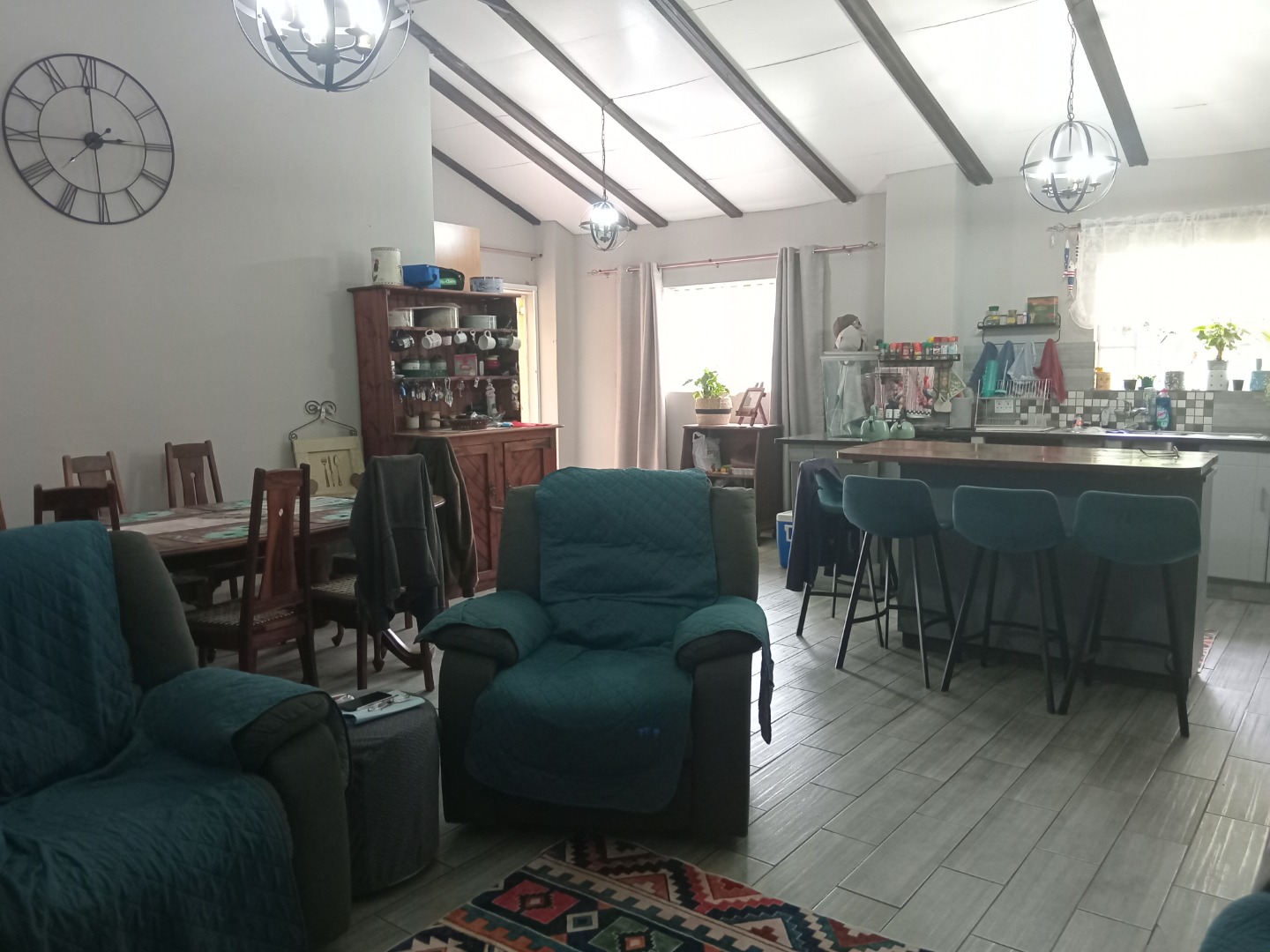 3 bedrooms, 2 bathrooms, open plan lounge, dining room and kitchen, scullery, solar power and gas geyser, laundry room and under cover patio