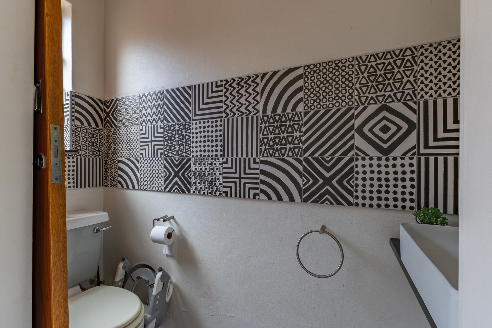 Boasting a floor size of 123 sqm, this home features an open-plan layout with modern tiled flooring and stylish finishes, creating a bright and spacious atmosphere across the lounge and dining areas. The kitchen, while offering functional space, presents an opportunity for personalization, complemented by a convenient pass-through to the living area. The property includes a guest toilet with contemporary geometric tiling.