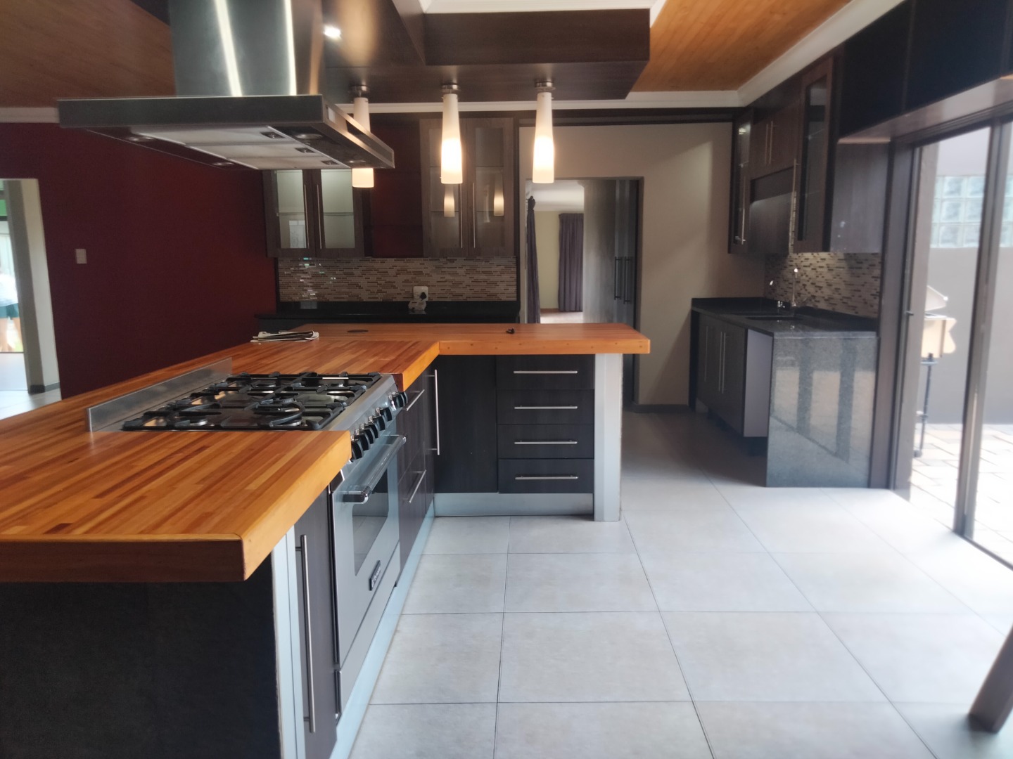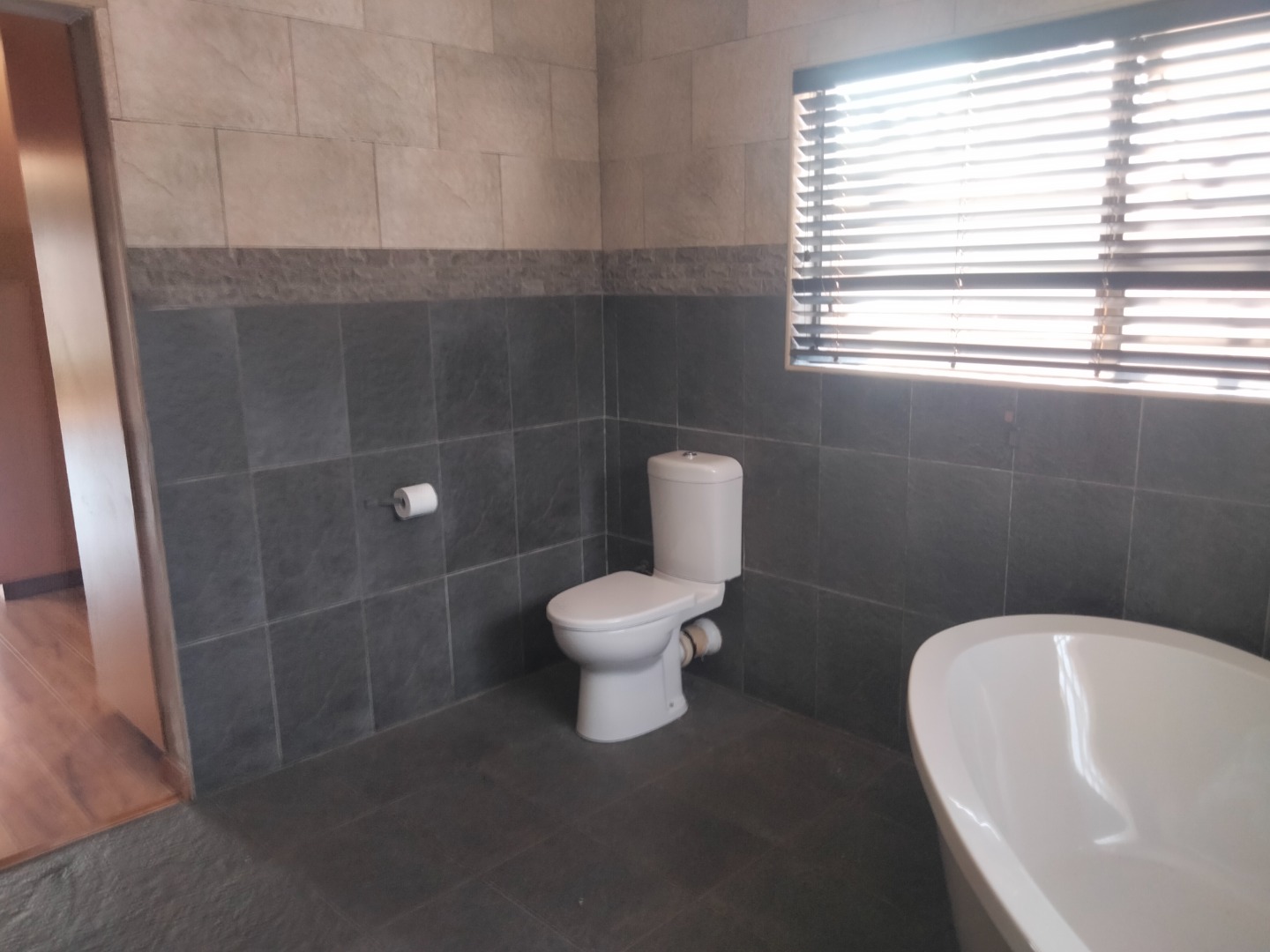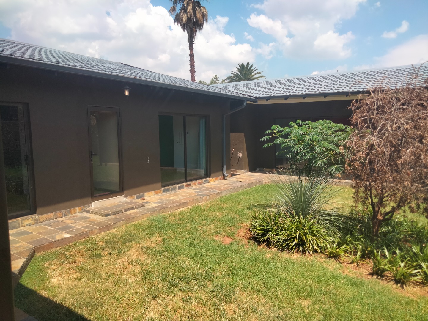 This modern 4-bedroom, 3-bathroom residence is available for rent in the desirable suburban area of Parkrand, Boksburg. Designed for contemporary living, the home features a spacious open-plan layout that seamlessly connects the living, dining, and kitchen areas. The heart of the home is its stylish kitchen, boasting dark cabinetry, elegant wooden countertops, and a large central island equipped with an integrated gas hob and oven. A distinctive wooden plank ceiling and special lighting enhance the modern aesthetic, while large sliding doors invite ample natural light and provide access to the garden. The property offers four comfortable bedrooms, with two featuring private en-suite bathrooms for added convenience and privacy. A dedicated study provides an ideal space for remote work or quiet contemplation. The home is wheelchair-friendly, ensuring accessibility for all residents. Externally, the modern dark-toned house presents a striking curb appeal, complemented by a double garage and a large, paved driveway offering secure parking for two vehicles. The property is totally walled, providing a private garden space where pets are allowed, making it perfect for families. Security is a priority, with the home situated within a secure complex on a cul-de-sac, benefiting from 24-hour security, an access gate, burglar bars, and security gates. Connectivity is also well-addressed, with fibre readiness and satellite connectivity available. This well-established suburban environment offers convenient access to local amenities and transport routes, ideal for family living. Key Features: * 4 Bedrooms, 3 Bathrooms (2 En-suite) * Modern Open-Plan Kitchen with Island * Double Garage & Paved Driveway * Dedicated Study * Wheelchair Friendly * Pet-Friendly Garden * Secure Complex with 24-Hour Security * Fibre Ready & Satellite Connectivity