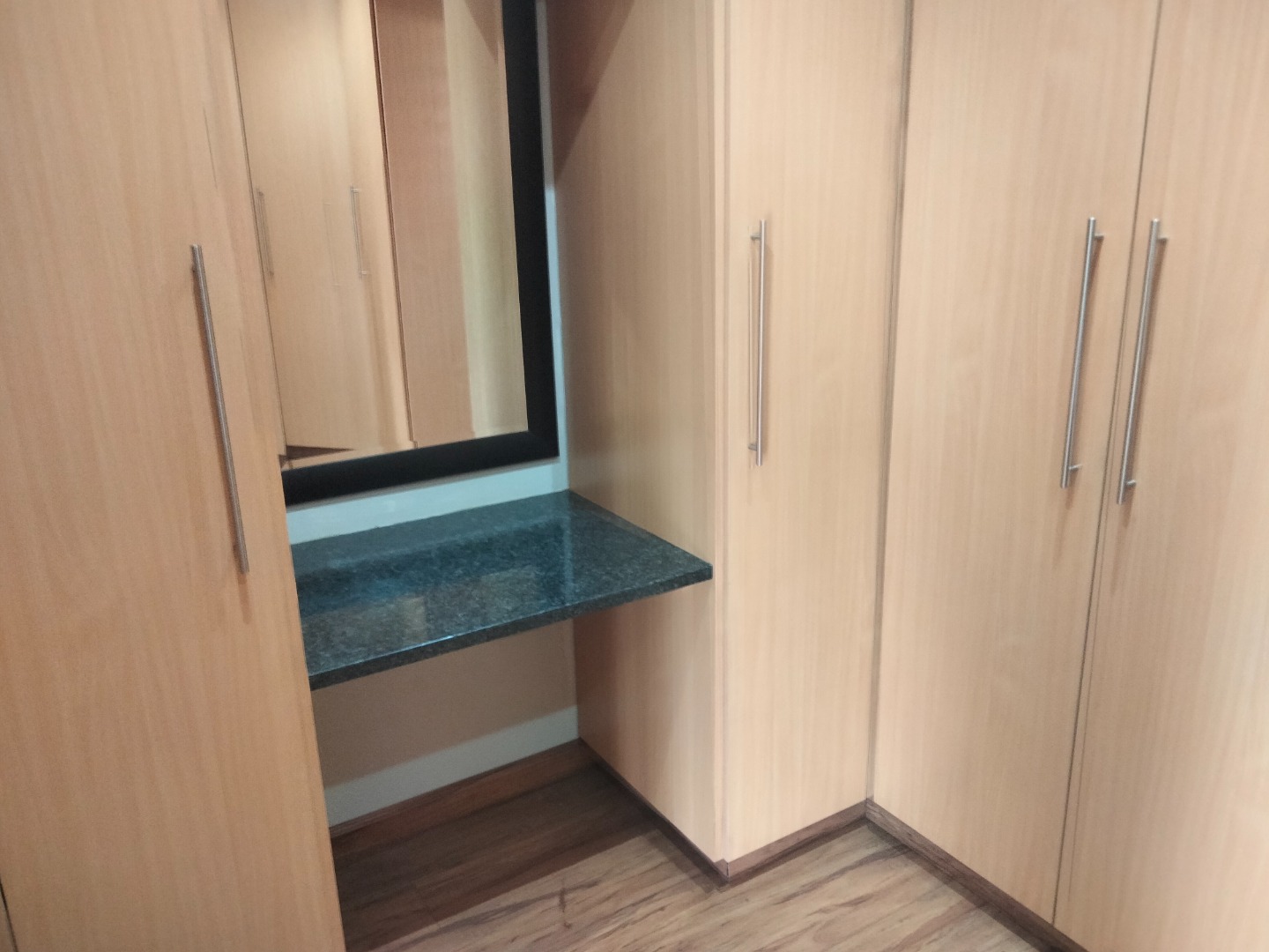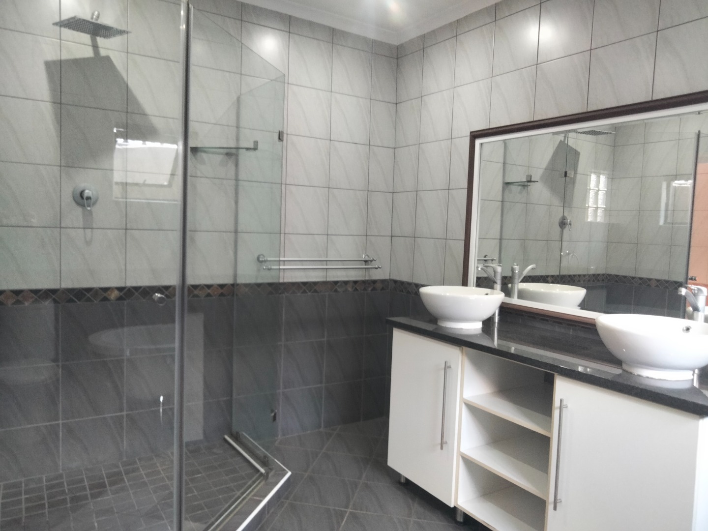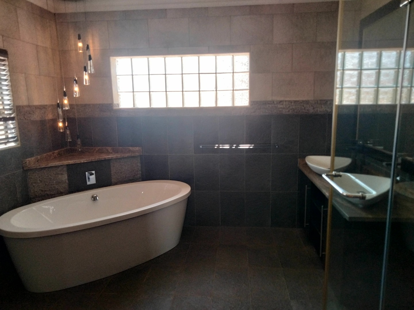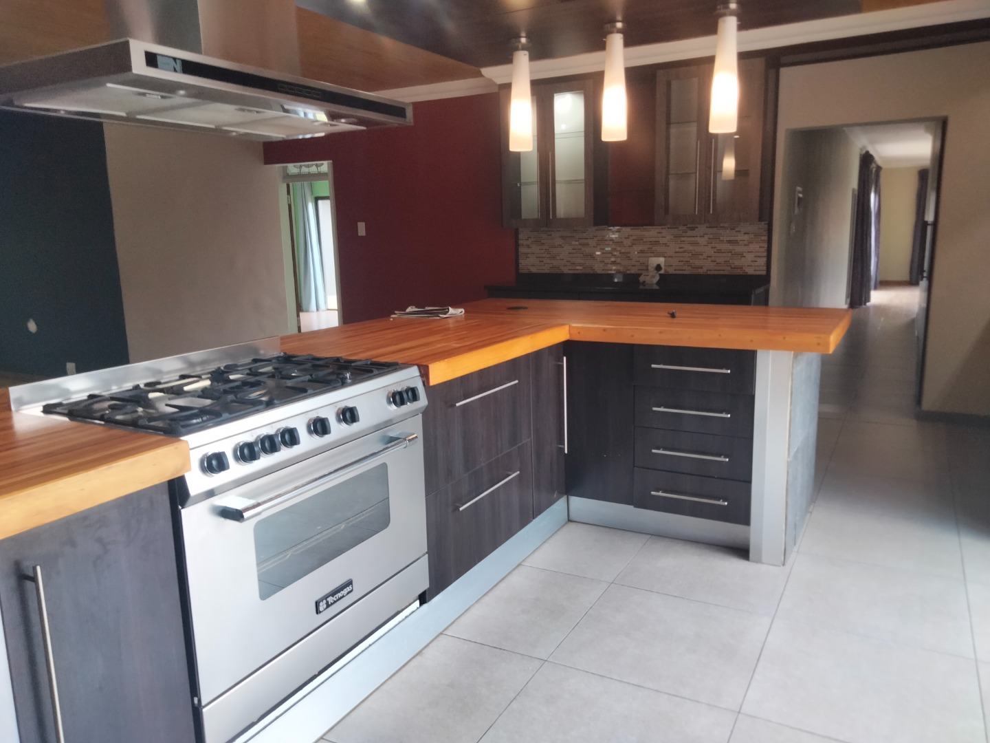 This modern 4-bedroom, 3-bathroom residence is available for rent in the desirable suburban area of Parkrand, Boksburg. Designed for contemporary living, the home features a spacious open-plan layout that seamlessly connects the living, dining, and kitchen areas. The heart of the home is its stylish kitchen, boasting dark cabinetry, elegant wooden countertops, and a large central island equipped with an integrated gas hob and oven. A distinctive wooden plank ceiling and special lighting enhance the modern aesthetic, while large sliding doors invite ample natural light and provide access to the garden. The property offers four comfortable bedrooms, with two featuring private en-suite bathrooms for added convenience and privacy. A dedicated study provides an ideal space for remote work or quiet contemplation. The home is wheelchair-friendly, ensuring accessibility for all residents. Externally, the modern dark-toned house presents a striking curb appeal, complemented by a double garage and a large, paved driveway offering secure parking for two vehicles. The property is totally walled, providing a private garden space where pets are allowed, making it perfect for families. Security is a priority, with the home situated within a secure complex on a cul-de-sac, benefiting from 24-hour security, an access gate, burglar bars, and security gates. Connectivity is also well-addressed, with fibre readiness and satellite connectivity available. This well-established suburban environment offers convenient access to local amenities and transport routes, ideal for family living. Key Features: * 4 Bedrooms, 3 Bathrooms (2 En-suite) * Modern Open-Plan Kitchen with Island * Double Garage & Paved Driveway * Dedicated Study * Wheelchair Friendly * Pet-Friendly Garden * Secure Complex with 24-Hour Security * Fibre Ready & Satellite Connectivity