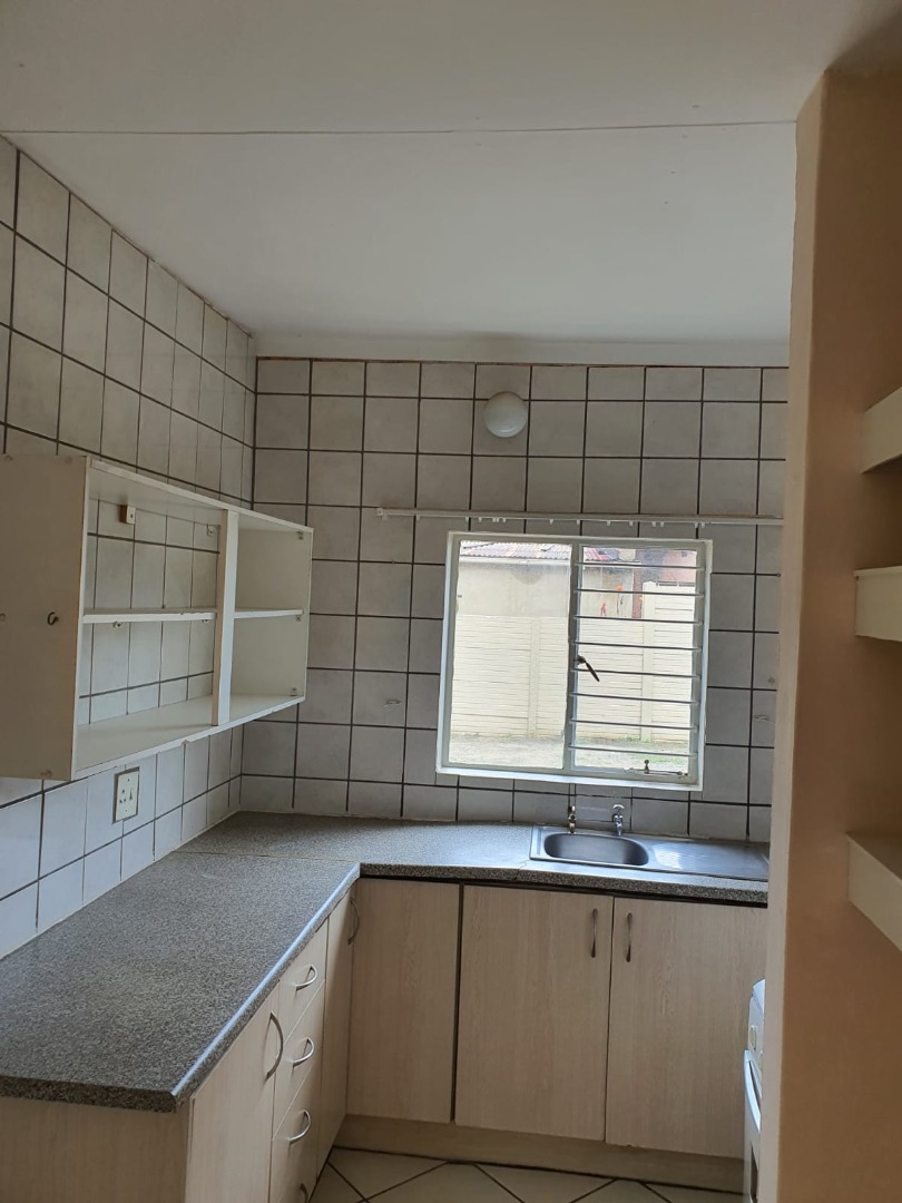 This inviting 1-bedroom, 1-bathroom rental property in Brakpan Central offers a practical and comfortable living space. The interior features a well-appointed kitchen with light wooden cabinets, speckled countertops, and fully tiled walls, ensuring easy maintenance. A stainless steel sink is positioned beneath a window fitted with security bars, providing natural light. The property boasts a spacious lounge area and a bedroom equipped with built-in cupboards, offering ample storage solutions. Throughout the unit, you'll find durable tiled flooring and neutral wall colours, creating a clean canvas ready for your personal touch. The bathroom includes a functional bathtub and toilet, also featuring tiled surrounds and a window for ventilation.