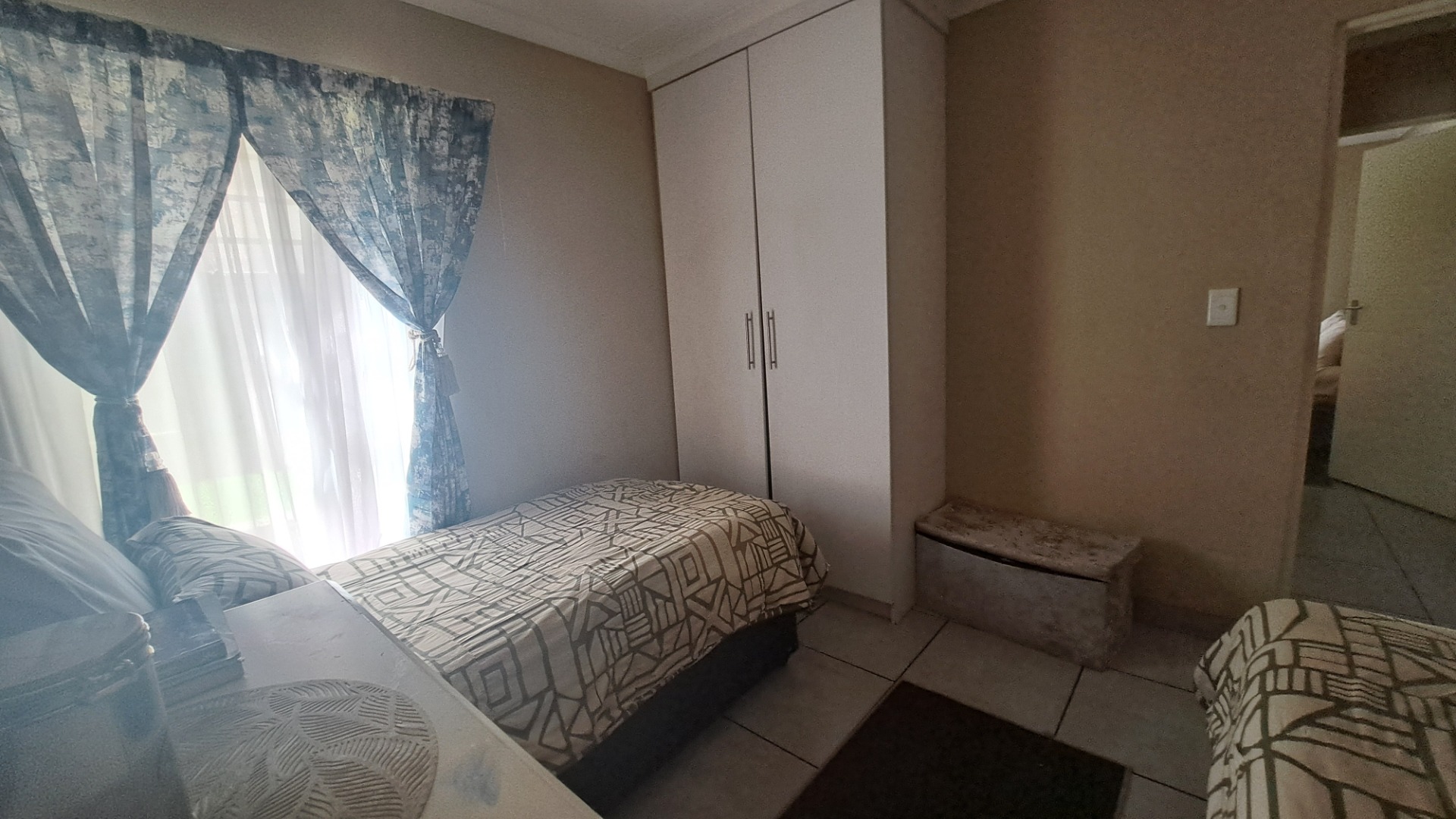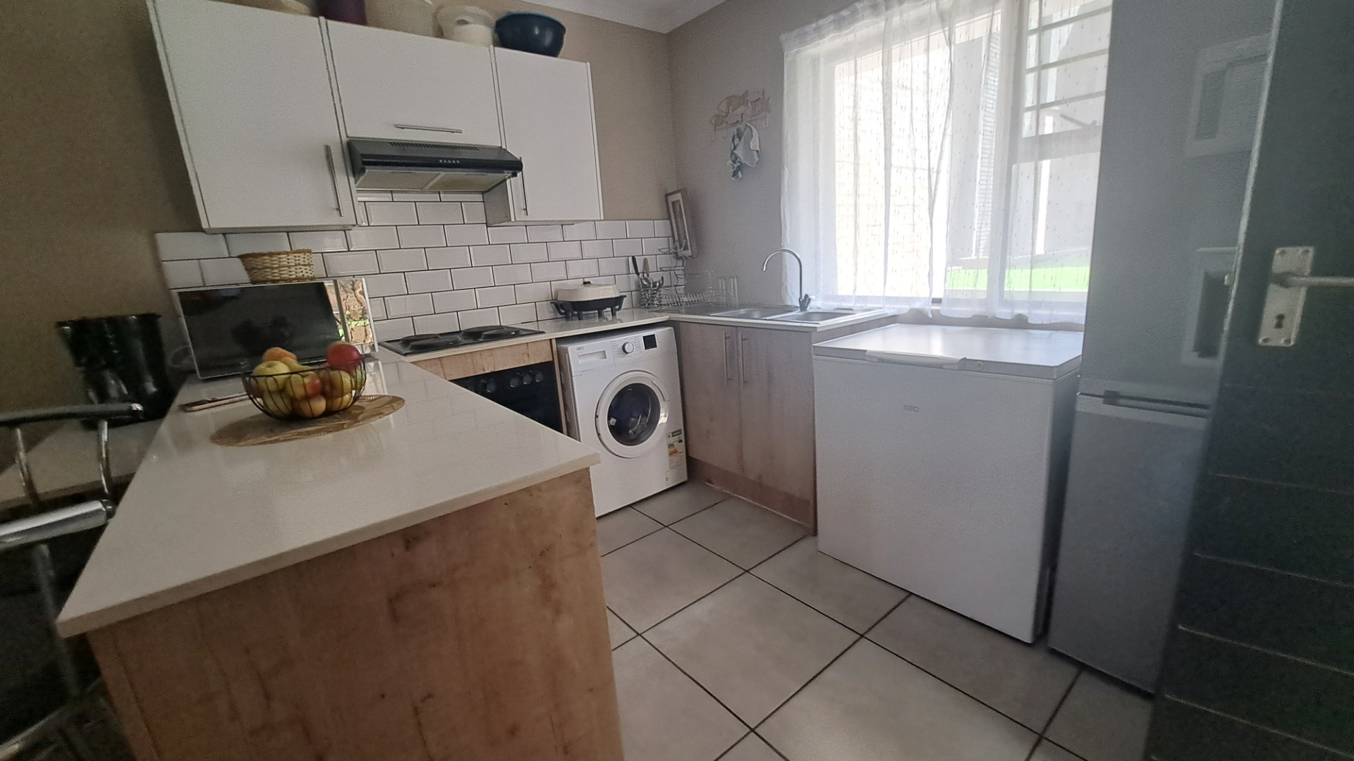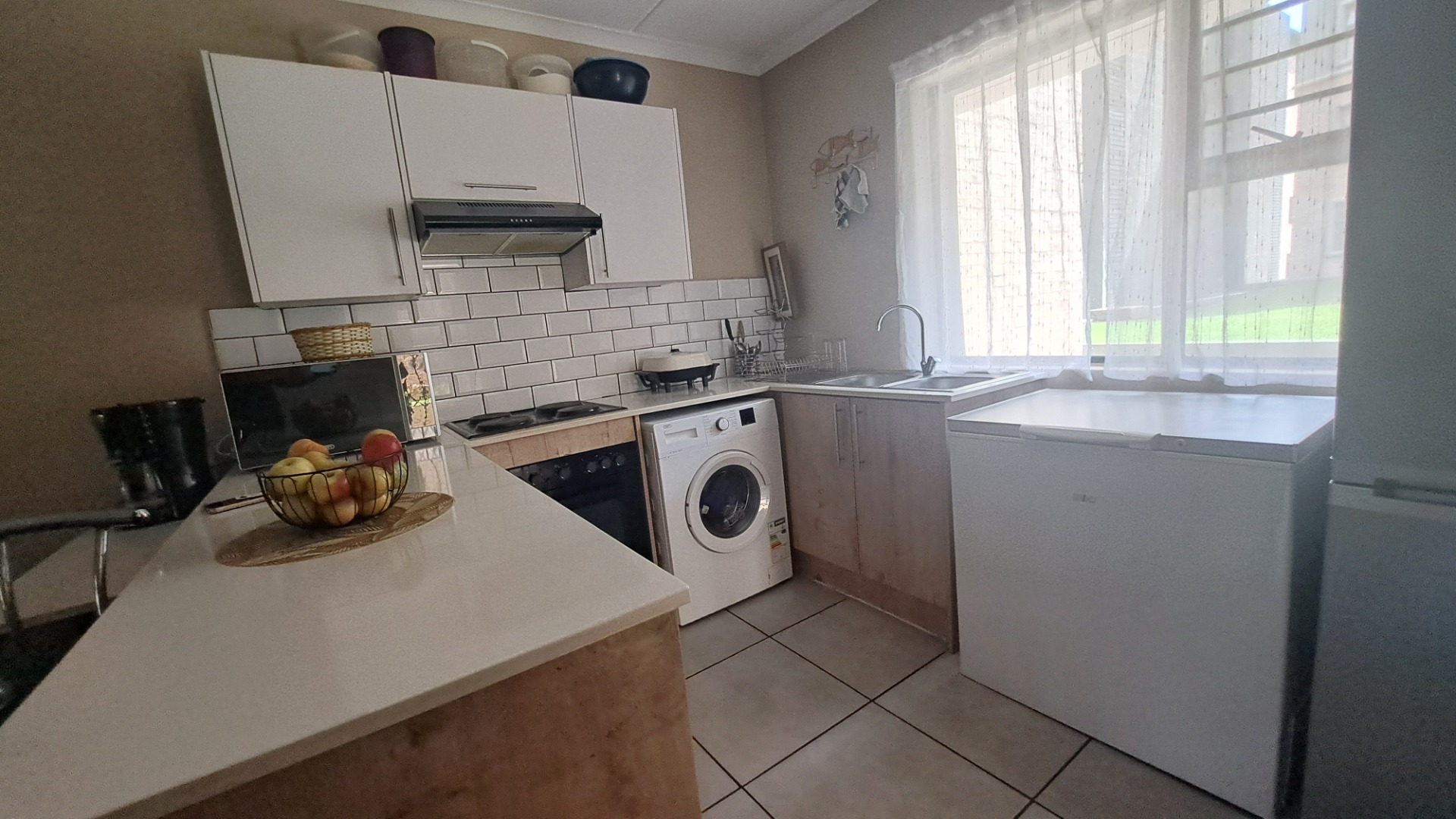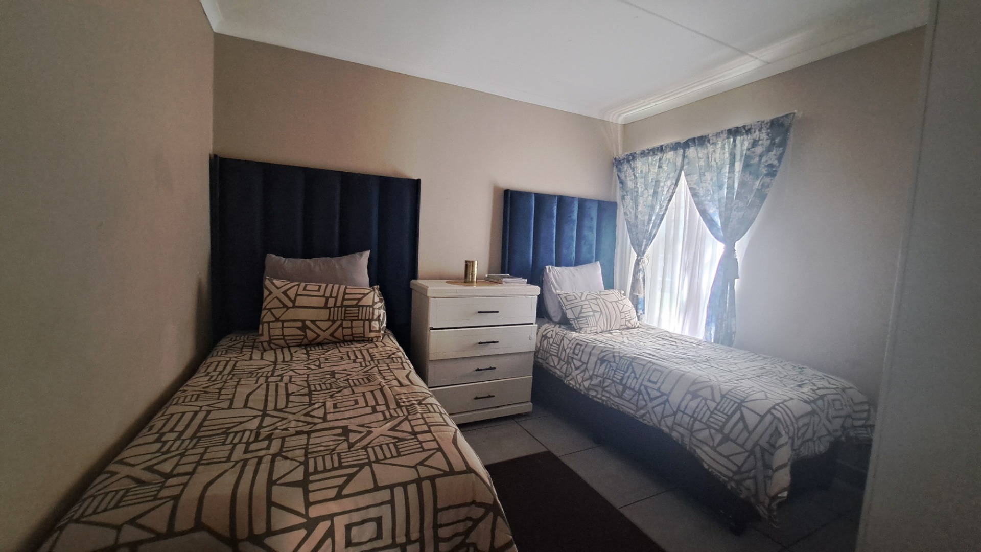 The layout is ideal for professionals or small families seeking a lock-up-and-go lifestyle. Both bedrooms offering comfortable spaces. The modern bathroom is fully tiled in neutral grey tones and includes both a bathtub and a separate walk-in shower. While pets are not permitted, the unit benefits from a built-in braai, perfect for outdoor relaxation and entertaining. The property is also wheelchair friendly, enhancing accessibility.